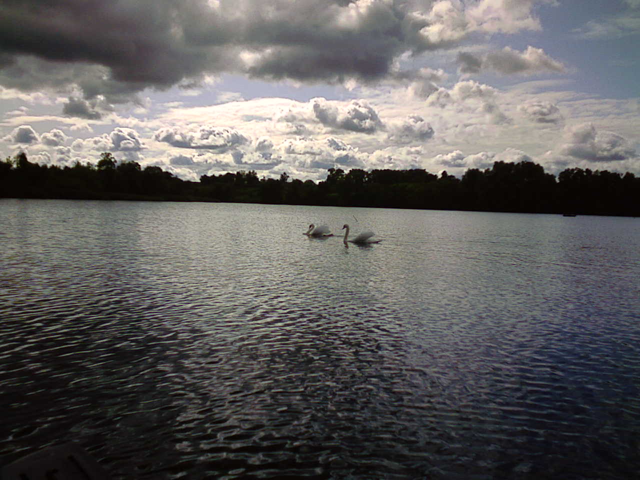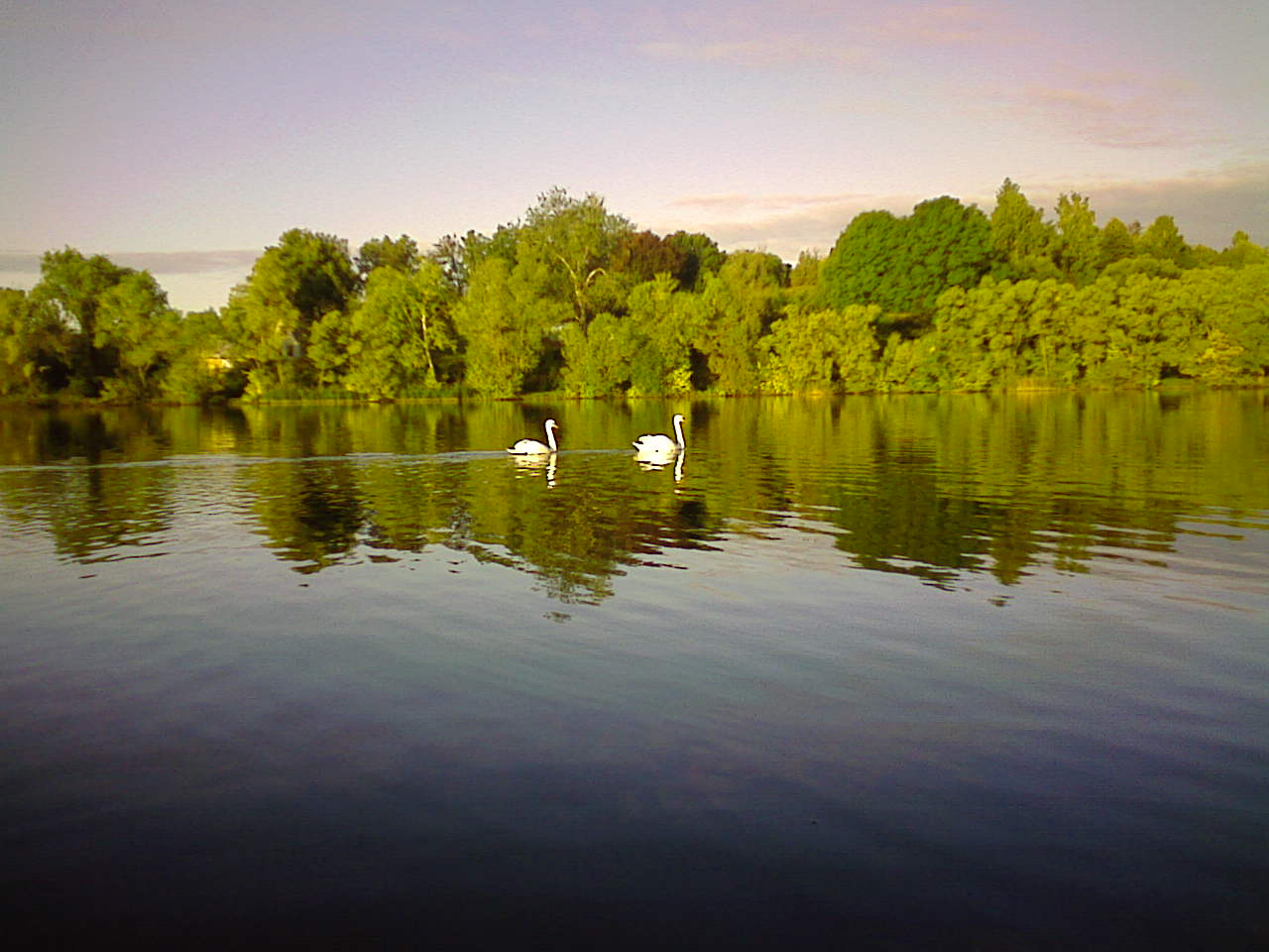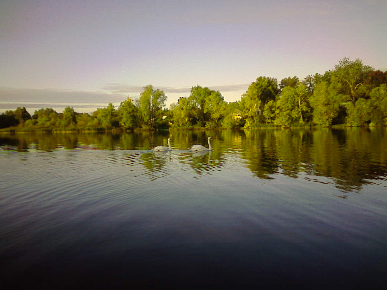 Лебеди Сегодня утром на рыбалке, около 7 час. Снимал на телефон, извиняюсь за качество, все забываю взять фотик с собой. Лебеди подпускали к себе на расстояние около 7 метров. Прилетели на озеро под чти вместе сом ной.
