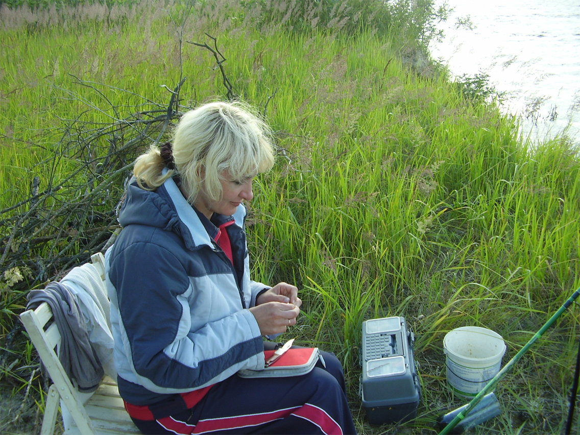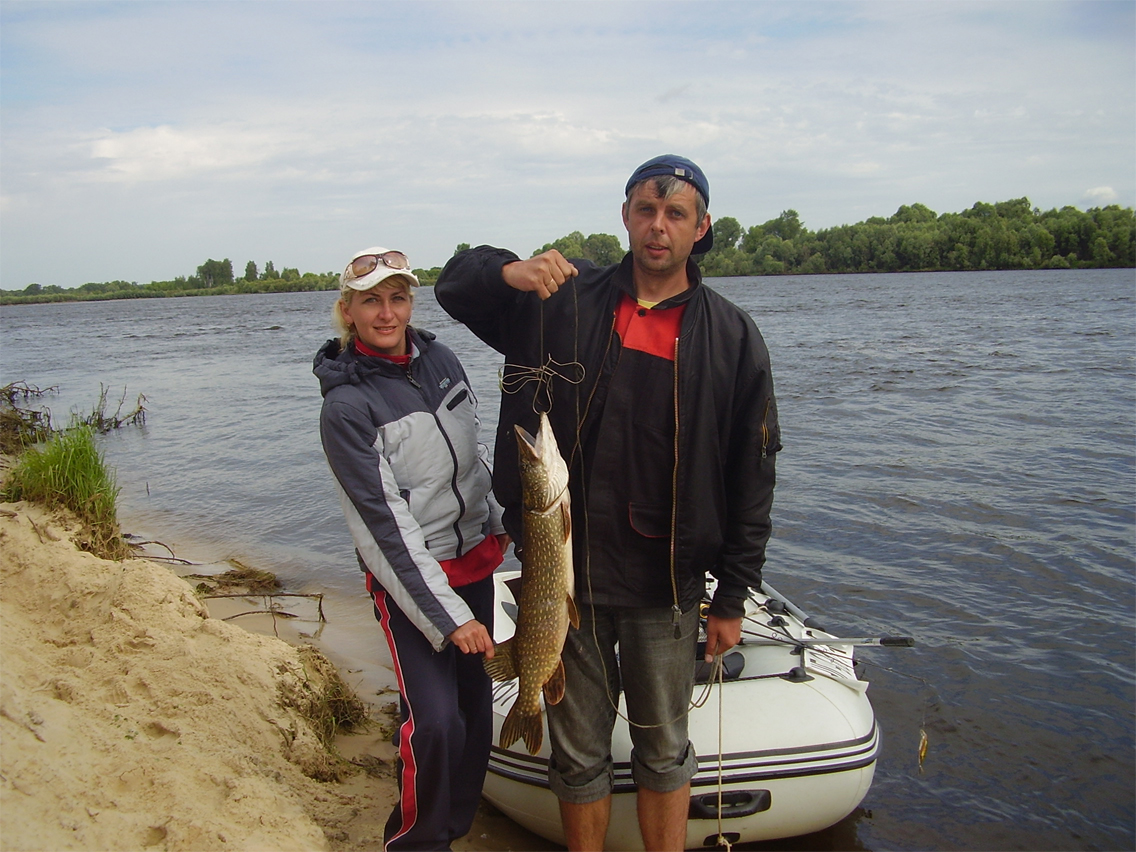 27 - 30 июня 2008. Я с женой, Александр с семьёй. Выезд из Чернигова 27 в 15.30. Решили попасть в неизведанные места в районе с. Редьковка. Небольшая справка. Село Редьковка официально не существует, т.к. отселено после взрыва на Чернобыльской АЭС в 1986 году. Почти все дома заброшены и полуразрушены - жуткая картина. Но в некоторых люди живут до сих пор, поля и огороды вокруг села обрабатываются, коровы на лугах пасутся, местные жители спокойно ловят рыбу.... Дорогу приблизительно нам рассказали и показали на карте. Но.... Оказалось, что мы не учли простую вещь - уровень воды в Днепре на полметра-метр выше обычного. После 5-ти км по заболоченному лугу уперлись в болото, причем дорога уходила прямо в воду. Попытки объехать болото, переходящее в затоку, оказались безуспешными и мы, накатав по лугам-болотам-полям-лесам около 20 км, решили возвращаться в знакомые места в район с.Мысы. К вечеру были на месте, разложили вещи, установили палатки, поужинали и спать. Проснувшись утром, решили с Александром пройтись по берегу к его любимому месту - в прошлом году там регулярно наблюдался бой жереха. В этом - тишина, может потому что высокий уровень воды, не знаю... К обеду поднялся сильный ветер (который впоследствии почти не утихал до конца нашего там пребывания), на воду выходить не хотелось в связи с большим волнами, но к вечеру всё-таки надули лодку и проверили окрестности эхолотом. Рельеф дна там очень интересный: чётко выраженные ближняя и дальняя бровки (на которых впоследствии и осталось несколько килограммов фидерных кормушек и грузков, силикон и прочие снасти), закоряженные ямы, обратные течения, на противоположном пологом берегу Днепра несколько островов и протоки между ними с глубинами от 0,5 м до 6 м. В рыбалку особо не упирались - просто отдыхали :73562:. Женщины ловили на фидер, мы - на спиннинги. В субботу у Александра судак на силикон, у меня ОП, у женщин подлещики, плотва, густера. В воскресенье утром я с женой решил потролить по протокам и по ямам. До 8-ми утра только пустые поклёвки и окунь грамм 200 у жены. На русловых ямах тоже ничего, с берега на островах тоже ОП. Часов в 9 при очередном проходе над выходом из ямы в протоке (перепад глубин там с 5-ти до 2-х метров) у меня удар,бешеное сопротивление, шнур медленно уходит в прибрежные кусты , фрикцион трещит - одна мысль в голове, чтобы не повторилась история из Сокирного. Борьба была не долгой - минуты 3-4, жена помогла подсакой и щука в лодке, воблер глухо запутался в нитках сетки подсаки (нужно брать подсаку из лески!!!). Для меня это трофей!!! Последующее взвешивание показало 4.8 кг. Как оказалось - это была моя первая и последняя рыба на той рыбалке. Больше ничего примечательного в том выезде не случилось - на фидеры постоянно клевала и ловилась белая рыба (таранка из которой уже почти готова ), постоянно обрывались крючки и кормушки. В понедельник Александр ушел по берегу на поиски судака, вернулся без рыбы, но довольный - энное количество поклёвок и сходов, откушенные хвосты силиконовых приманок - вобщем свою дозу адреналина он получил. П.С. Регистрация у пограничников для отдыха в тех местах обязательна. Телефон погранотряда 8 04641 48548.
