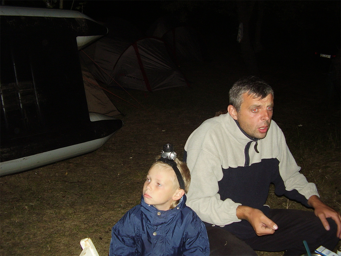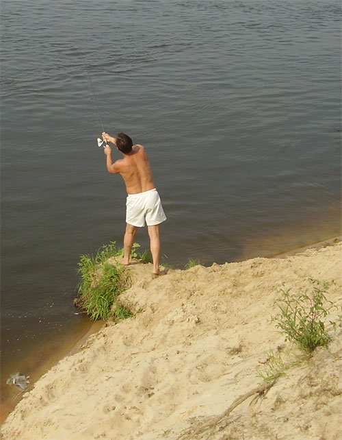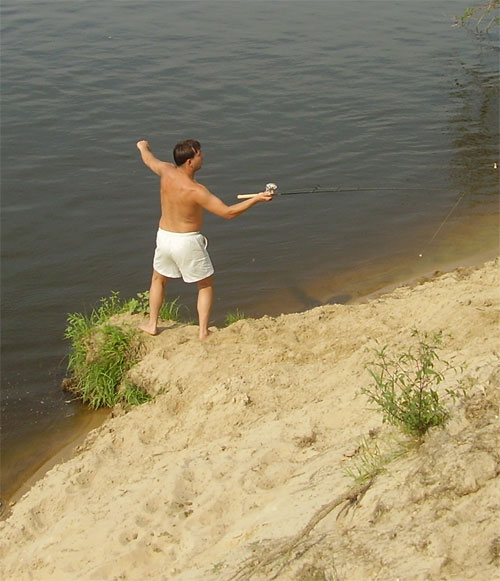 8-10 августа Участники выезда: Сантер и я с женами, Дрюня с женой и сыном. Я в этих краях был впервые, Днепр там красив и могуч – широкое русло с сильным течением (кормушку 130 грамм сносило довольно сильно). Стали на обрывистом живописном берегу с небольшими омутами (они та нас и сбили с толку, глубины там оказалось всего 3 метра). В пятницу погодка – песня! Солнышко светит, небольшой ветерок, птички поют, место выглядит очень перспективно…охотники еще не стреляют, да и с работы удалось вырваться пораньше. Короче настроение на максимуме!!! Да тут еще с Денисом (сын Андрея) решил половить уклейки, а клевала она так…только успевай вытаскивать, как из пулемета! Как оказалось это был весь улов на первый день, хотя нет, поздно вечерком на червя клюнул сомик сантиметров 20-25, хотел я его на утро торжественно отпустить, но получилось раньше – в темноте бросил мимо садка….туда ему и дорога. В субботу с утра с Александром попытались поймать хищника, как оказалось тщетно…изначально смутило полное отсутствие признаков его наличия (во загнул), пару часов полоскания приманок это подтвердило. Возможно, если б уперлись в одном месте, то поймали б по одному залетному судочку, но на фидер поклевывала всякая бель, потому ловили ее. Дрюня с Сантером осуществили одну вылазку на лодке, «задорожили» по щучке и все. Перед тем был сход леща. Поклевка в момент когда мы несли лодку, я стремглав бросился выматывать фидер, Дрюня на подхвате…подсака далеко…, от грозного вида Андрея лещ забившись в конвульсиях так и не давшись в руки и свалил… Больше лещ не клевал...видать был какой-то залетный в единственном экземпляре. Но зато была уха и т.п., отдых одним словом. В ночь с субботы на воскресенье прошел небольшой дождик, утро было посмурным с еле заметным ветерком – казалось бы идеальная погода для клева, но даже белая клевала не особо активно…от того и собрались мы довольно рано и помчали домой…к мягкому дивану, теплому душу и прочим благам цивилизации. P.S. Жены Андрея и Сани уже настоящие профессионалы фидерной ловли, скоро буду к ним за консультацией ходить P.P.S. Пьяные охотники народ безголовый абсолютно – палят по всему что движется – под обстрел попали чайки и цапли. P.P.P.S. Дрюня, Сантер выкладывайте фотки с пейзажами. Я вечерком у себя пороюсь, может и у меня есть нормальные снимки.