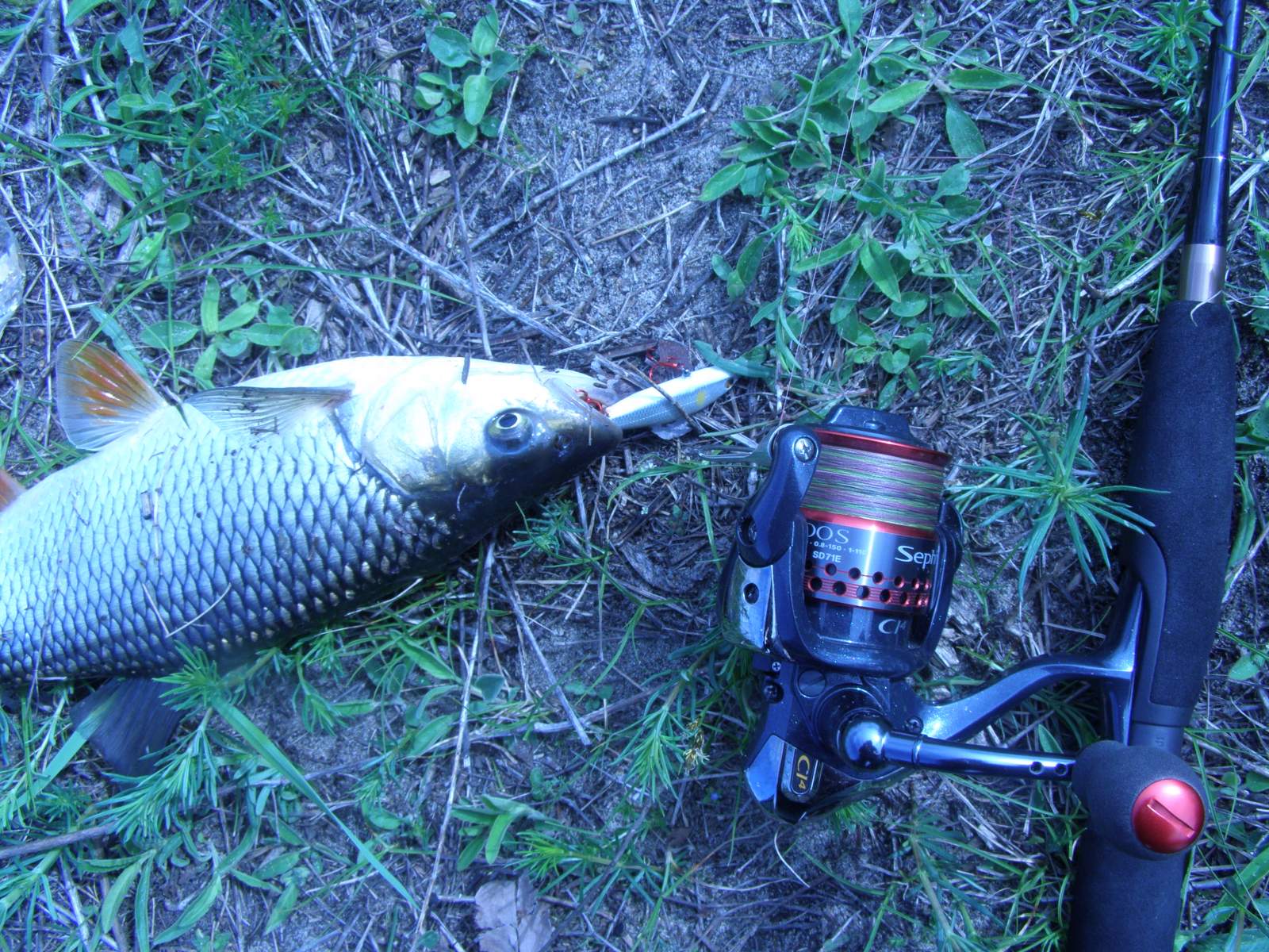 Тоже где то в этих краях Был сегодня километров 200-ти от Киева на Днепре.Там Днепр перенял все повадки Десны, крутые берега, быстрое течение.Всего удалось соблазнить два рыбоида и один сход.Ну и немного пейзажа.
