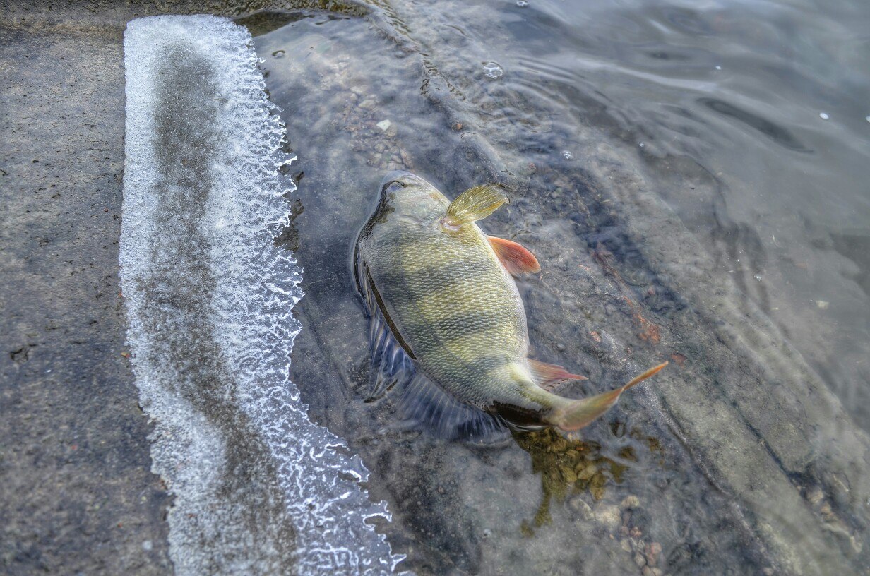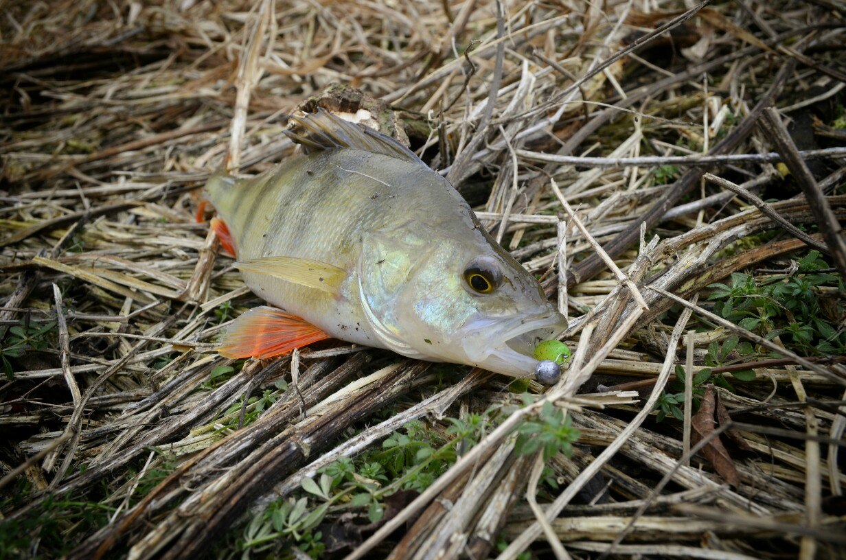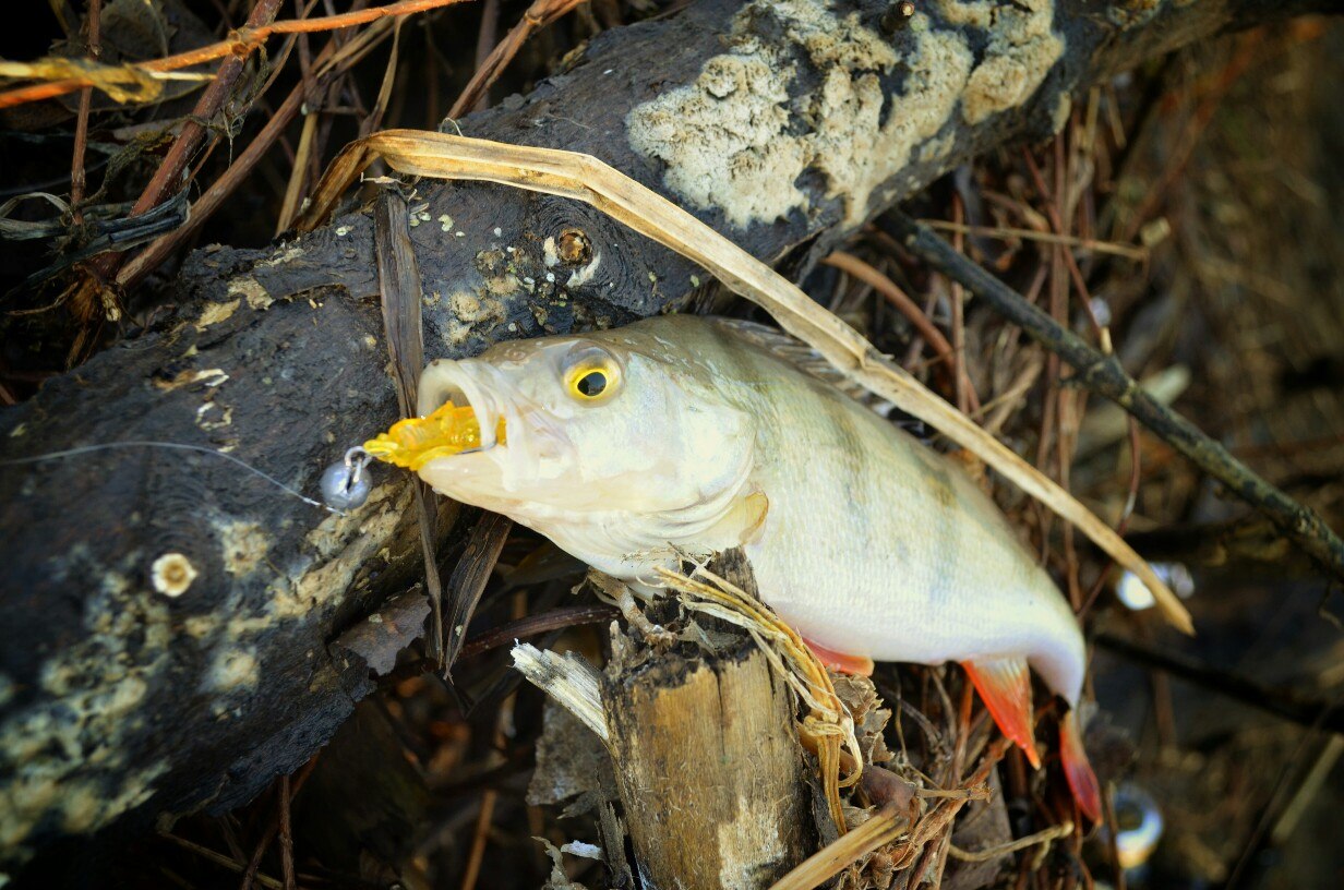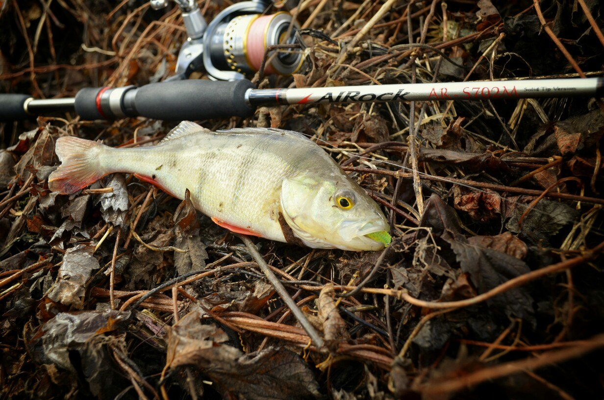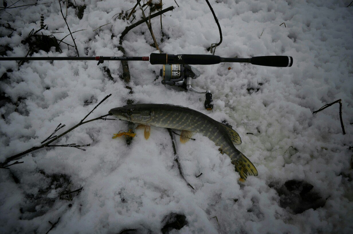 Первые 40 минут полная тишина. Потихоньку перебираю приманку за приманкой, но результата нет! Уж успел расстроится. Но на очередной проводке, чувствую ТУК! Короткая подсечка и есть небольшой окушок уже перед объективом. Дальше все пошло немного лучше))) Окуня клевали не часто но регулярно, без зубастиков не обошлось, вперемешку с окунями было три небольшие щучки )) И под завершение ловли, за все упорство и труд получаю мощную поклевку, подсечка и палочка приятно изгибается в паре с песней фрикциона. Две минуты борьбы и бонусная мамаша перед объективом. На этой приятной ноте заканчиваю ловлю.