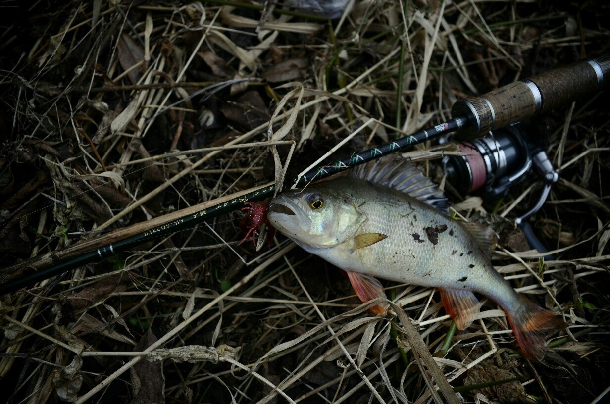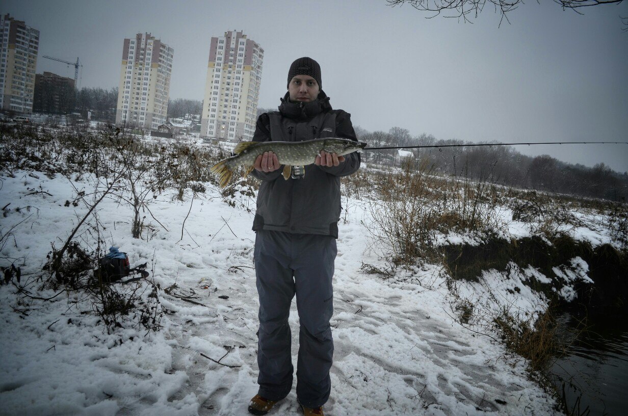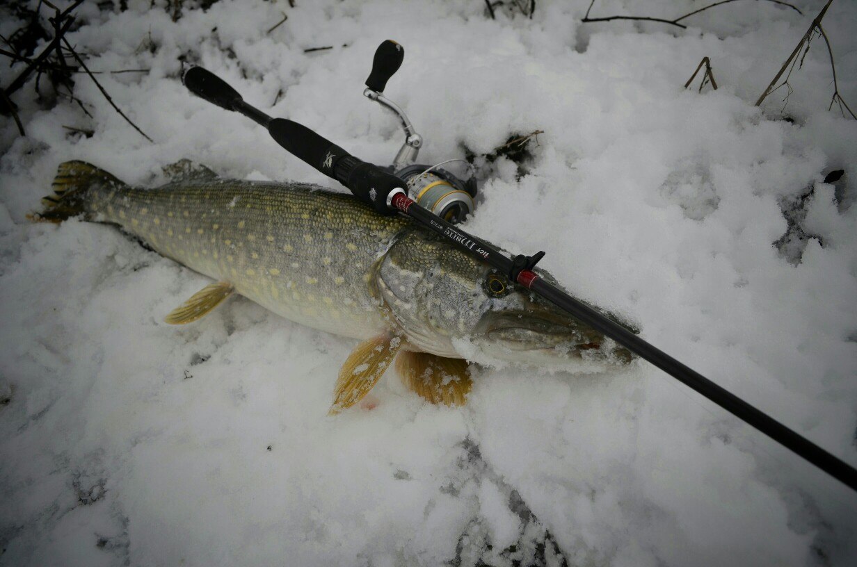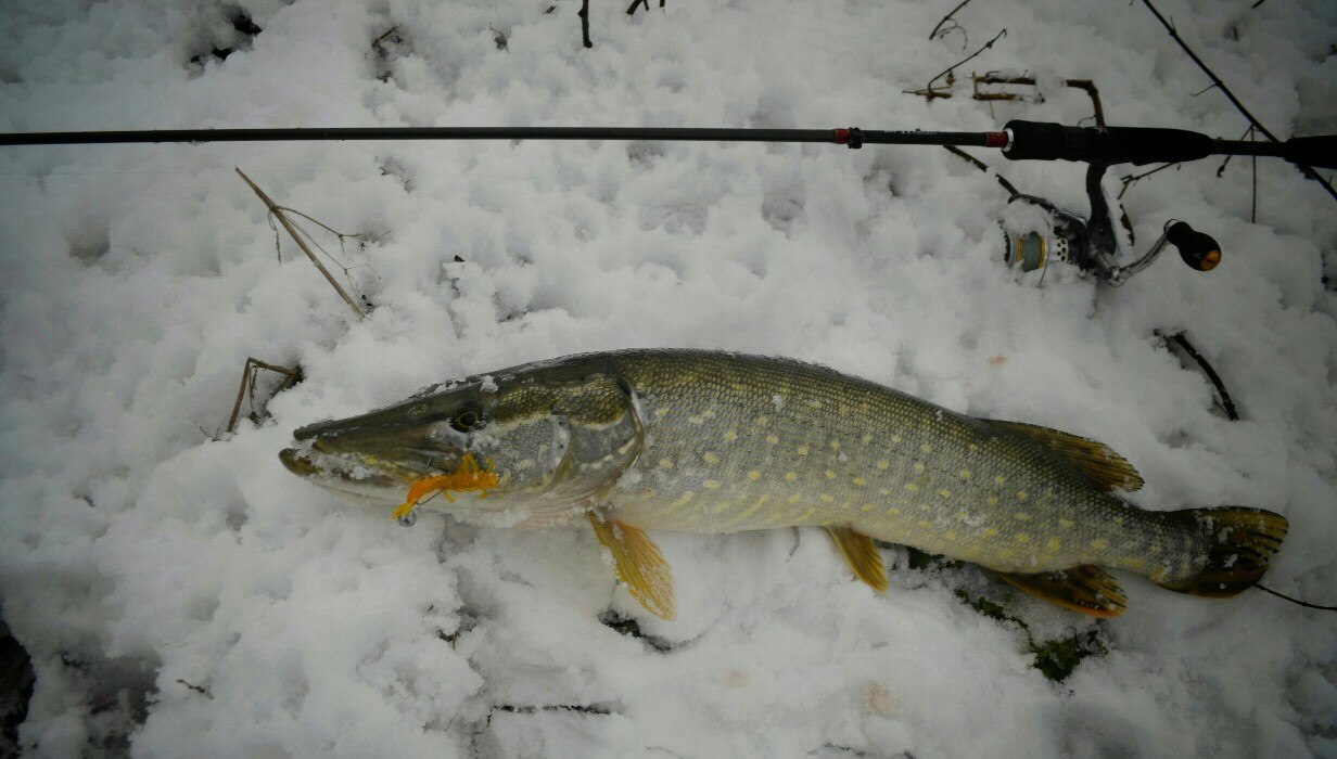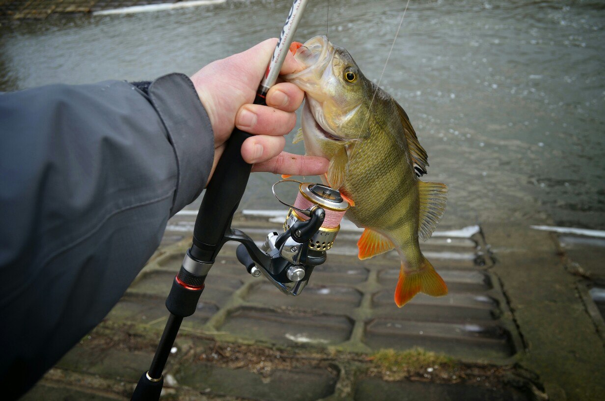 Первые 40 минут полная тишина. Потихоньку перебираю приманку за приманкой, но результата нет! Уж успел расстроится. Но на очередной проводке, чувствую ТУК! Короткая подсечка и есть небольшой окушок уже перед объективом. Дальше все пошло немного лучше))) Окуня клевали не часто но регулярно, без зубастиков не обошлось, вперемешку с окунями было три небольшие щучки )) И под завершение ловли, за все упорство и труд получаю мощную поклевку, подсечка и палочка приятно изгибается в паре с песней фрикциона. Две минуты борьбы и бонусная мамаша перед объективом. На этой приятной ноте заканчиваю ловлю.