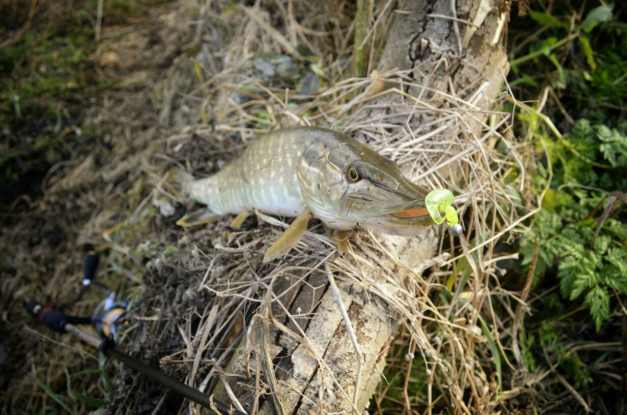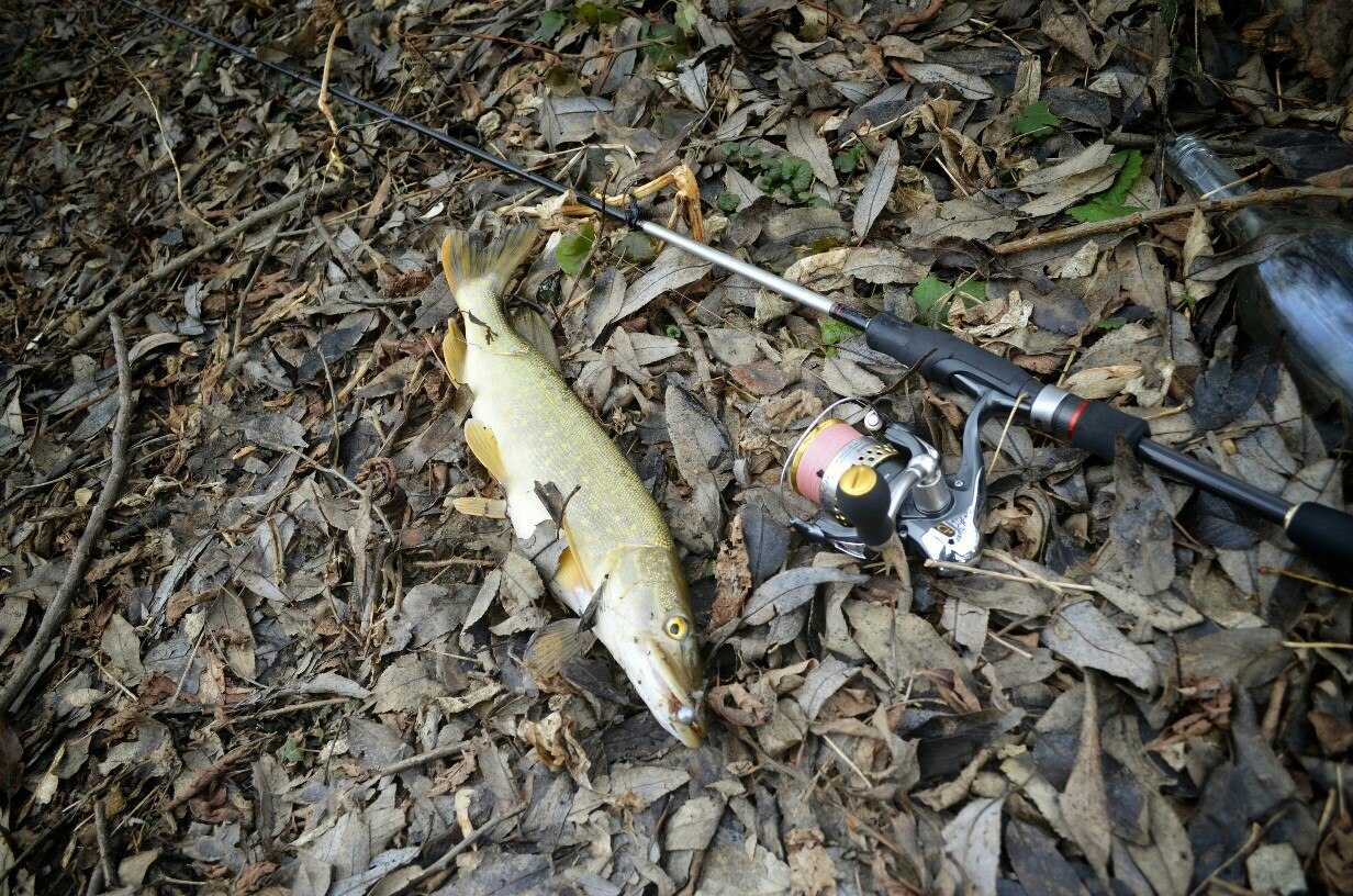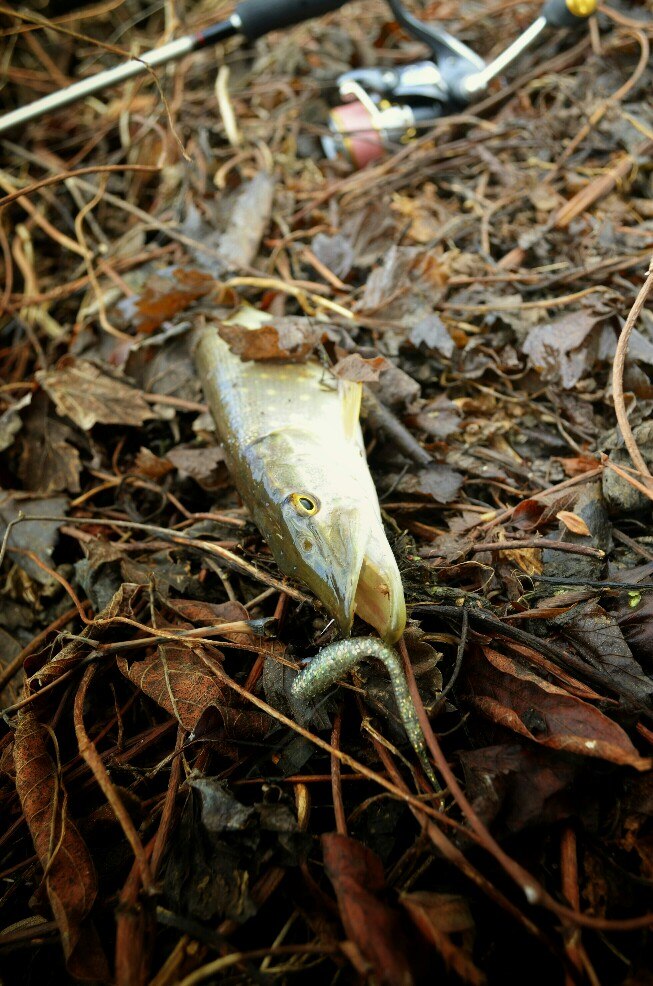 Около 11 я с напарником по ловле уже на реке. Неспешно собрались и погнали полоскать приманки. Примерно час прошел без результата. И вот очередная проводка и четкий удар, подсечка, спиннинг приятно изогнулся,а фрикцион запел)). После непродолжительного вываживания приятная мамаша позирует перед объективом, после чего отправляется в родную стихию. В течении следующего часа было поймано еще два шнурка, а где-же мамашы подумал я. И тут мощная поклевка, около двух минут вываживания и очередная приятная мамаша позирует перед объективом))). За остальных два часа было еще две зубастых, обе до-килушки *шнурки*))!