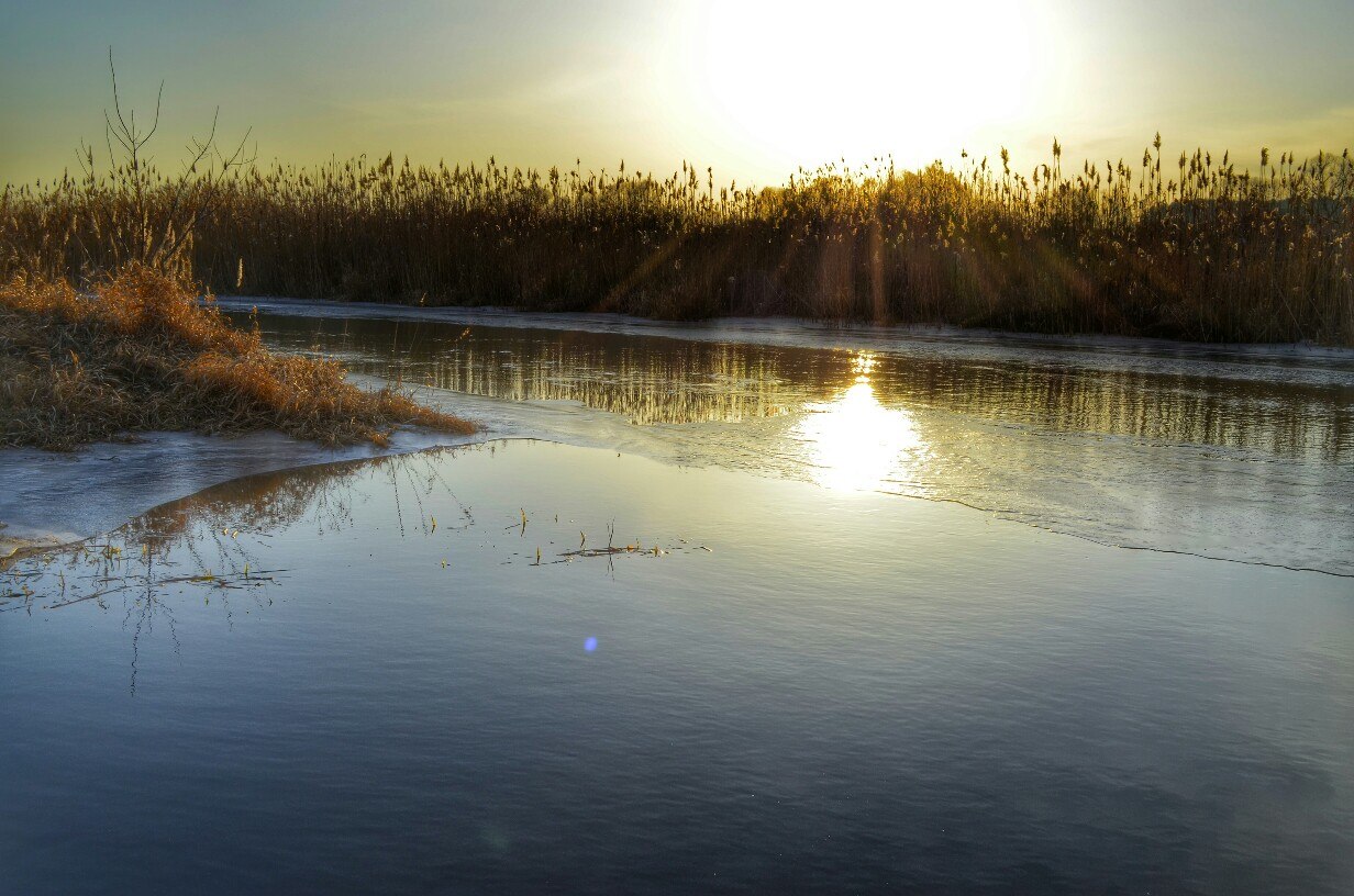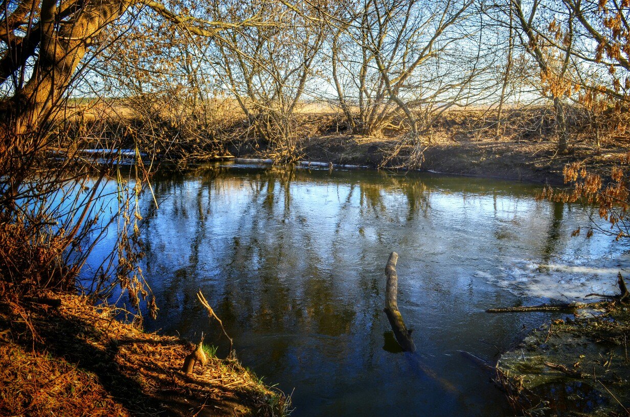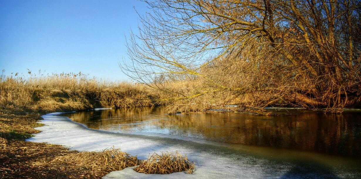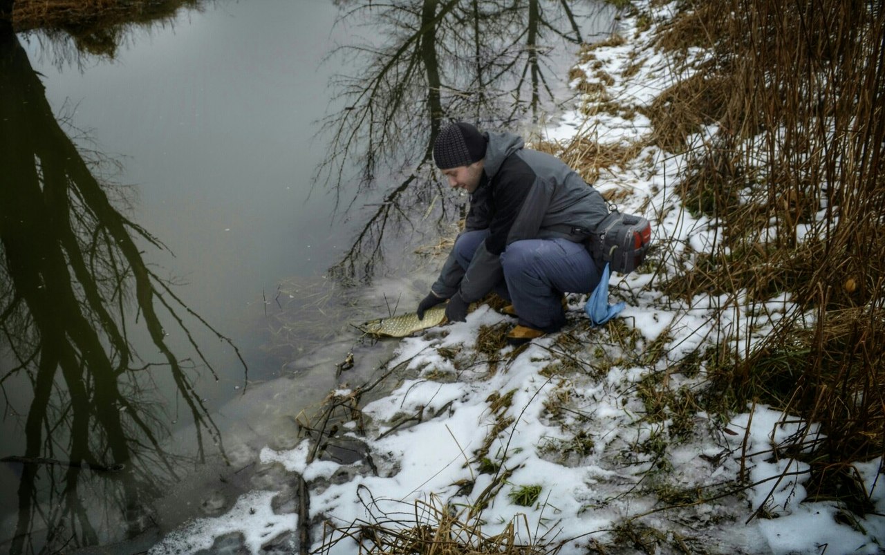 Куда-то ехать не хотел, решил посетить микро-речку в черте города. Погода не особо радовала, +2 и порывистый ветер.