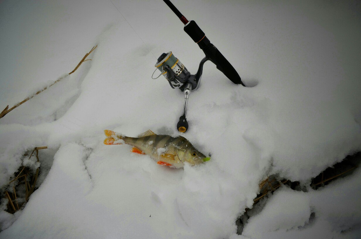 Окушок особо активностью не отличился (глухозимье), но по парочке кабанчиков уговорили)))