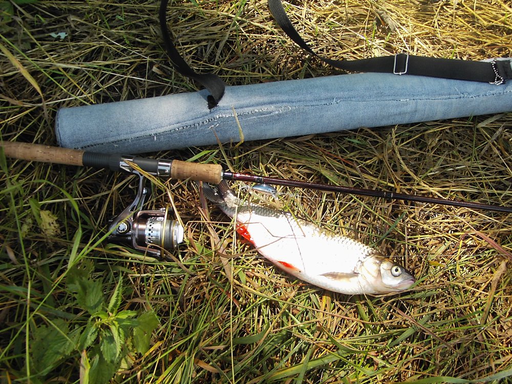 К нашему удовольствию никого кроме нас со спиннингами там небыло, ясная солнечная погода сулила улов. Начали с того, что решили обловить прилегающую к мосту территорию и пляж. Маленькие голавлики меньше ладошки сновали под берегом во всю, еще не ведая страха перед людскими фигурами на суше. Начали продвигаться в верх по течению. День мы выбрали правильно! Река жила и радовала глаз Голавлиным боем.