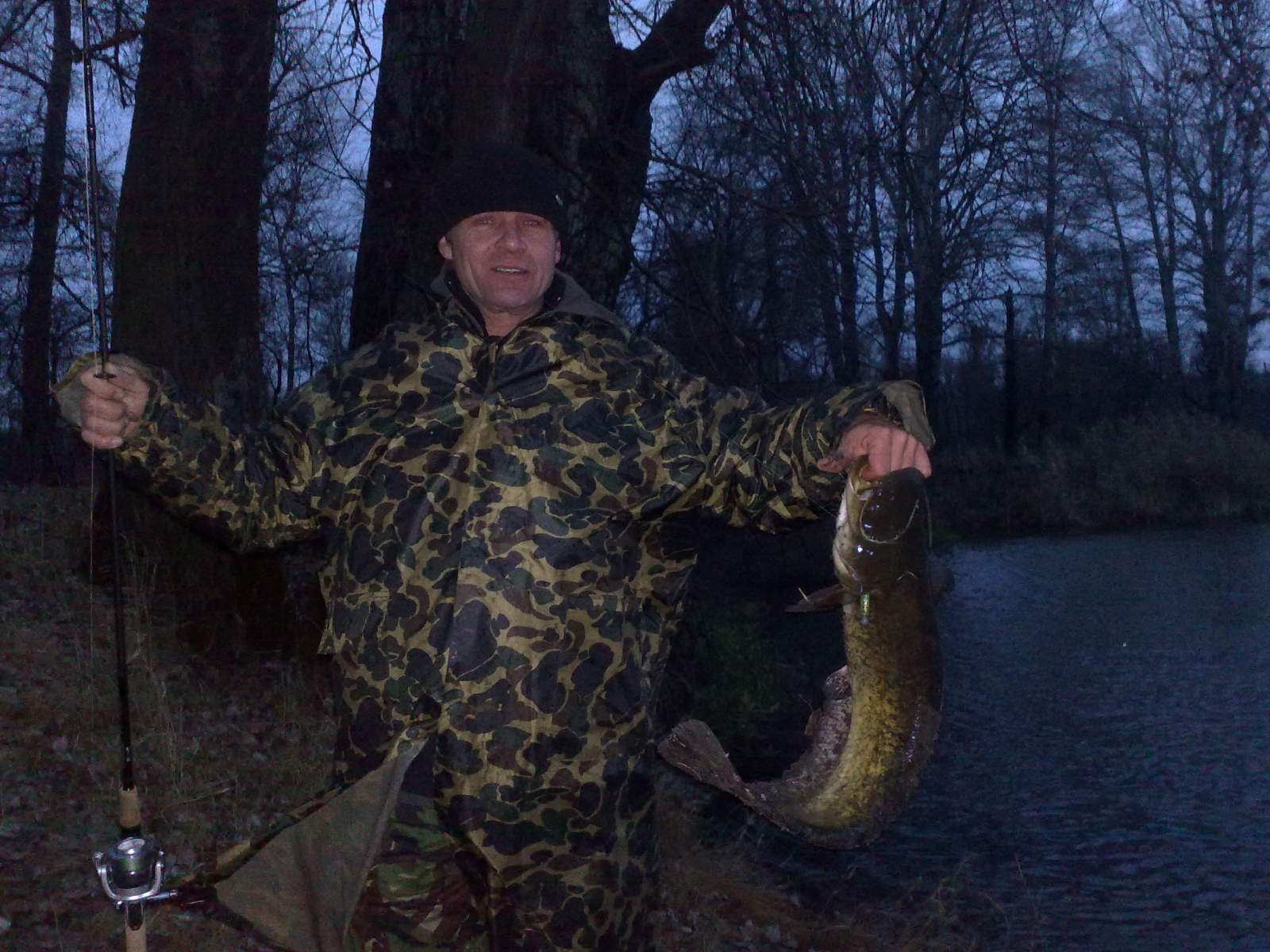 Сколько времени утекло с тех пор как я в последний раз писал отчет на своем любимом форуме... Но вот я снова вернулся и готов делиться новыми отчетами, приключениями, переживаниями! И так, начнем;) Дело было третьего декабря. Необычная для этого времени года плюсовая температура, легкий ветерок и неизменные компаньоны, все это составляло великолепное настроение и вселяло надежду на неплохую рыбалку. Ранний подьем, электричка отправляется в 2,44 и через два часа мы уже почти на месте. Приехав на станцию берем такси, таксист со скрипом соглашается взять нас всех вшестером:) Но вот все трудности пути позади и мы спускаемся вниз по течению, через три киллометра достигаем наших рыболовных мест, еще темно и есть время для дружеского привала в ожидании рассвета. С рассветом разбредаемся по берегу Донца кто куда. В точке нашего старта в Донец впадает небольшая речушка, после чего река делает большую петлю. В начале петли река мелкая и интереса непредставляет, поэтому я решаю срезать путь через поле и минуя петлю выхожу на большой залив после которого ниже по течению Донец становиться глубже и гораздо интересней для моего любимого Джига. Там я натыкаюсь на еще одну компанию знакомых мне рыболовов безрезультатно полоскавших в заливе различные приманки:) Присоединяюсь к Сергею облавливать точку. Он жалуется на безрезультатную поклевку на зеленый виброхвост. Я предпочел рабочей зеленке перломутровый твистер №4 от релакс. Вода мутновата, но еще не кретично и перломутр недолжен подвести. Спустя минуту поклевка на падении, рыба идет тяжело, сопротивляясь. Сергей готовит подсак, крутой берег непозволяет взять рыбу самому. Щука оказалась два с половиной кг. Отличное начало дня;) И так, погода необманула, рыба берет! У всех появляется азарт, но до часа дня больше ничего интересного непроизошло. А потом понеслось. У Сергея берет щука чуть более моей, к моему удивлению берет на воблер невообразимых размеров:bm: Следующим обрыблевается Юра, его трофей заметно поменьше. Так день близился к концу и почти все имели в наличии хотябы один хвост. Я решаю на последок пройтись еще ниже по течению, исследовать рельеф дна на неизвестных мне участках реки. Ко мне присоеденяются Юра и Сергей. В троем мы идем исследовать неизвестные тропы. И как выяснелось незря. На очередном забросе натыкаюсь на траву посередине русла и неспеша продергиваю через нее виброхвост и вдруг приманка как мертвая отказывается двигаться к берегу, спиннинг в дугу, рыба невероятно тяжела и идет очень медленно. Я в шоке, строю предположения и тут рыба решает, что пора плыть к другому берегу:) Затянутый почти намертво фрикцион дико вижжит... Вокруг уже стоят друзья с подсаком. Через десять минут показывается тень в воде и я понимаю, что это мой звездный час! С виду настоящий монстр! Рыба показуется во второй раз и я слышу удивленный возглас Сергея "Карп, это карп" Тут же Сергей начинает давать мне советы по вываживанию, и так в тондеме с Серегой мы боремся еще десять минут с удивительно сильной и здоровой рыбой. Вот наконец карп устает и к нашему везению с первого раза заходит в подсак. Восторг непередать словами:) В трофее 11,500 речной Сазан. Фотосессия и возврашение на базу. Там опять фотосессия, я собераю спиннинг и в эйфории слоняюсь по берегу пока мои коллеги еще делают последние забросы. Уже смерк