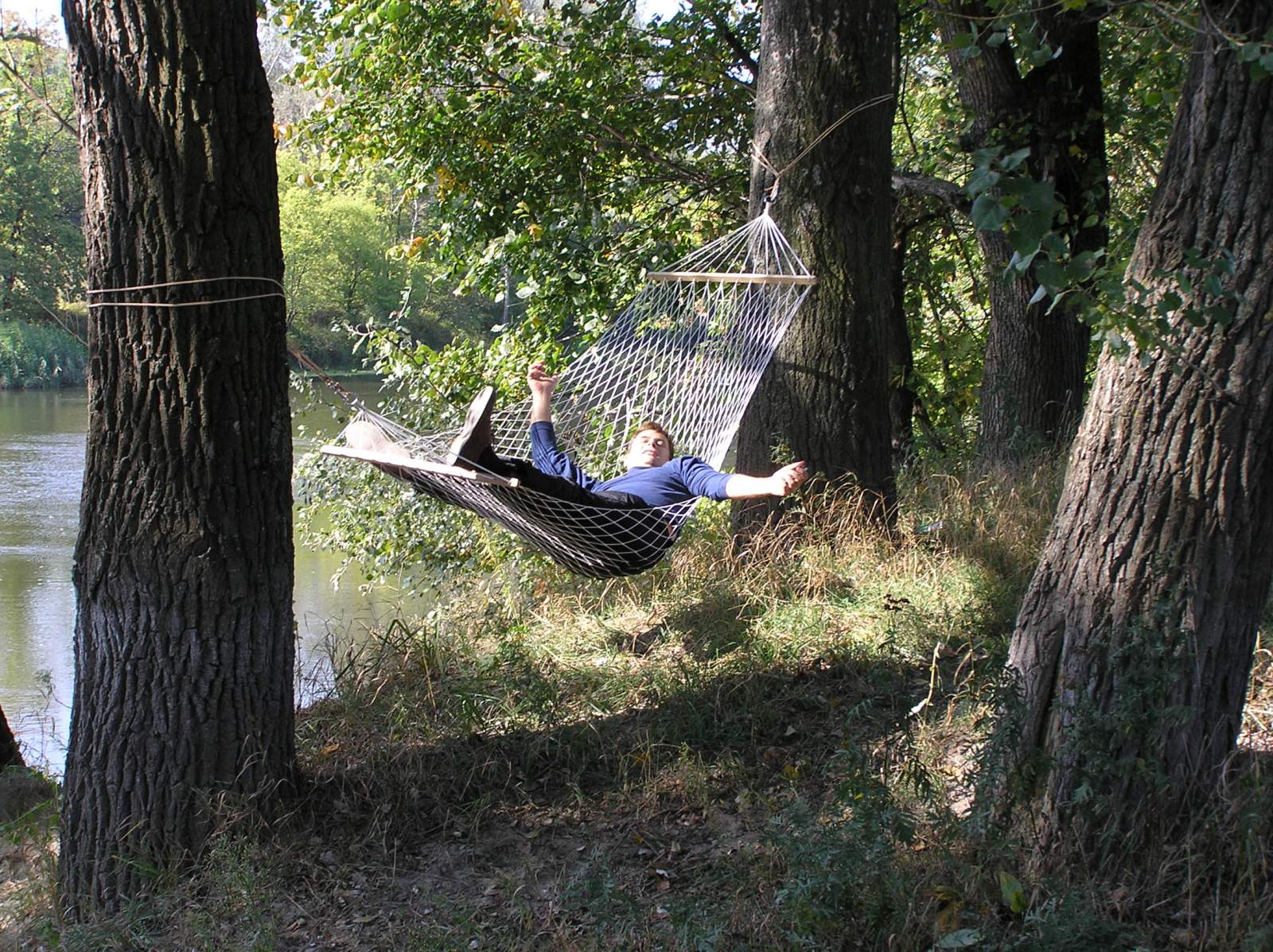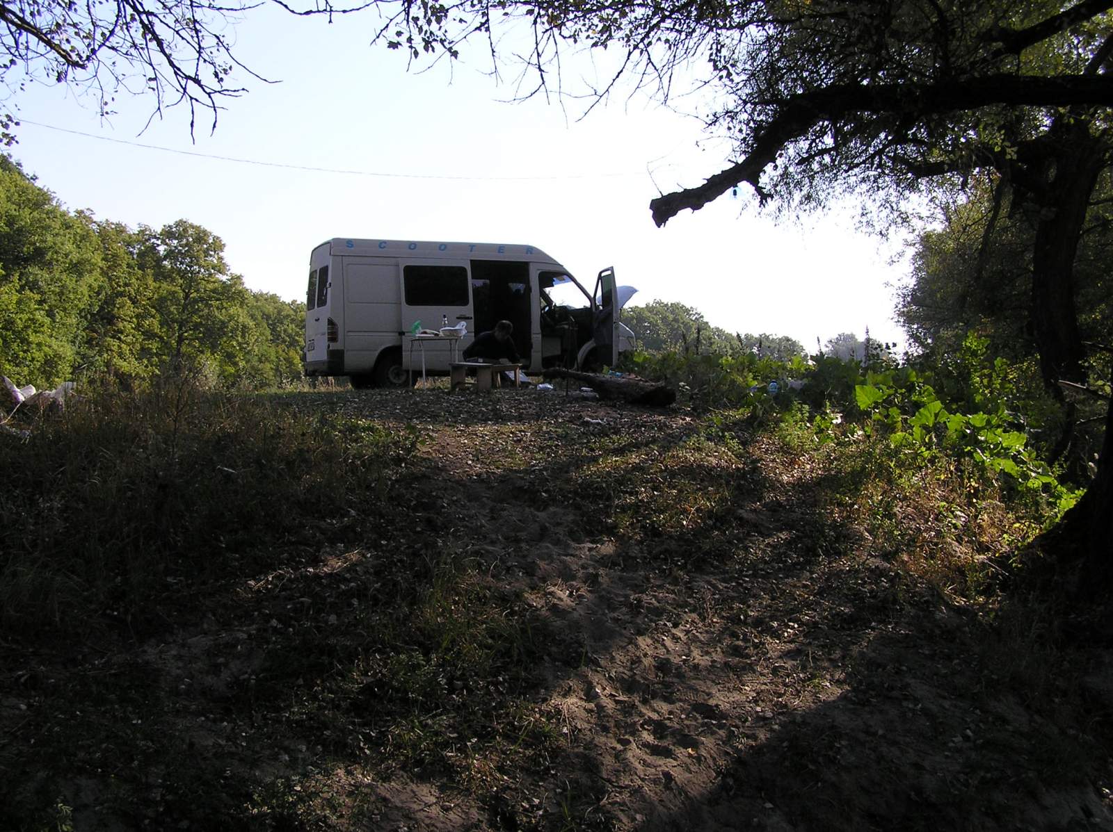 Как то подзабылась тема рабалки на Северском Донце, но я внесу новую струю в тему своим пребыванием там:1032:. Мой друг детством из тех краёв и настолько впечатляюще рассказывал о красивых лесах и быстром Донце, что я в конце концов согласился туда поехать. Конечно были и сомнения, ведь ехать в одну сторону только 300 км., но решение принято и мы собравшись втроём на три дня выдвинулись на отдых. Время в пути от Днепродзержинска к месту прошло очень быстро за байками, рассказами и анекдотами. И вот мы на месте, село Студенок, Харьковская обл., это в 60 км., от Изюма вниз по течению Донца, отъехав от села на 3-4 км., мы расположились на высоком берегу реки рядом с дубовым лесом. Да, пейзажи завораживающие. Как только начали разгружаться и располагаться пошёл дождь, настроение пошло к нулю:buee:. Так мы под дождик прямо в машине покушали за приезд пару раз и тучи рассеялись. Так как дело шло к вечеру то решили посвятить ещё светлое время своему местообитанию а рыбачить с утра. Ночь была немного неспокойная, нас проведали местные обитатели лесов и немного похрюкав и порыв под дубами убрались. Рано с рассвета мы за снасти и к воде, кто с берега, кто с лодкой устремились искать рыбацкое счастье. Практически весь день ушёл на адаптацию, ведь мы не знали ещё на что нужно ловить, какую снасть применить и какую рыбу можно поймать. Донец очень быстрая река, вода мутная и не знание особенностей лова дало о себе знать:пардон:, целый день прошёл в активном отдыхе у реки, исключение составило два небольших головля, окунь с трудом вместившийся в сковородку и немного плотвы. Хочу заметить что есть много мест для ловли головля, много коряжника для сома, но всё это на следующий раз. На следующее утро мы зарядившись спиннингами двинулись на поиски щуки:somyara:. Часа два мы бороздили воду Донца безрезультатно меняя при этом воблеры один за другим, вешали силикон разных расцветок. По пути встретили местного спиннингиста, этот дедушка лет 75 –ти так легко на своём каноэ с одним веслом шёл против течения, что мы были в шоке. За полтора часа он поймал две щуки чуть больше 2-х кг.веса каждая, а мы вдвоём 0. В лодке у него лежал дрын, по другому не назовёшь, с катушкой бабинной совдеповской с обычной блесной времён ленинской революции. Глядя на свои снасти и гору насадок так стало стыдно, что хотелось их утопить, но дед понял это и сам подсказал где лучше ловить. Я порылся в сумке и нашёл что то похожее на дедову блесну. После 15 мин.пробрасывания у меня в лодке уже лежала щучка на 1,8 кг., и друг вытянул поболее на 2,5 кг.:applodesments:, только он не менял воблер. Спустились чуть ниже по течению и снова у меня удар, протянув пол пути щука выписала такую свечу, каких я ещё не видел, не видел после этого я и щуку. В реке с быстрым течением и рыба сильная, поэтому любое вываживание приносит большое удовольствие. Спускаться далее ниже по течению не хотелось т.к. на своём «дебаркадере» мы не сможем бороться на одних вёслах:rybak2:. Пока мы спининговали, третий наш участник поездки подловил немного белой рыбёхи, и нам оставалось только усиленно заняться приготовлением рыбного обеда. Вдоволь насытившись едой и вздремнув в гамаке на свежем воздухе к концу дня решили прогуляться по окраине дубового леса. Пройдя метров 300 в густых зарослях заметили очертания воды, пришлось пробираться по какой то звериной тропе, что бы