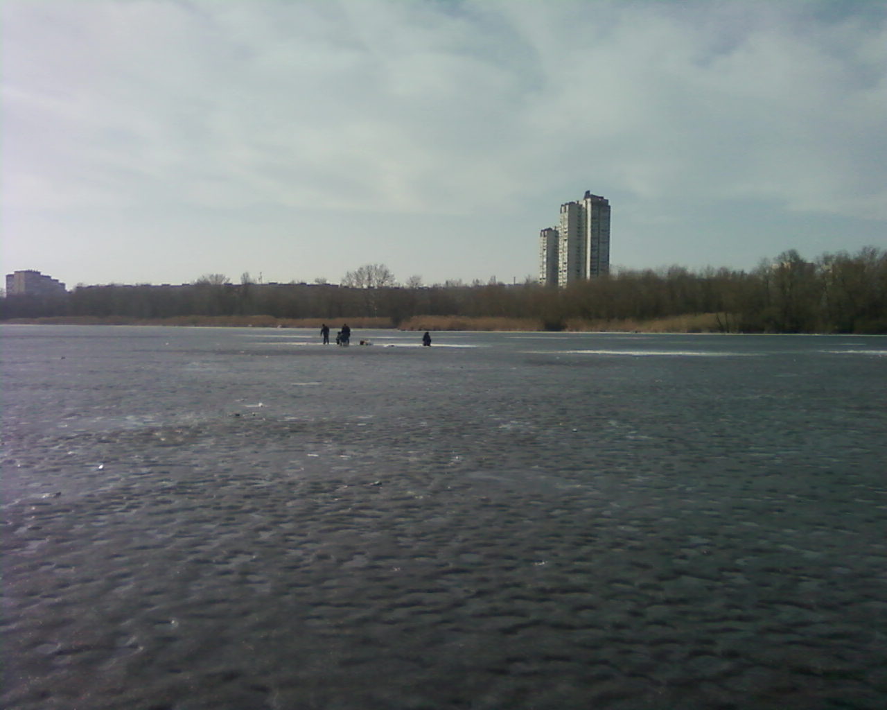Сегодня залив, Карусель. В девять на льду и до часа. Возле Карусели пять рыбаков, а возле Восхода около двадцати может чуть больше. Лед на сегодня чудный. В дрочку ноль, в стоячку( ходил по лункам, пару минут на лунку) норму находил. Те что сидели на одних лунках, от ноля ушли но не более. С четырех человек двае мои знакомые, Я уходил у них было по десятку, плотва гр по 100. А вчера они хорошо ловили. Фото сделано в 11 часов.