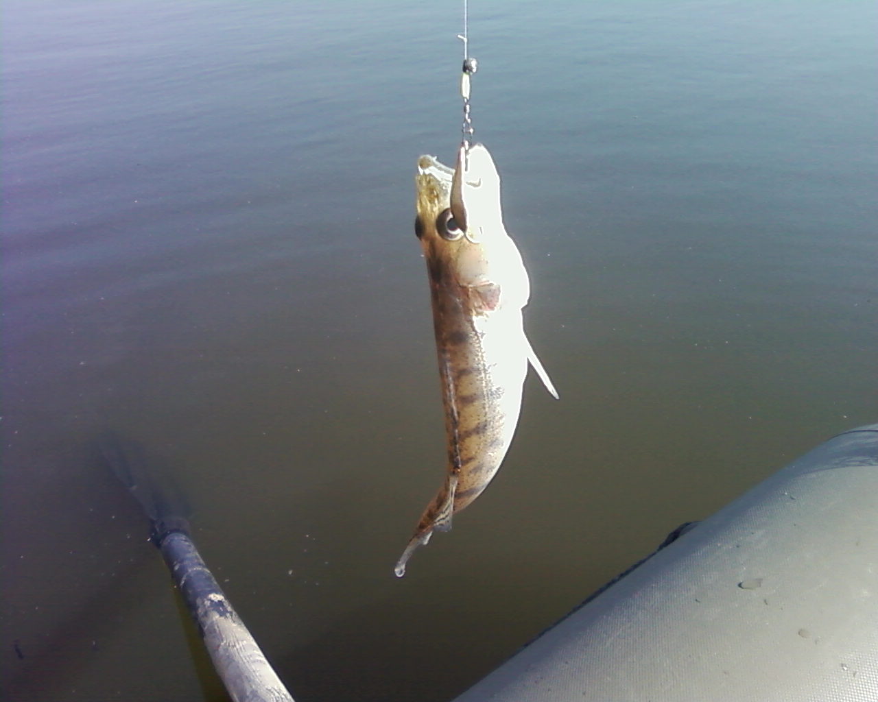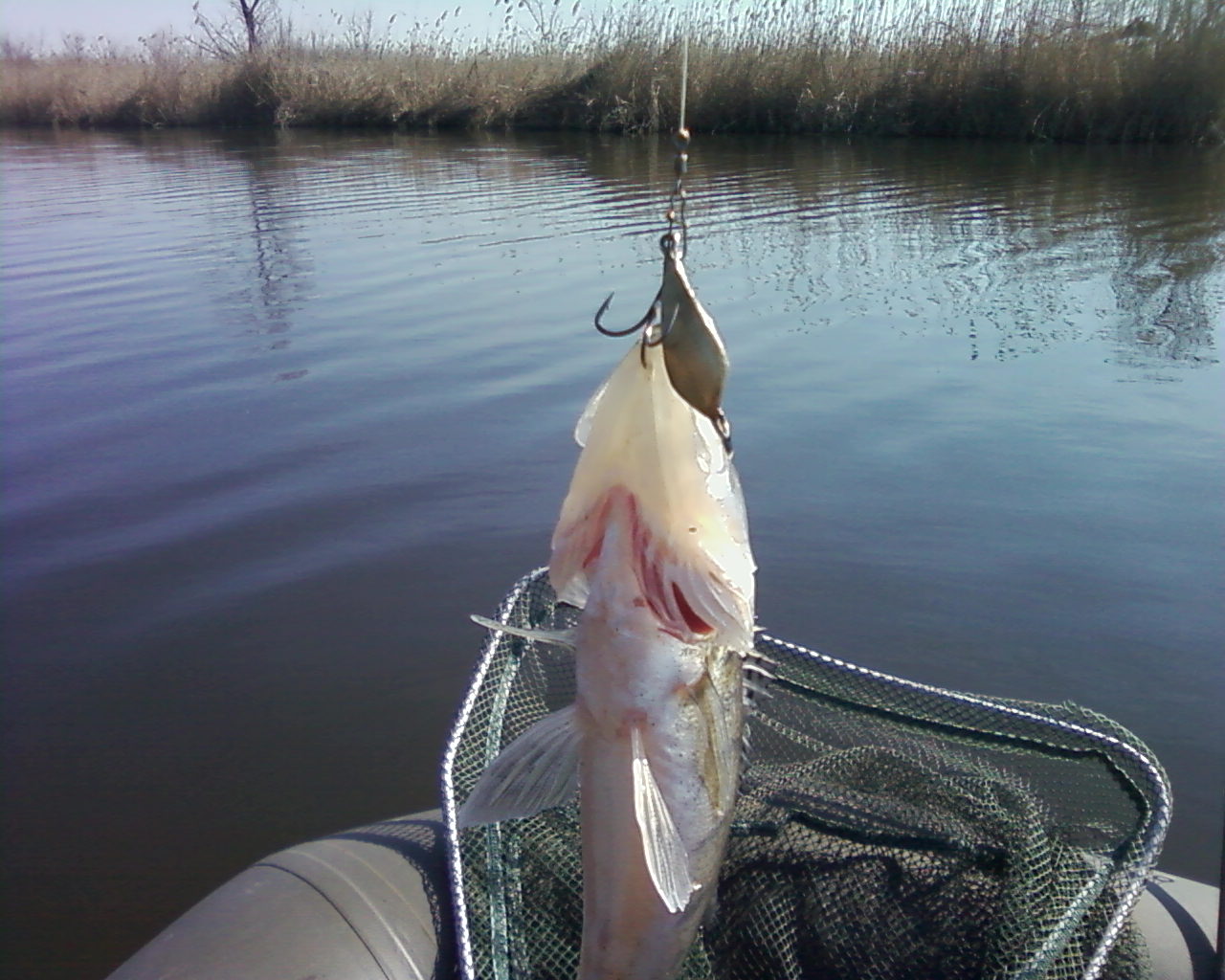 Сура. Попал в ветер, с десяти до трех. Сход и один обрыв (не срез) и два в ладошку судачка, отпущены. Вот и вся рыбалка. Нанофил Беркли 0,06 блесинка и тройничек.