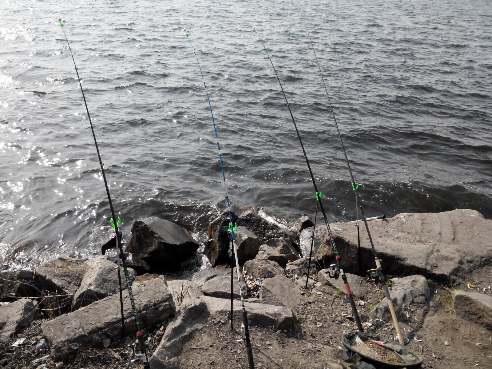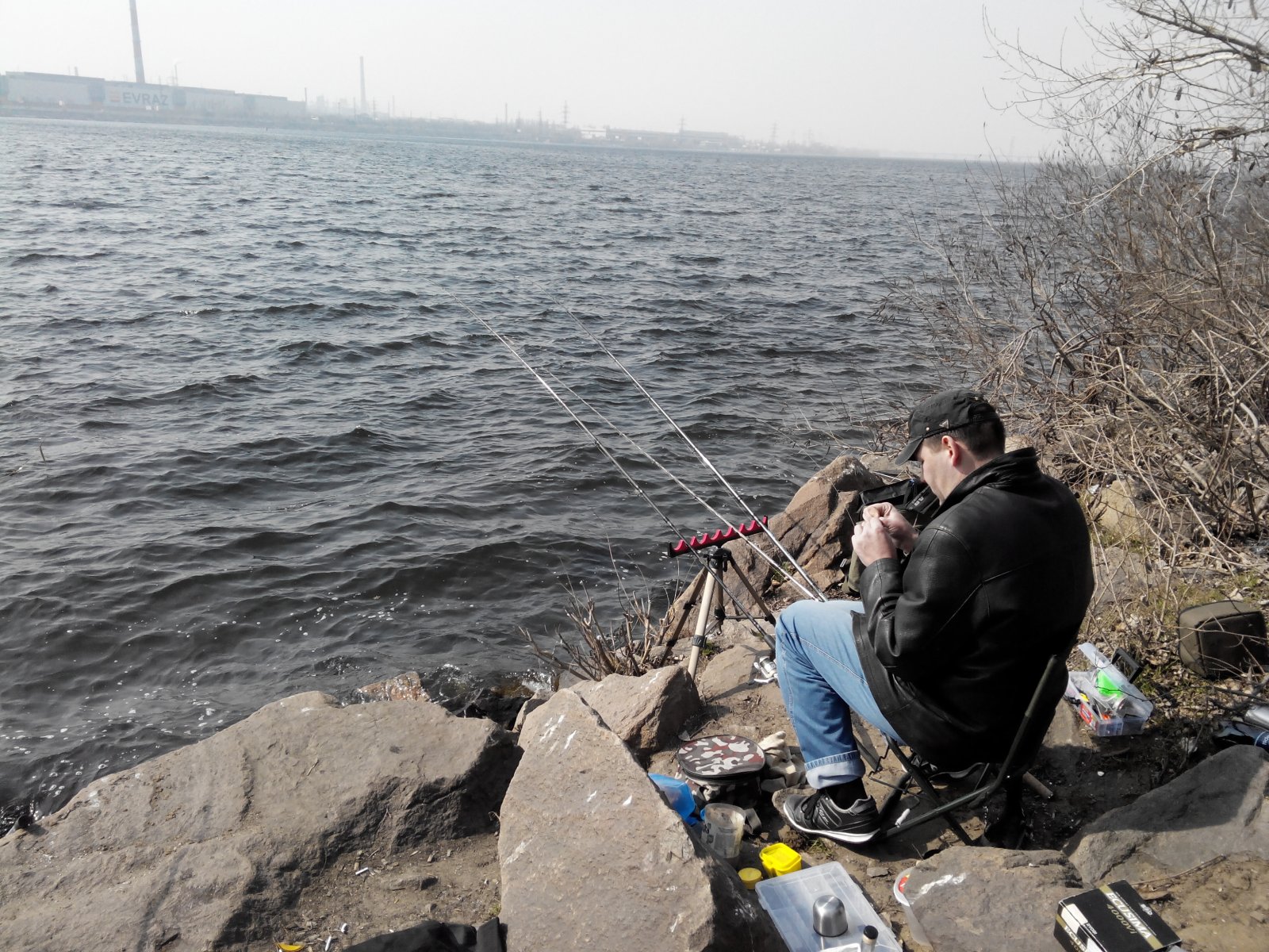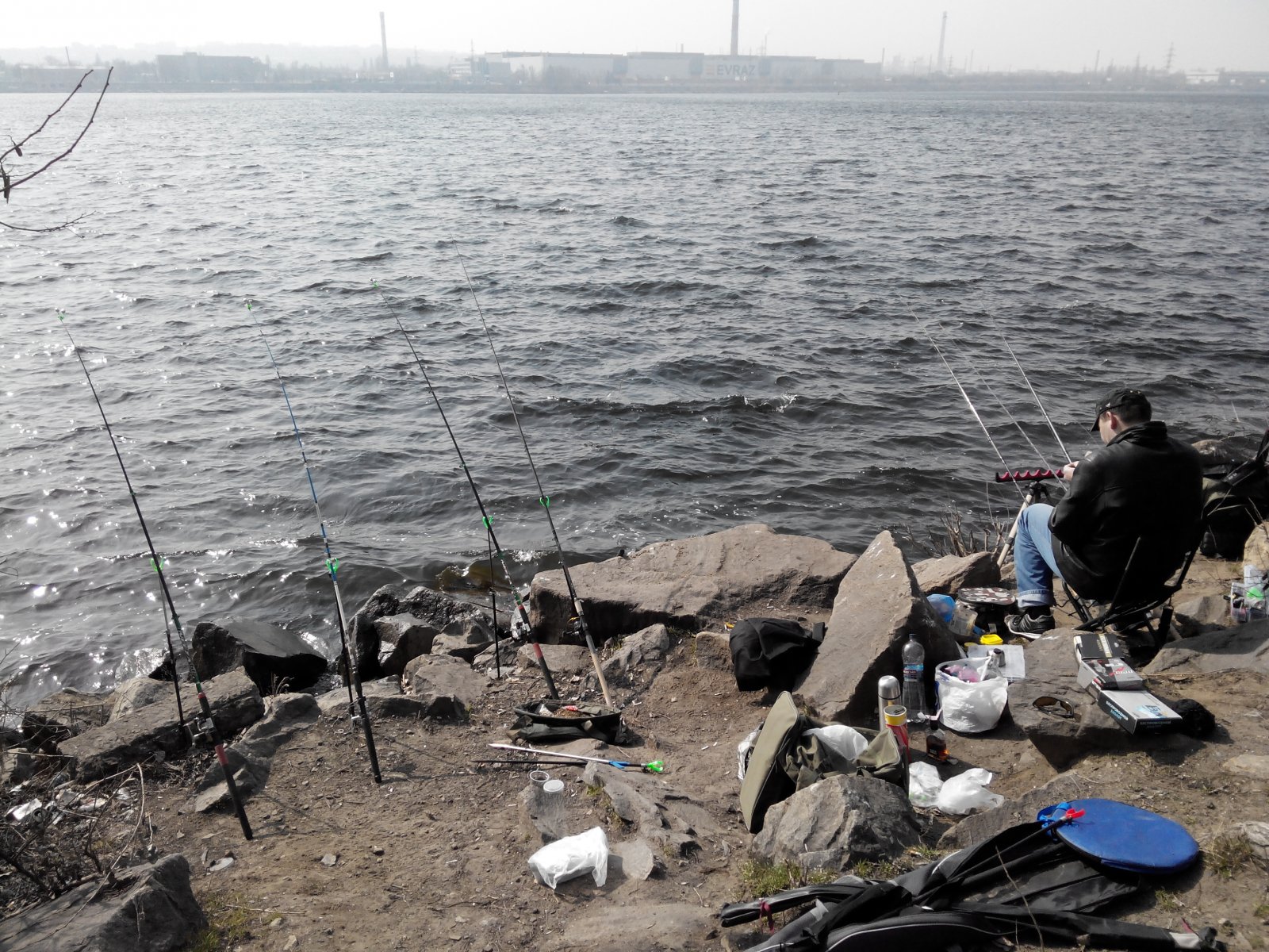 15.03.14 коса Амур-гавань, собрались на разведку и так сказать открыть сезон по фидеру: я,Кениец (Андрюха),JackPorter22 (Серега) с другом, и мой брат. На улов ни кто особо не рассчитывал, так как понимали что еще рано для Днепра на фидер, но дома уже сидеть было не невмоготу. В 6.30 у на месте были, разложились, сделали прикорму, в прикормку куча мотыля мелкого и опарыш, разошлись по берегу и закинули в ожидании мега клева 12 фидеров:somyara:. С утра тишина, гладь, ветра нет, одним словом красота. Но кроме этой красоты больше так ничего и не увидели. Поклевки были какие-то вялые и не уверенные, если вообще это были поклевки, хотя Серега умудрился вытянуть бубыря одного:). Наживки были красный червь, опарыш, пенотесто - использовали разные комбинации прикормок и оснасток. Но от нуля так и не ушли:) к 11 часам поднялся сильный ветер, ловить стало очень не комфортно, так что часам к двум собрались домой. Но после зимы и такая разведка была в радость, посидели, поболтали:cr:, прекрасно провели время.