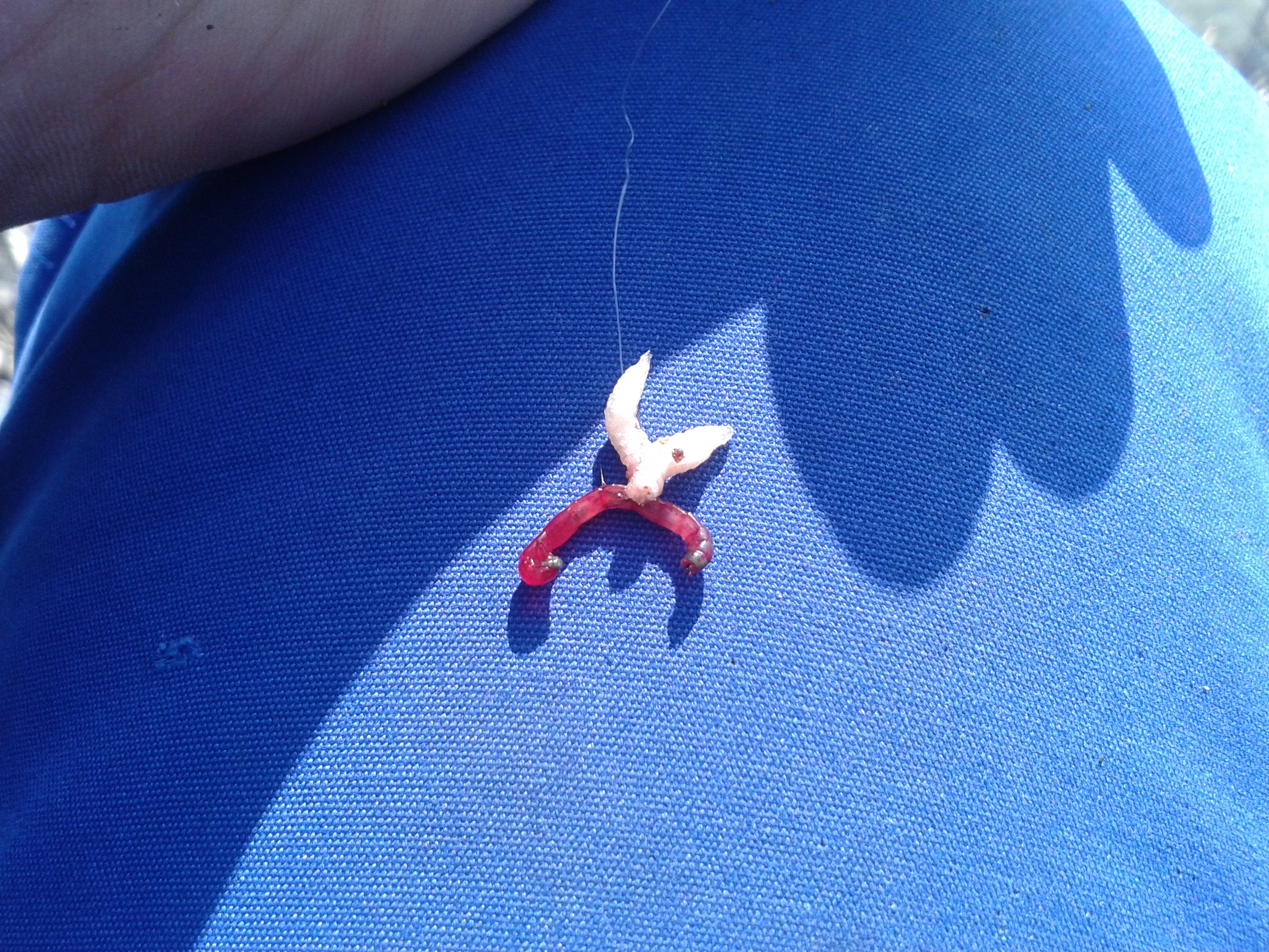 Сегодня, Сура, на том же месте. Решил перед морозами, половить рыбки. Прикормка, остатки с прошлой рыбалки, только добавил немного копромеласы от ВДЕ. Первый раз приехал без мотыля. Старый мотыль пропал, но обнаружил это только утром. В магазинах нет, на рынок некогда ехать. Решил ловить на опарика и красного. Поставил два фидера, один на опарика, оснастка ин-лайн. Второй на бутер, красный и опарик, оснастка петля Гарднера. Стартовый закорм, по 5 кормушек. Забросил первый фидер все ОК, бросаю второй и отстрел кормушки. ХЗ, откуда взялась петля на катухе. Перевязал, забросил, жду. Час жду, два жду, три жду, в итоге с 9.00 до 14.00 заработал 5 поклевок, все на ин-лайн, на опарика. Реализовал 4 поклевки, плотвичка меньше ладошки. Закончилась прикормка и уехал домой. Рыбаков на очистных было мало, браков с пауками вообще не видел. Думаю, что до тепла с рыбалкой пора завязывать.
