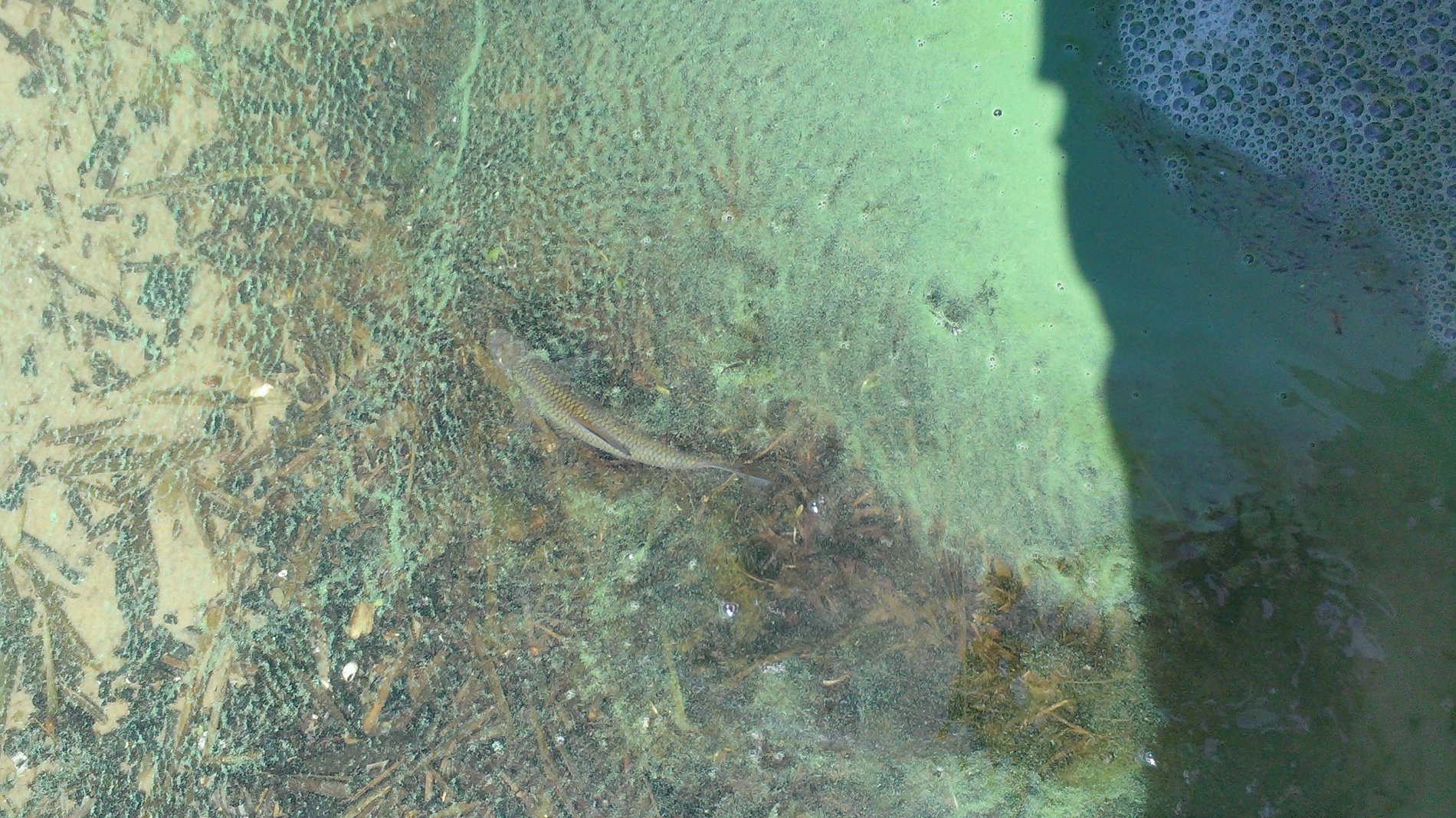 К половине девятого врубили течение и я заметил небольшой отстрел квивера,вымотав снасть обнаружил срез крючка ну думаю может бычек завел в камни или т.п. Перевязал поводок и тут же получил отчетливую клеваку сделал подсечку вымотал и опять срез поводка,после следующего заброса была опять резкая поклевка и тут подлящик был доставлен на берег.Сразу мысль что на точке стайка лещика и надо дать ему что то поесть пока течение не размыло корм скопившийся за 3.5 часа и быстро начал резать червя и подавать горох.Положив 3 кормушки я был почти уверен что он сейчас клюнет,но этого не произошло:(.