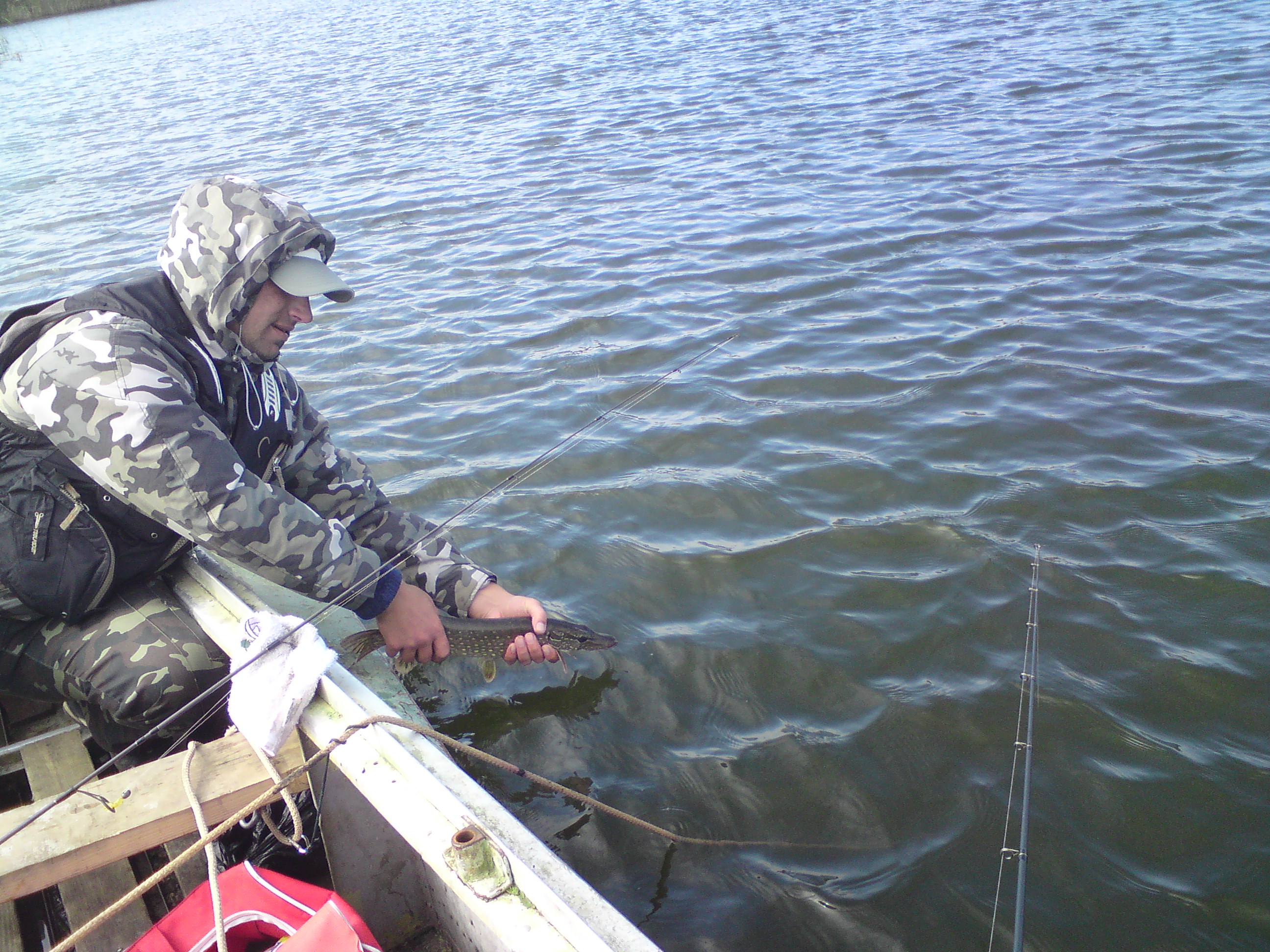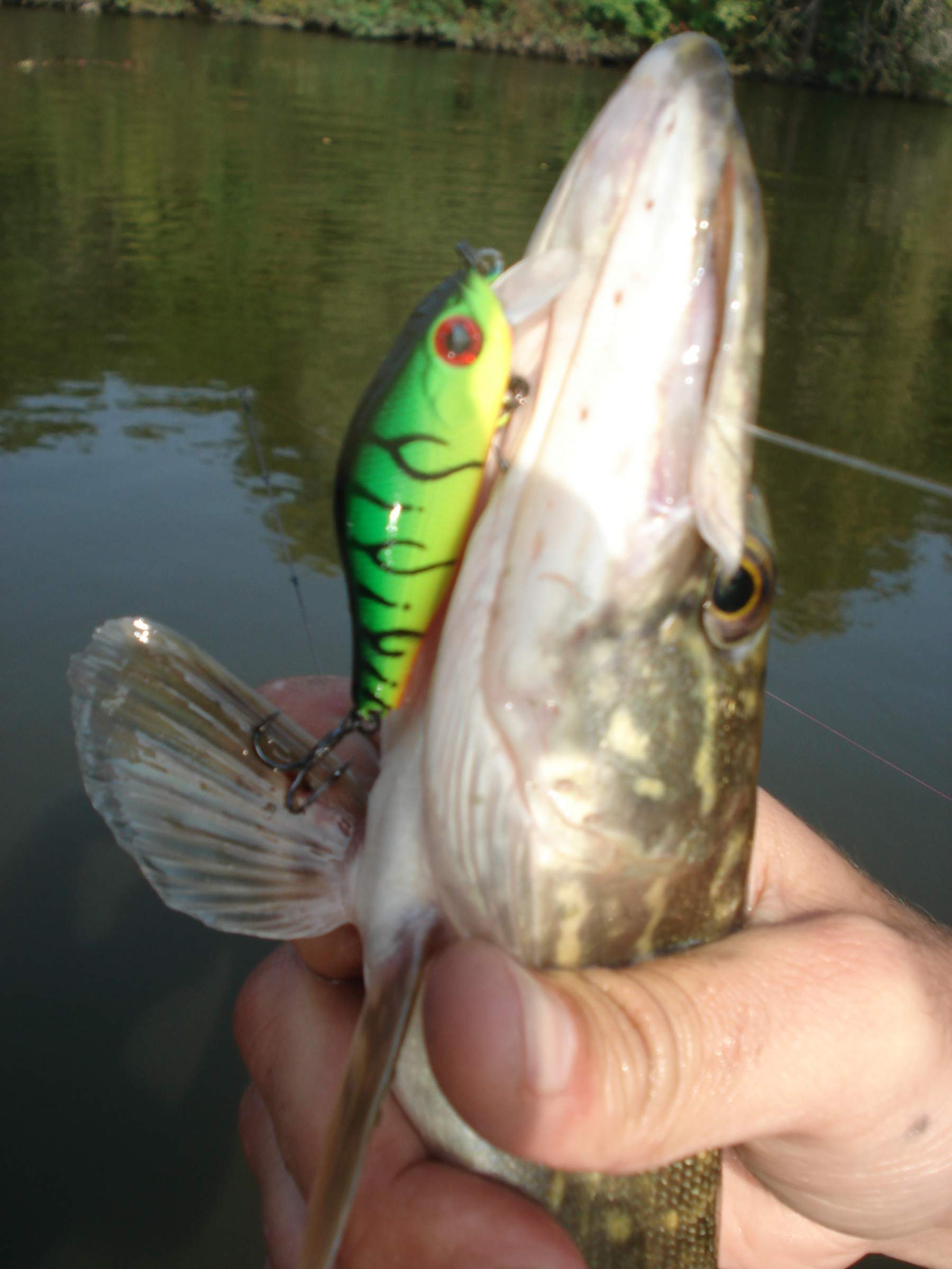 Суббота, 10 октября, рыбачил на Коммунаре. Спиннинг с берега. Поймано 2 щучки, одна на 800 грамм, вторая 250 :( . МАлька пришлось забрать, ибо были повреждены жабры (промахнулась во время выхода и зацепилась одним цевьём тройника под жаберной крышкой, а вторым рядом с грудными плавниками). Жалко, но пришлось забрать. Уловистыми оказались воблеры: Rapala X-Rap 10 (цвет CLN), Salmo Perch (расветка под окуня). + Рыбко ограбило меня на блесну (не поставил поводок, вот её и откусили).