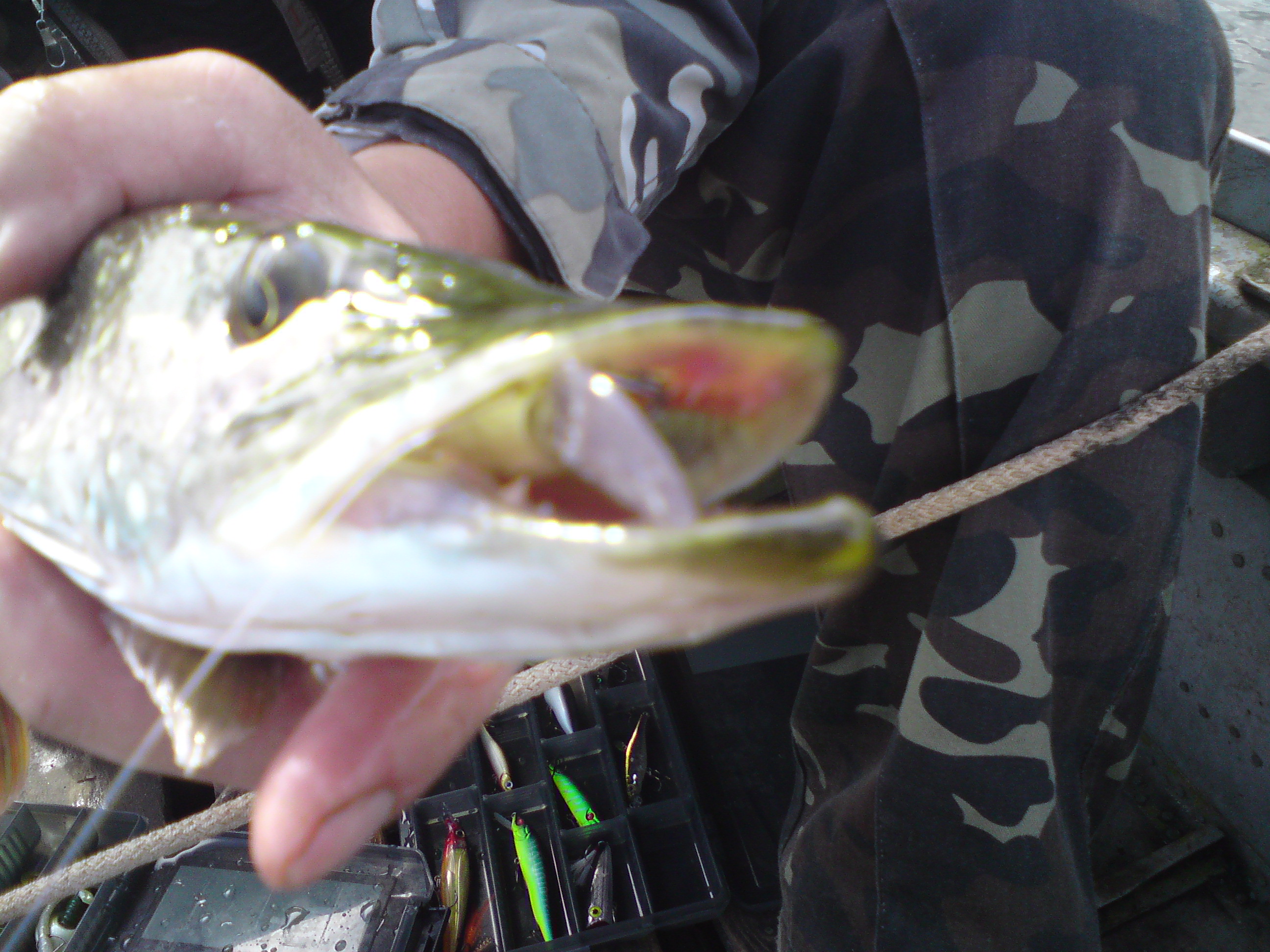 С воды взяли щучек (до 700 грамм) кажись 7 штук, окуней чуток накосили, голавлика два вытянули, Макс задолбал меня с идеей поймать плотву или краснопера на пиписичные воблеры- пришлось сделать заинтересованный взгляд и поехать на меляки в 0.5 метра )))