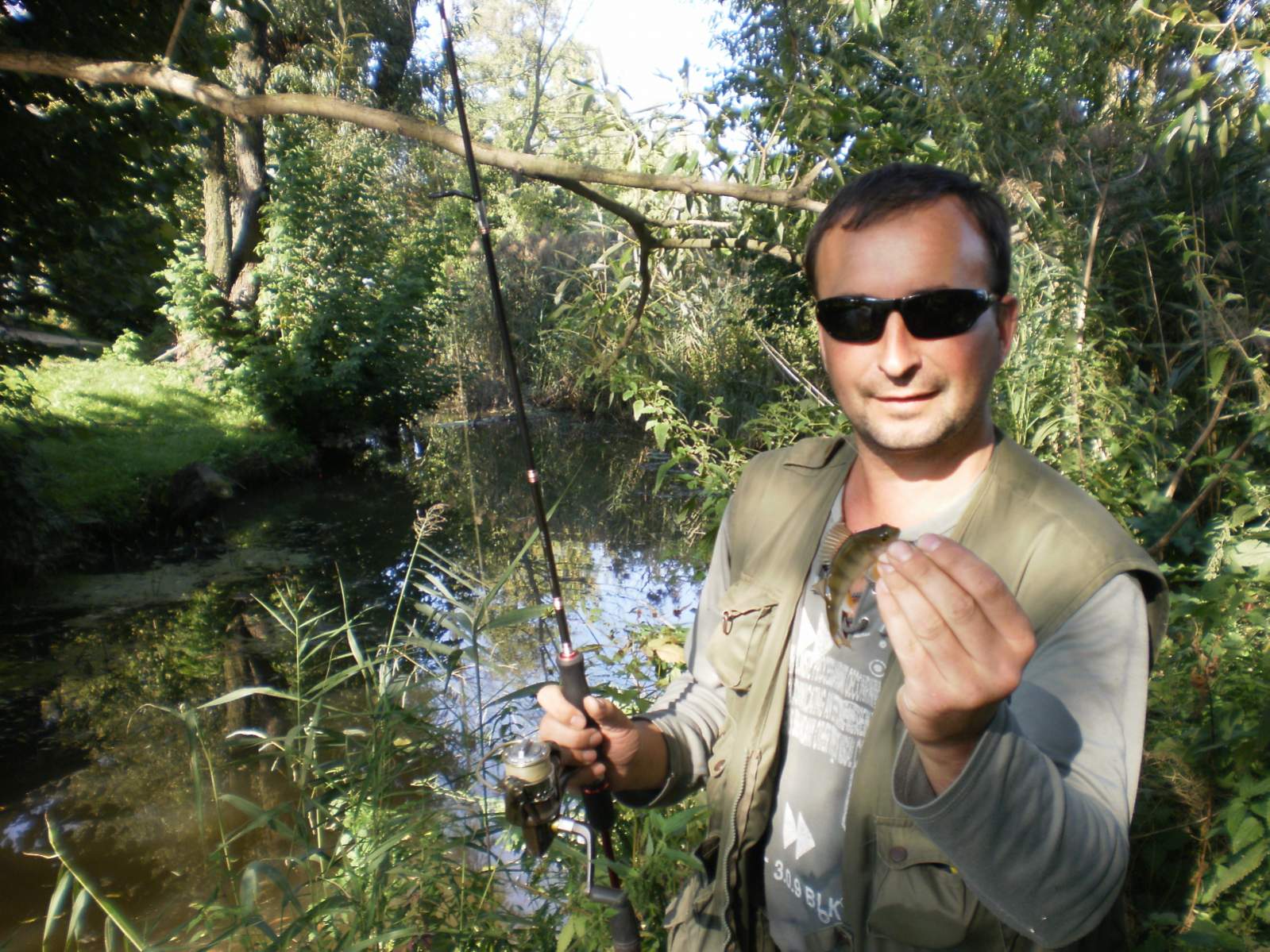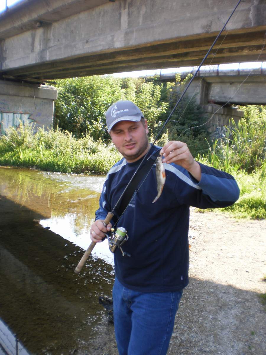 Сьогодні я з Миколою вирішили, зробити рибалку - розвідку, розвідати нові для себе місця. З самого ранку поїхали на річку в с. Тростянка, але побачили, що умови не підходять для МДЖ. (а іншого не хотілося :)), повернулись в с. Пятидні під міст, де я з першого закиду мав схід, з другого - невеличкого полосатого, з третього - вже залікового полосатого, четвертого - теж залікового, а п"ятий заброс приніс мені невеличкого піскаря :) і покльовки закінчились, Микола поки міняв приманки, то встиг витягнути лише одного, вирушили вниз по течії, де Микола взяв ще одного горбача. Бачили як з води випригувала не мала рибина. Вернулись знову під міст, але там вже були бракошикі з телевізорами, які побачивши нас швидко зібрались, але вже розлякали окуня :(, раз вже в П"ятиднях, то вирішили зміститись вверх по течії, але знову ж таки умови нам не дали покидати, вернулись до машини, яку залишили біля Пятиденського ставка, хоч рибалка там заборонена, ми все ж таки вирішили спробувати, але вже на першій проводці, до нас підїхав сторож. і вічливо попросив....... Потім зупинились на заплаві озера Лісного, і як не дивно за годину часу я отримав лише дві покльовки і один схід, повертаючись назад ще закинув в саме Озеро Лісне (через забор :стыдно:) де за декілька проводок піймав два спортивних окунця, і мав ще два схода, через те що забор далеко поставили від води :) Потім повернулися в місто, і зупинились на плотіні біля Білих Берегів, де я спіймав ще одного полосатого, (дуже багато волосся в воді не дає до дна впасти джизі). Потім поїхали на міський пляж, де немали навіть покльовок (мабуть окунь змістився, через зниження рівня води). Далі поїхали на Зимненський пляж, де Микола заробив покльовку. Вирішили ще спробувати в районі школи-інтернату, але знову ж таки велика "волосатість" річки нам не дала покидати. Повертаючись додому стали біля річки Риловиця (права притока Луги) річка (точніше струмок) ширина якої в деяких місцях не перевищує 50 см., а глибина максимум метр і за 30 хв. рибалки я отримав 6 покльовок, які принесли мені ще декілька полосатих хвостів. (рибу з Риловиці не брав, і нікому не раджу:)) Микола теж відловився.