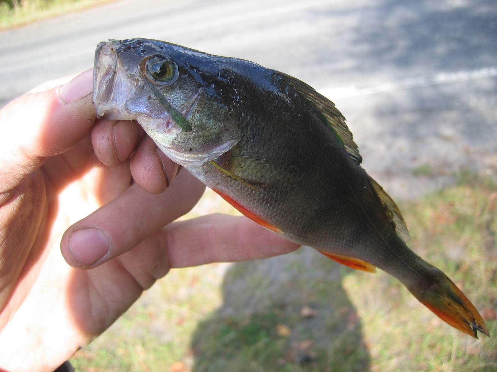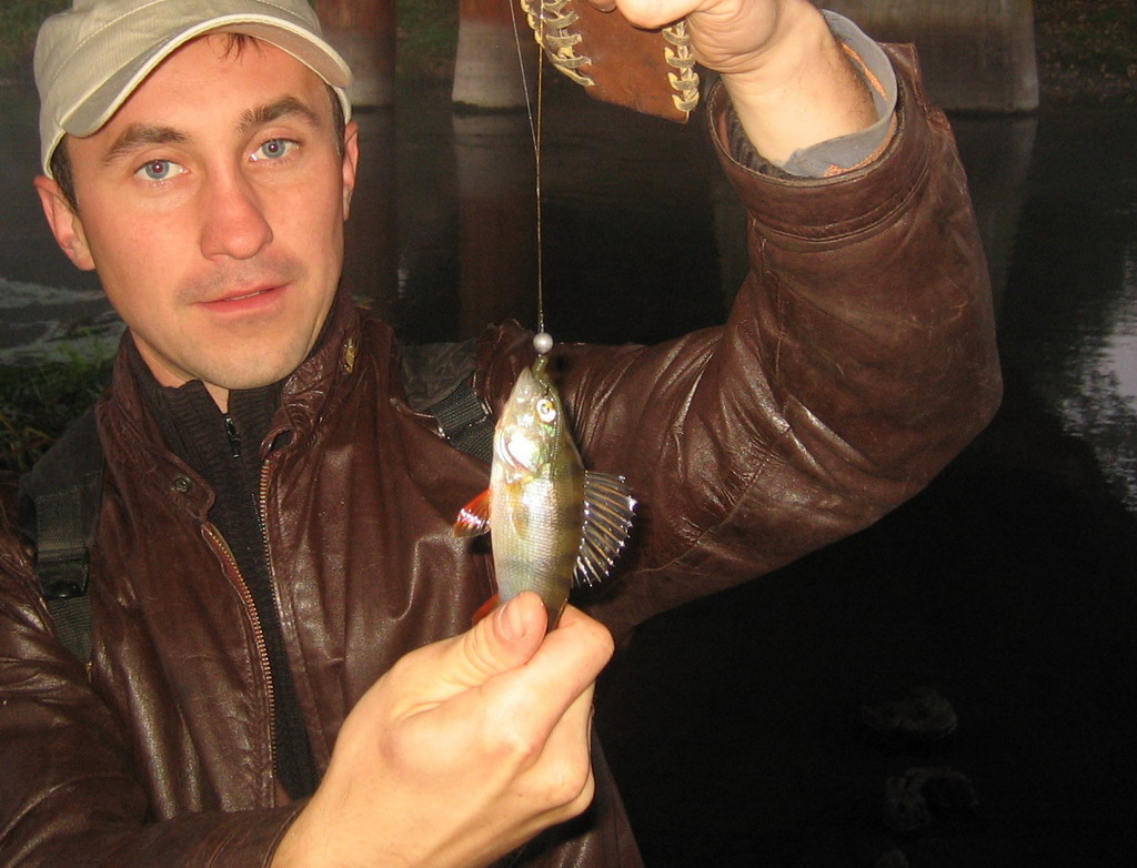 Місце вилазки – пятиденський міст. Дуже хотів попасти спершу туди, так як Semenuik розказував, що там є окунь. Поставив леску 0.18, бейт бріз , сфотографувавши його на пам’ять, так і знав що прийдеться з ним сьогодні попрощатись. Присів під мостом , перший закид , покльовка, і окунець через пару секунд на березі. Я в шоці, мій брат теж. Через пару проводок знову покльовка, потім знову. Після 4-го окуня червяк не витримав бомбардування і слідуючий окунь стягнув його з гачка. Ставлю другий (останній). Відразу покльовка, і знову полосатий на березі. Потім індокачки вирішили що вистачить мені , і шубовсьнули в воду з всієї дурі прямо в мене перед носом. Йду далі… Став справа за метрів 100 від моста на ямі і знову покльовка. Тягнучи з глибини на ультралайтовий (якщо можна назвати мій Bratfishing) спінінг ладошечні окунці здавались півкілограмовими. Витягнув ще 3 штуки і пішов доганяти брата, який кидав силікон на щуку. Коротше адреналіну море, але ще все попереду. На слідуючій ямі покльовка, фрікціон розривається, і хтось з великою швидкістю тягне мого хорбака на дно. Я , по своїй необізнаності і браку досвіду став швидко затягувати фрикціон. Секунд 15-20 боротьби і залишився я з обірваним кінцем лески. Руки і ноги ще довго трусились. Хто б це міг бути ?? Можливо щука ?? Незнаю, але та зараза останній мій бейт бріз вкрала. Ставлю силікон на щуку і доганяю брата. Через пів години взяла щучка на білий з чорною спинкою MANS. Можливо Tarantul_wm ще доповнить, але йому щось сьогодні не так щастило як мені. Пару виходів щуки і все.