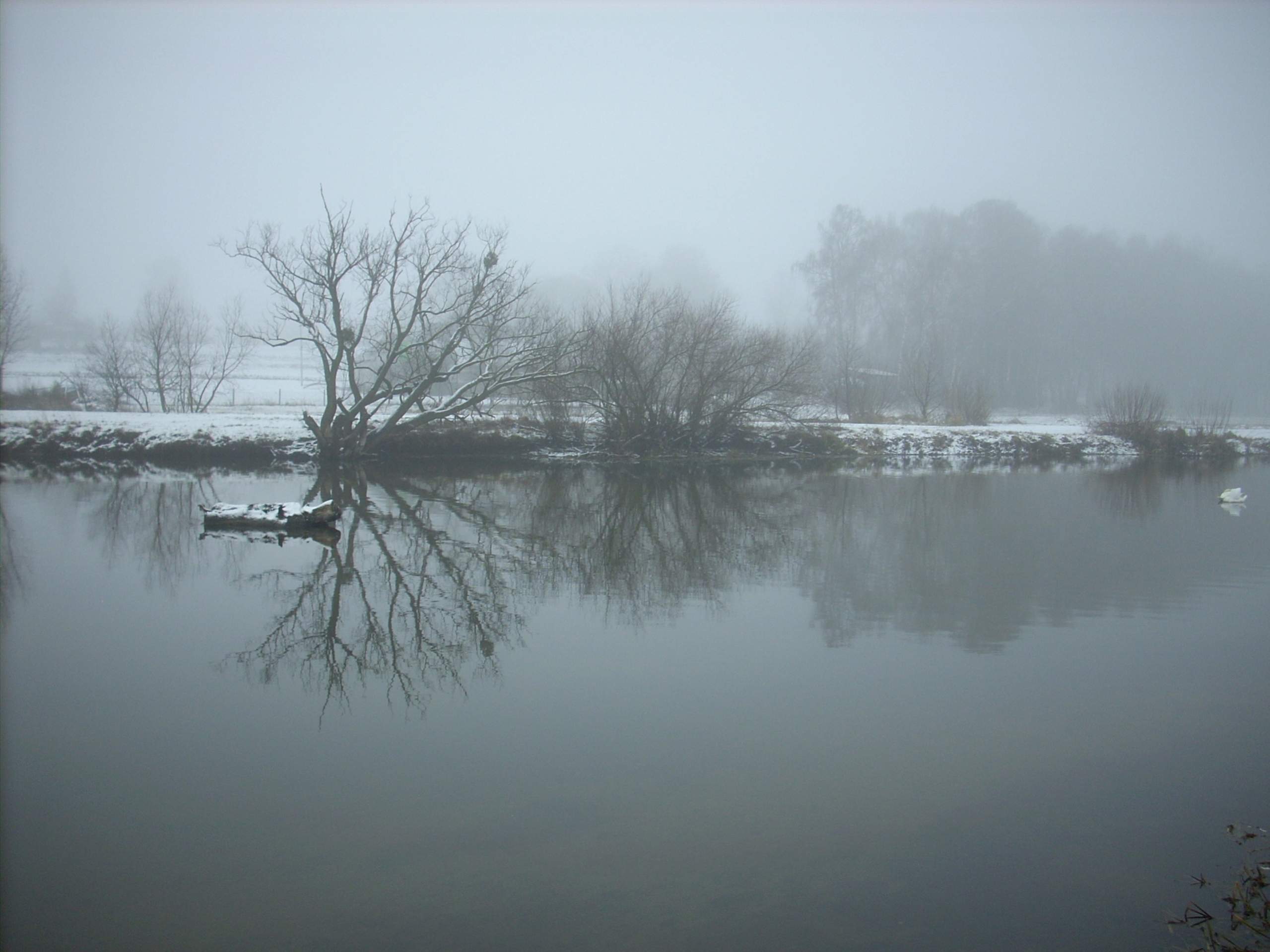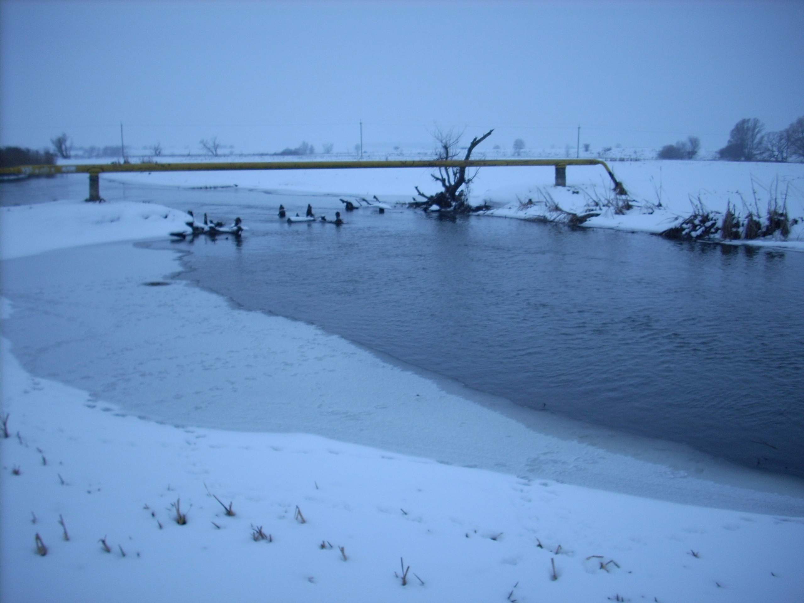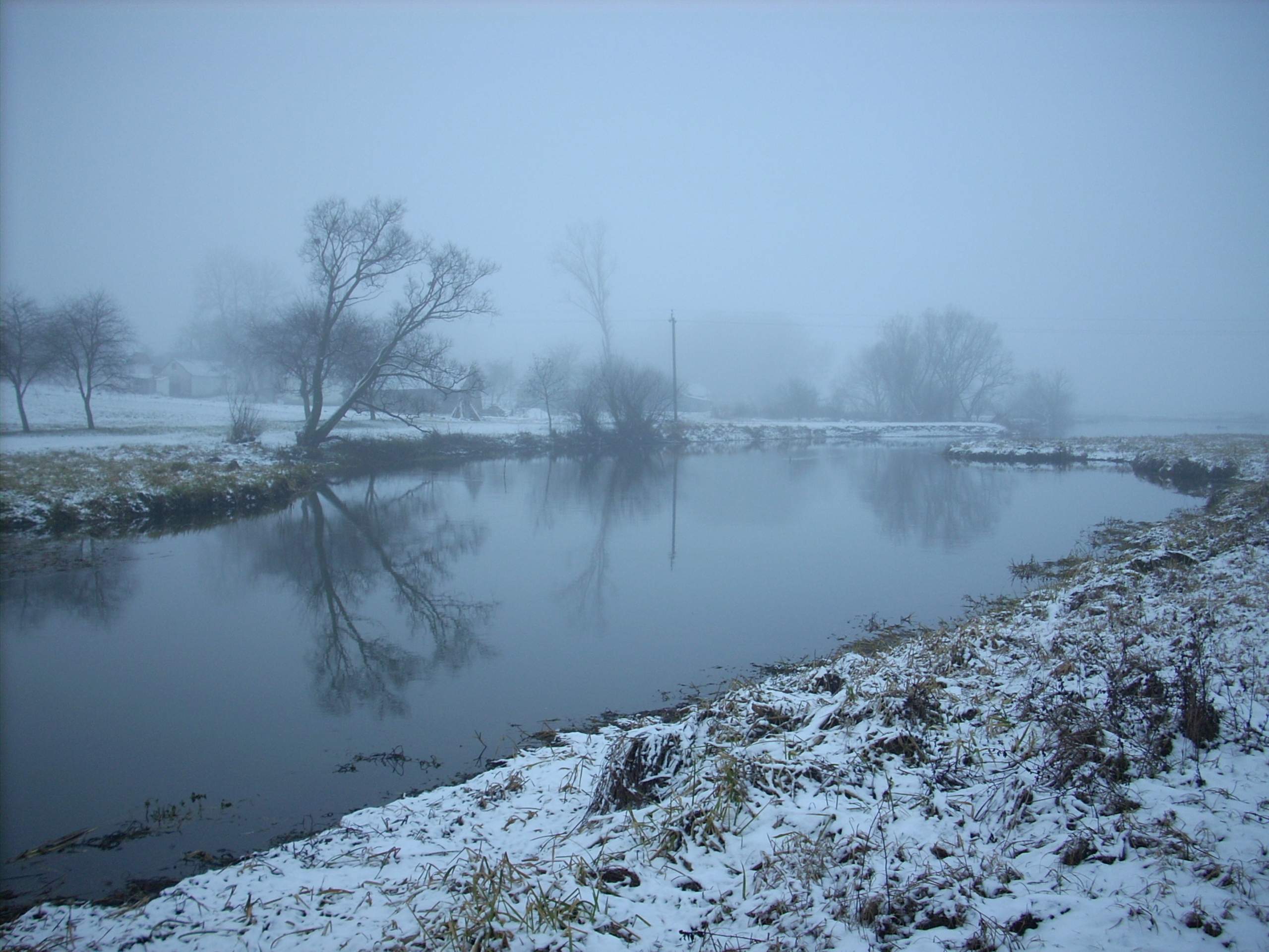 Вийшов на річку зранку в 7.15. В 7.30 південний вітерець змінився на західний, у повітрі з`явилися перші сніжинки (я якраз збирав спінінг), а коли почав ловити то сипало вже конкретно. Ходити важко, місцями снігу по коліно. В одному місці провалився в заметену снігом боброву яму, треба бути обережним. На річці є вже закраїни під берегом, вода несе лід, а місцями утворилися льодяні затори. Луга встає – на радість любителям зимової рибалки; ну а спінінговий сезон напевно закривається.