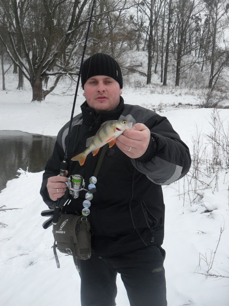 Попав випадково на річку 2-го січня після обіду. Був біля словянського парку. Течія дуже швидка від дитячого пляжу майже до нависної кладки.Поняття немаю як там ловити. Одне єдине місце де трохи позакидав - це зимувальна яма за метрів 100 від кладки. Там на третій проводці вцепився окунець. Дуже жадібно взяв ультрафіолетового твістерка. Після покльовки з швагром замочили відкриття сезону 2012, налили пару крапель полосатому другу, випустили і пішли до дому.