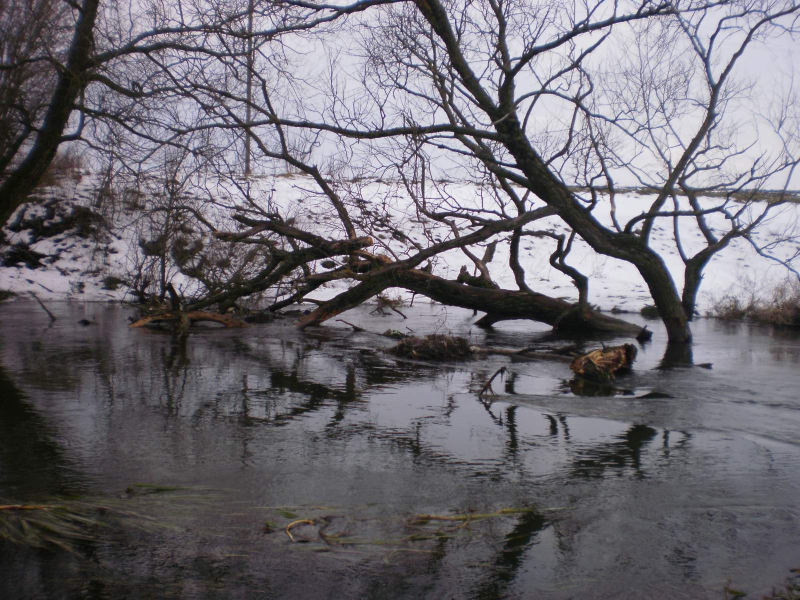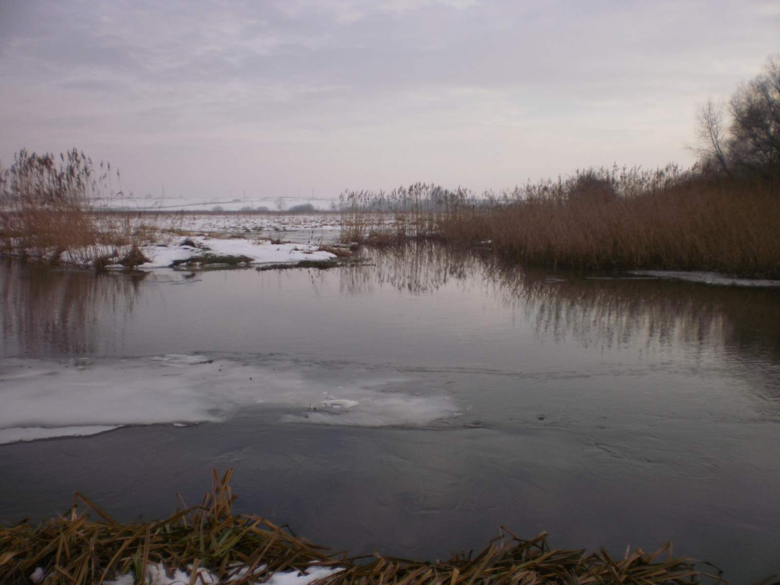 Засумував за річкою,спінінгом не встиг довелося пешньою.Крига тількі під берегом та й та не дуже,Цією зими вже мабуть незамерзне.Зловив одну плотвицю,розмовляв з рибалками,кльов ніякій.