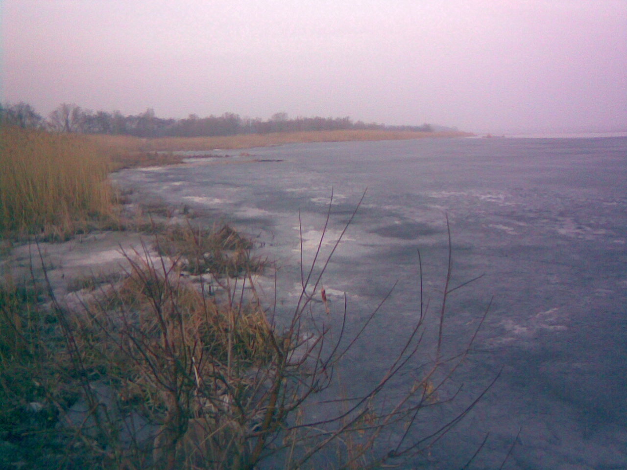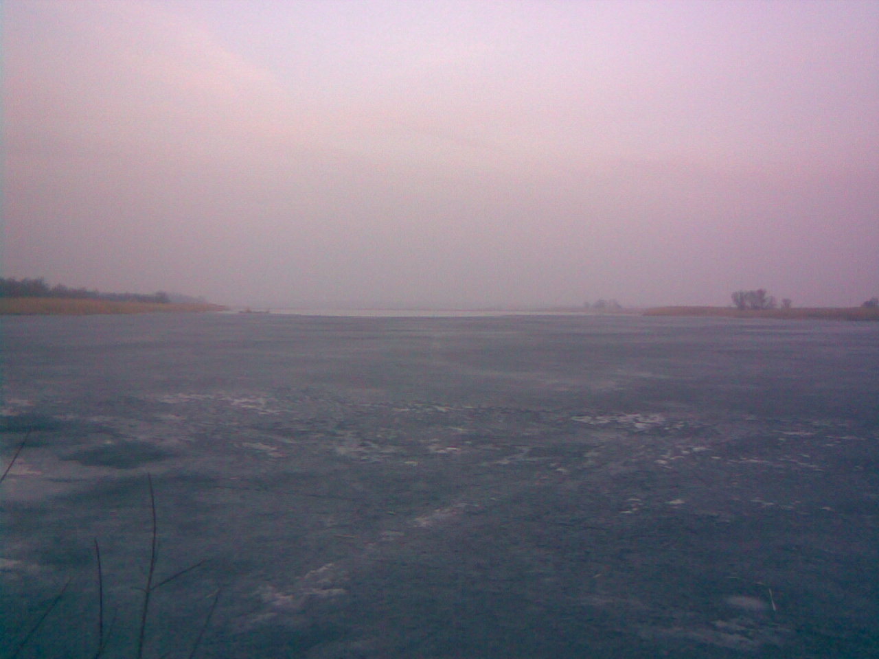 09.01. Орлик, база УООР. В 7 30 на льду, или на воде, т.к. на поверхности льда слой воды 2-5 см. Толщина льда позволяет без опаски танцевать. Смущает одно – туман. В пятидесяти метрах человека уже не видно. В таких условиях напарники отказались искать полосатых, устроившись недалеко от берега на бель. Вдалеке слышно как рыбацюги орудуют пешнями и ледобурами. Я выдвигаюсь в даль светлую, вернее беспросветную. Активно перемещаюсь, рублю лунки, проверяю старые - ОП. С блесной на лунках долго не засиживаюсь, несколько проводок и иду далее. К двум часам дня сумел уговорить десяток окуньков. Да, результат «свежий воздух» не сильно впечатляет. На одной из лунок легкое царапание блесны. Задерживаюсь минут на пять. Окунь трогает блесну, но садиться на крючок отказывается. Меняю блесну на мормышку с мотылем и дело заладилось. Нельзя сказать, что очень активно, но на фоне целого дня бесклевья уже кое-что. Рядом с «клевой» лункой нарубил еще около пятнадцати. Глухо, клев только из одной. Достал безмотылку – стало веселее. Фактически каждая проводка заканчивалась поимкой окуня. Размер ладошечный. Соблазнить на поклевку удавалось высокочастотной игрой на подъем до полуметра от дна. Глубина ловли около 2 м. К трем часам пополудни клев утих. Искать объект ловли уже было лень, да и улов уже нормальный. Вот так за какой-то час удалось нормально порыбачить. Кардинально поменялась рыбалка от бесклевья до активного жора. Туман не рассеялся и направление к берегу определял по петушиному пению на хоздворах. Возвращаюсь к напарникам. Уловы более чем скромные. Говорят плотва отказывалась клевать.