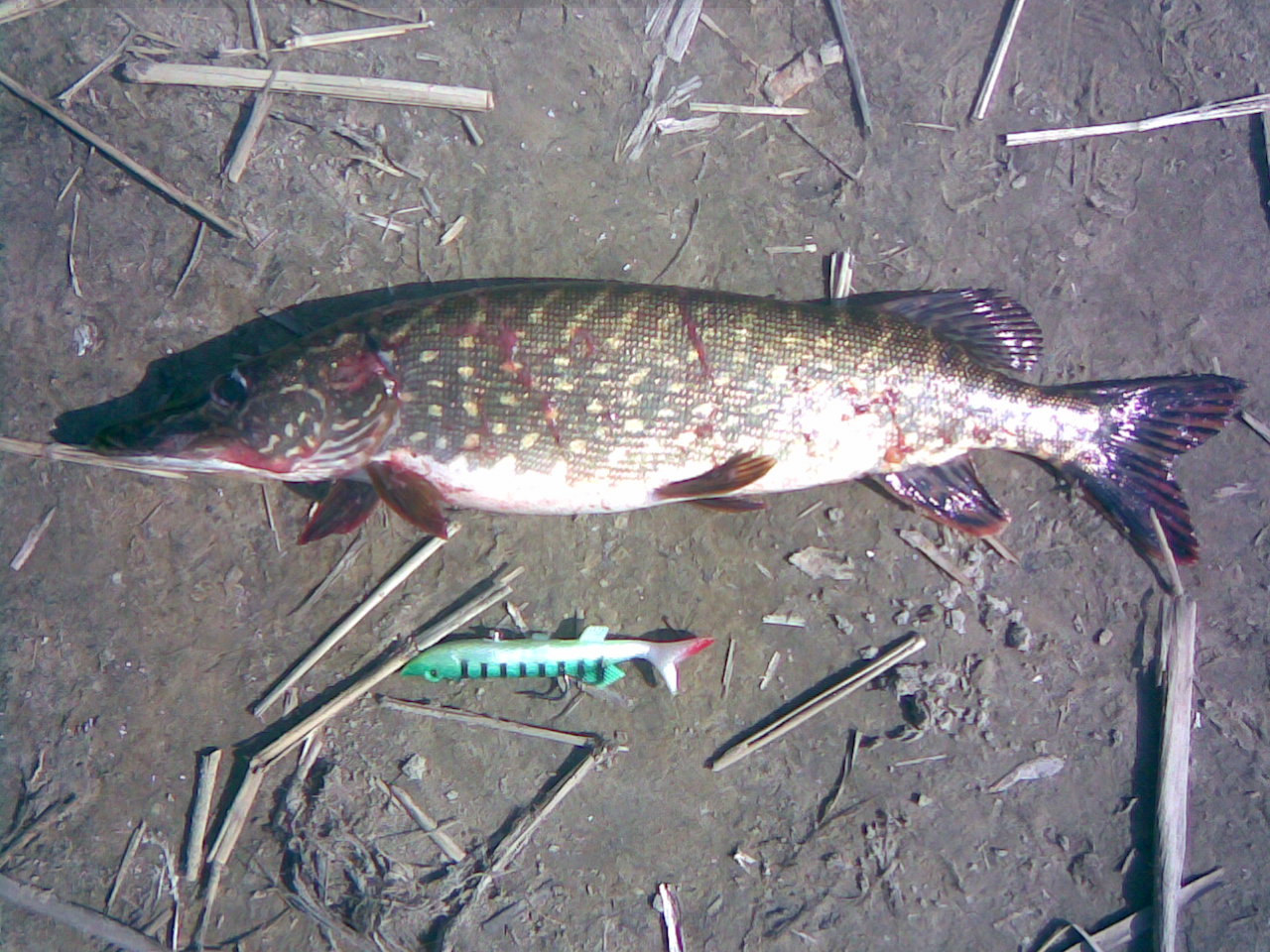сегодня в с.Радянское. плавни недалеко от Орлика. хорошенькая щучка взяла воблер. джексоновый карась окуневой расцветки. не взвешивал, но с виду как полторушка (до двух кг). по эхолоту видели много рыбы на разных глубинах. но поклевка была всего одна на двоих.