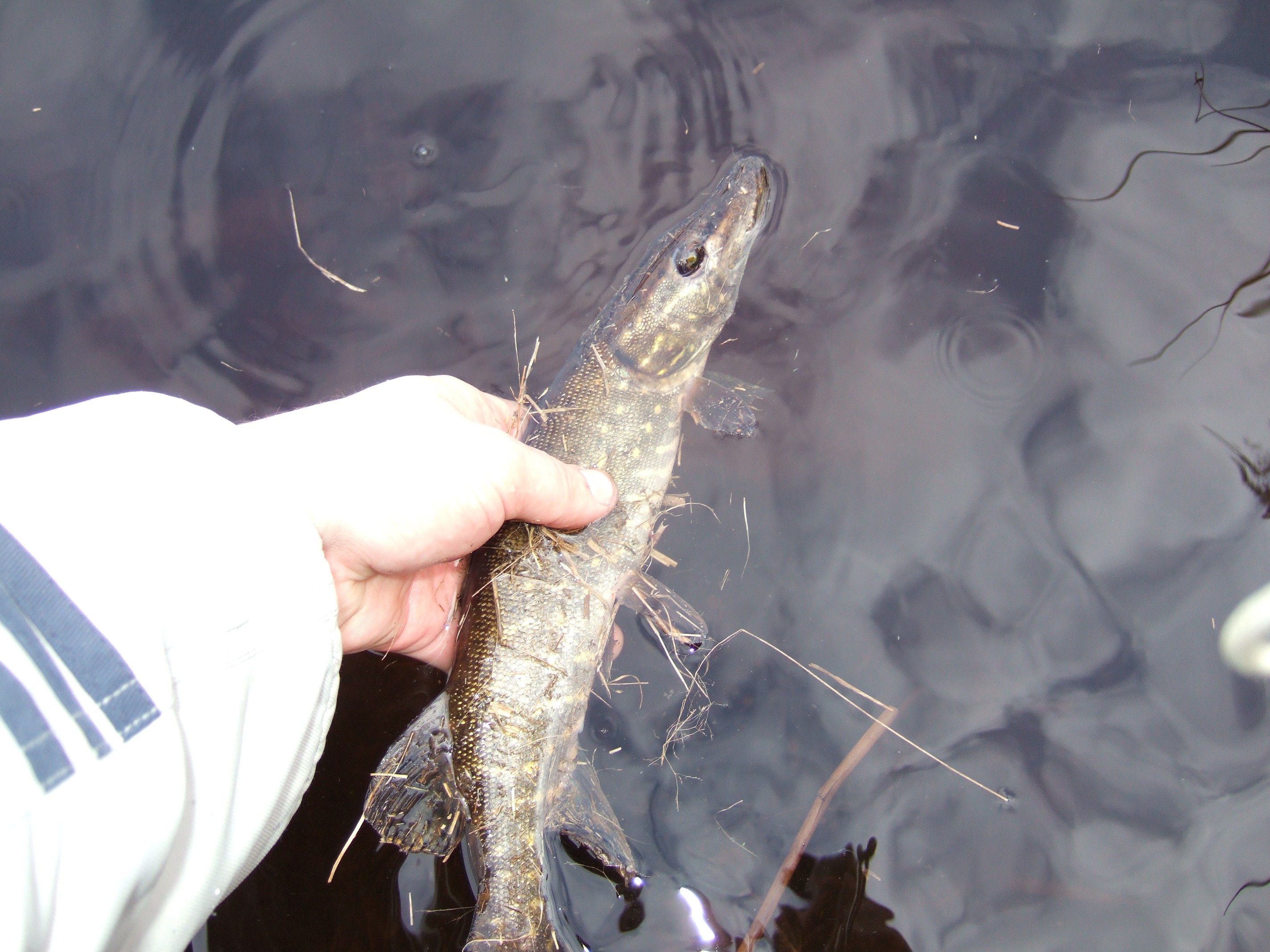 Теперь о рыбалке-дорога по правой стороне не проходная, заехать на противоположную от базы сторону ОООчень не просто, поэтому пошли вправо. Перепробовали все возможные снасти для этого времени и водоёма, но результат никакой- под берегом после того как погонял воблер, начал проявлять активность маленький окушок, которого уговорить на реальную поклёвку не удалось, да и снасти были на щуку. Только один раз ударил в воблер по моему дино-кренк?(брат ловил), я же пробовал и составники и придонную проводку и втолще, короче ноль. Окунь даже на вертушку 0 не реагировал, и самый маленький силикон. Где-то к часу оборвав свой новый магнум минноу, на той стороне канала решил поцепить колебалку, которая не раз меня выручала на этом водоёме-Альга№1 12г и на втором забросе очень аккуратная поклёвка щурика гр. на 400. сопротивления почти не было пару мелких коротких рывочков, я подумал что окунь. Метрах в пяти от берега сделала одну потяжку и показала брюхо. Больше поклёвок не было. Вывод будем ждать когда она пойдёт в канавы, а пойдёт ли???