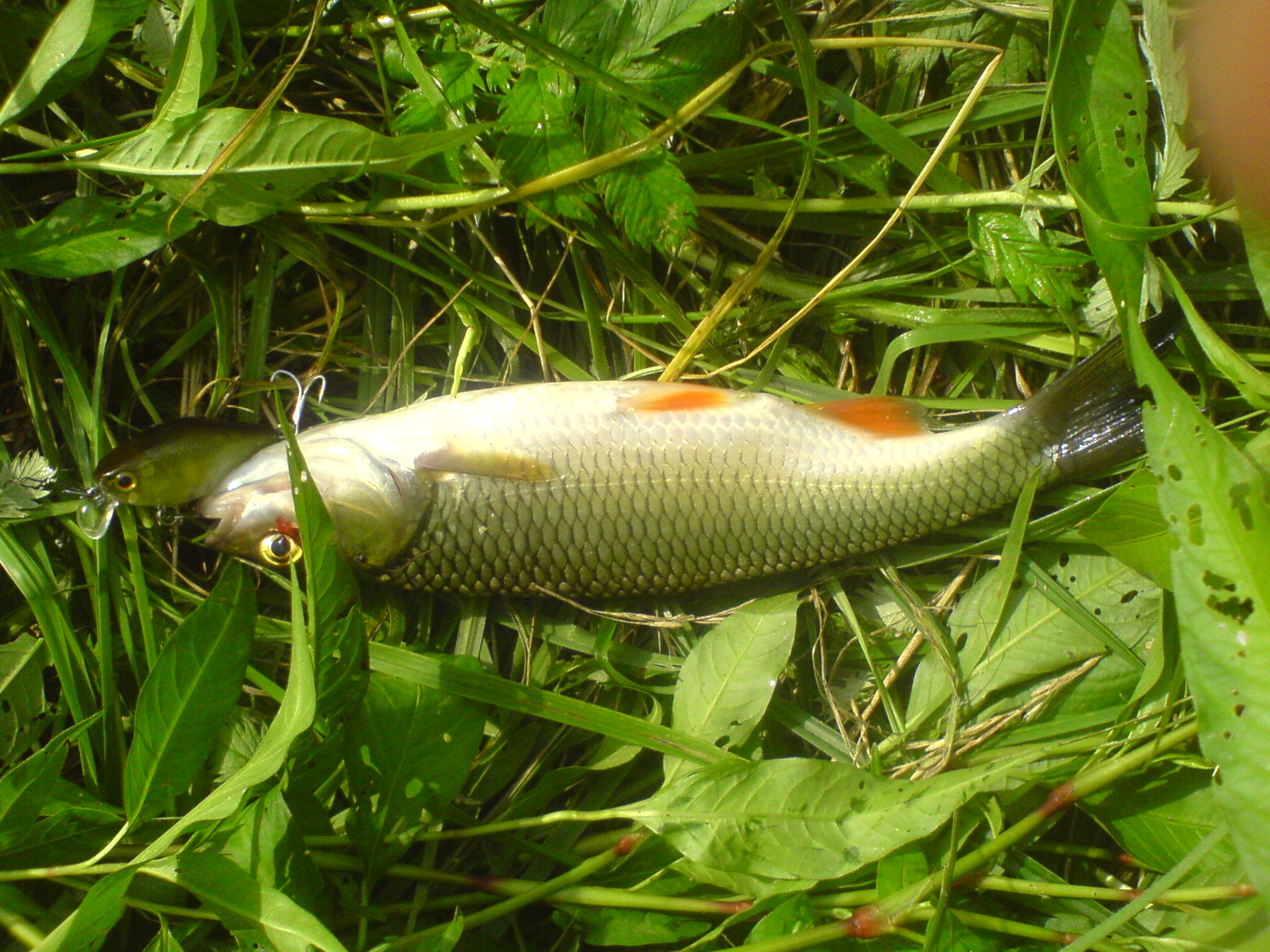 Отож в 6.00 ми вже на Млинівському водосховищі і приступаємо до самої ловлі в районі мосту і біля технікуму, місць для закиду недуже багато по причині високої активності місцевих рибалок, зі слів одного рибака в основному ловилася невелика риба, також багато рибалок ловили з човна.Покупавши десь з годину приманки і немаючи жодного клювання вирішуєм відвідати річку.Приїжаємо на р.Ікву в районі с.Перевередів. На перших закидах біля пішоходного містка беру непоганого окуня на "Silver creek z" від SSV дальше ще один окунець прямо з мосту, також на цю прманку спокусився голавлик на одному із поворотів. Дальше вирішую протестувати приманки які були придбані непередодні, а саме "ION XS" від KASADAKA.Летить як для такого малюка вага 2,1гр. непогано, робоча глубина трохи менша ніж заявлена виробниками, над травою проходить добре, трохи завалюэться на сильній течії, нажаль необловився, але думаю що в цього малюка все попереду. Друга приманка "Frogi Cnk35F" від River2sea, майже поверхнева траву проходить добре а на течії аж вискакує з води за що одразу отримала нову назву "Crazy Frog". Також розловив "L-minnow-33" від Yo-zuri який лежить без діла в мене в коробці вже з весни, взяв окунь. У Віктора два головня в Олексія вісім і один жере. Перекусивши вирішуєм відвідати для себе нове місце, кілька хвилин і ми на новому місці правда дорого недуже добра для їзди але заради рибалки на такі дрибниці можна незважати.Прибувши на місце переходим міст ідем верх по течії місця там справді чудові але нажаль клювання риби небуло, було правда декілька виходів на приманки, але брати нехотіла. Покидавши ще трохи і немаючи жодного результату вирішуєм закінчувати рибалку.