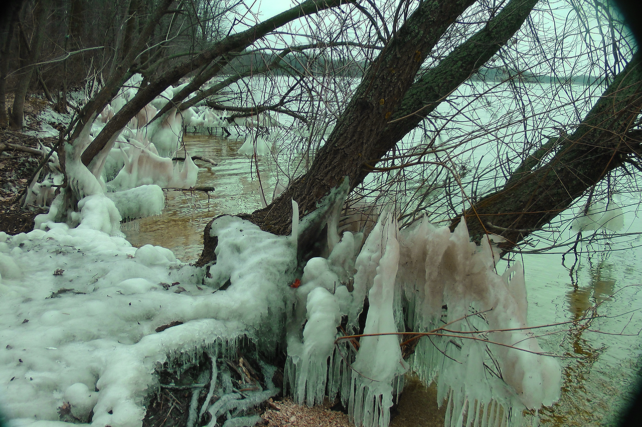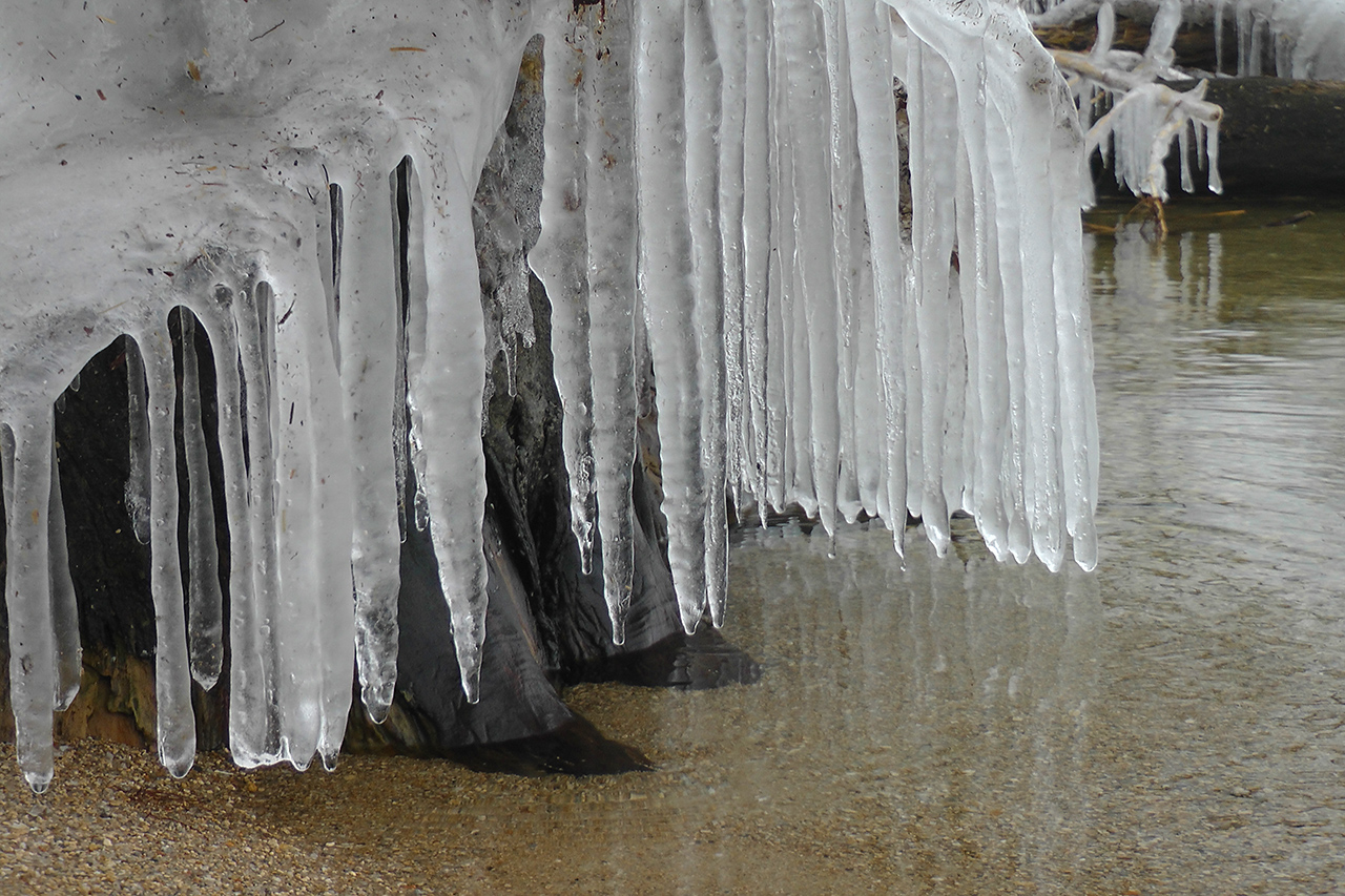 Береговая линия отлично обмерзла, скорее всего из-за резкого похолодания,