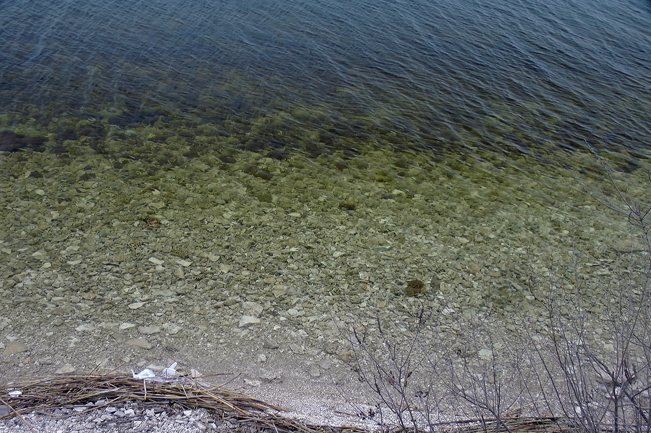 Рыбы и близко видно не было, наверное вода у берега холоднее чем в глубине.