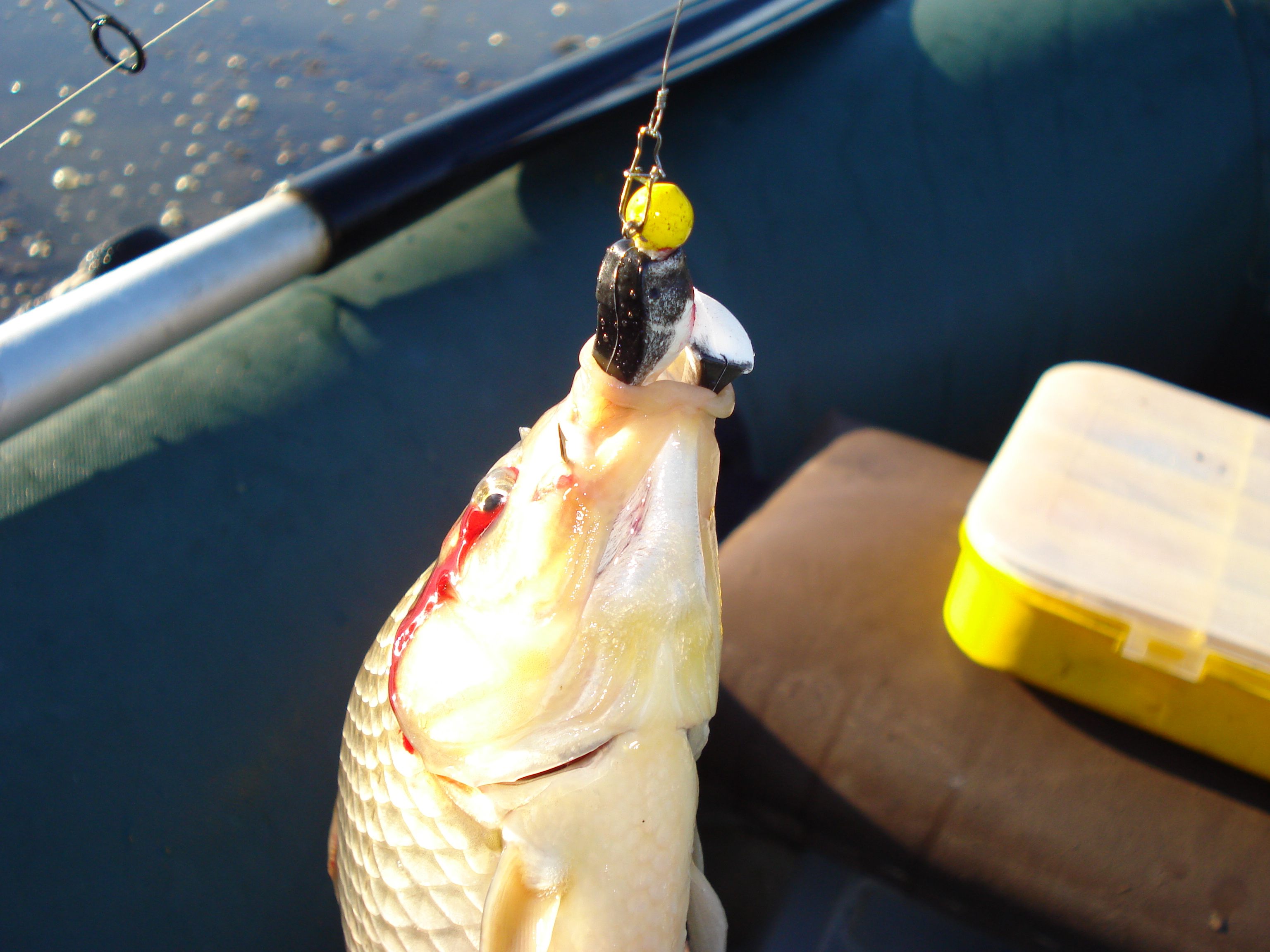 Горынь.Раен мыхнова утро красота река уже в туманах .Выход на реку и весь позитив испорчен все заводи засыпаны сетями и берега пяными браками(настрой ниже плинтуса).Порвал немного сетей,потом стало жалко мотора ушел подальше от мест где есть всякий люд но и тама поклевок небыло.Наконецто дождался или вымучил выпросил поклевку удар под самой лодкой й вот улов.Неповерил ---карась на копыто по всем правилам джыга бешеный карась ,а прошлой осенью на русле 15см твистер взял ерш я был в шоке как смог такой крючек с резиной 10гр головка при падении .карася выкладываю(незнаю как дальше зубатых я ненашел наверно браки реку добьют доконца)