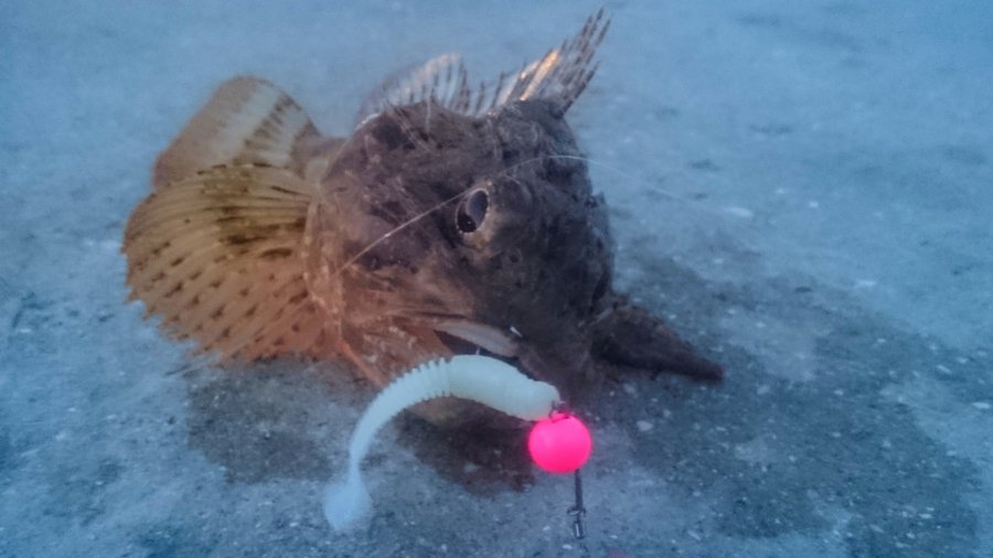 Ездили вечером в Алушту, покупаться на море, заодно и побросал чуть.. Всю вечернюю рыбалку сделала Tioga от Lucky John со светонакопителем. По заявлению производителя, в состав силикона добавили фосфор , светится отлично, слегка зеленоватым свечением и очень долго, в отличие от резины от тех же Jackall и Maria. Светящуюся Tioga скорпена атаковала яростно, практически на каждой проводке. Даже горбыль на неё позарился.. Ставил обычную, без светонакопителя, такого же белого цвета - результата нет. P.S. Свою Nokia забыл дома, прошу прощения за низкое качество фото - it's a Sony..