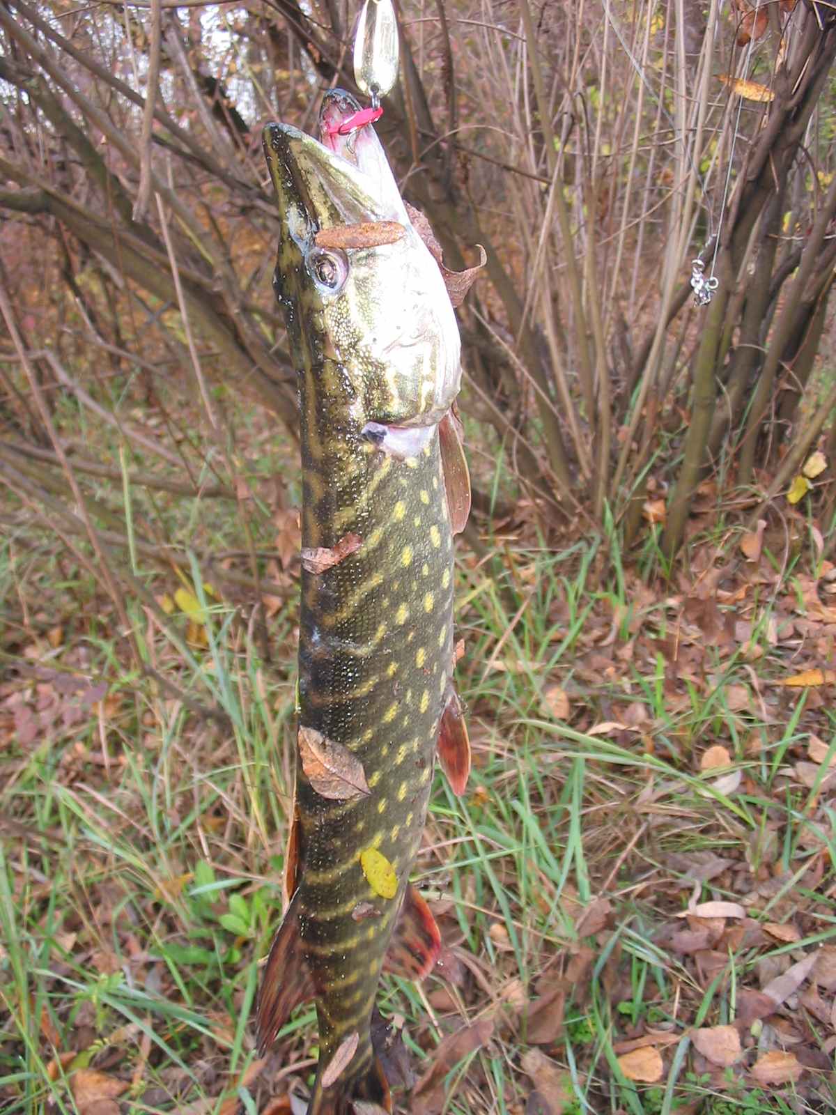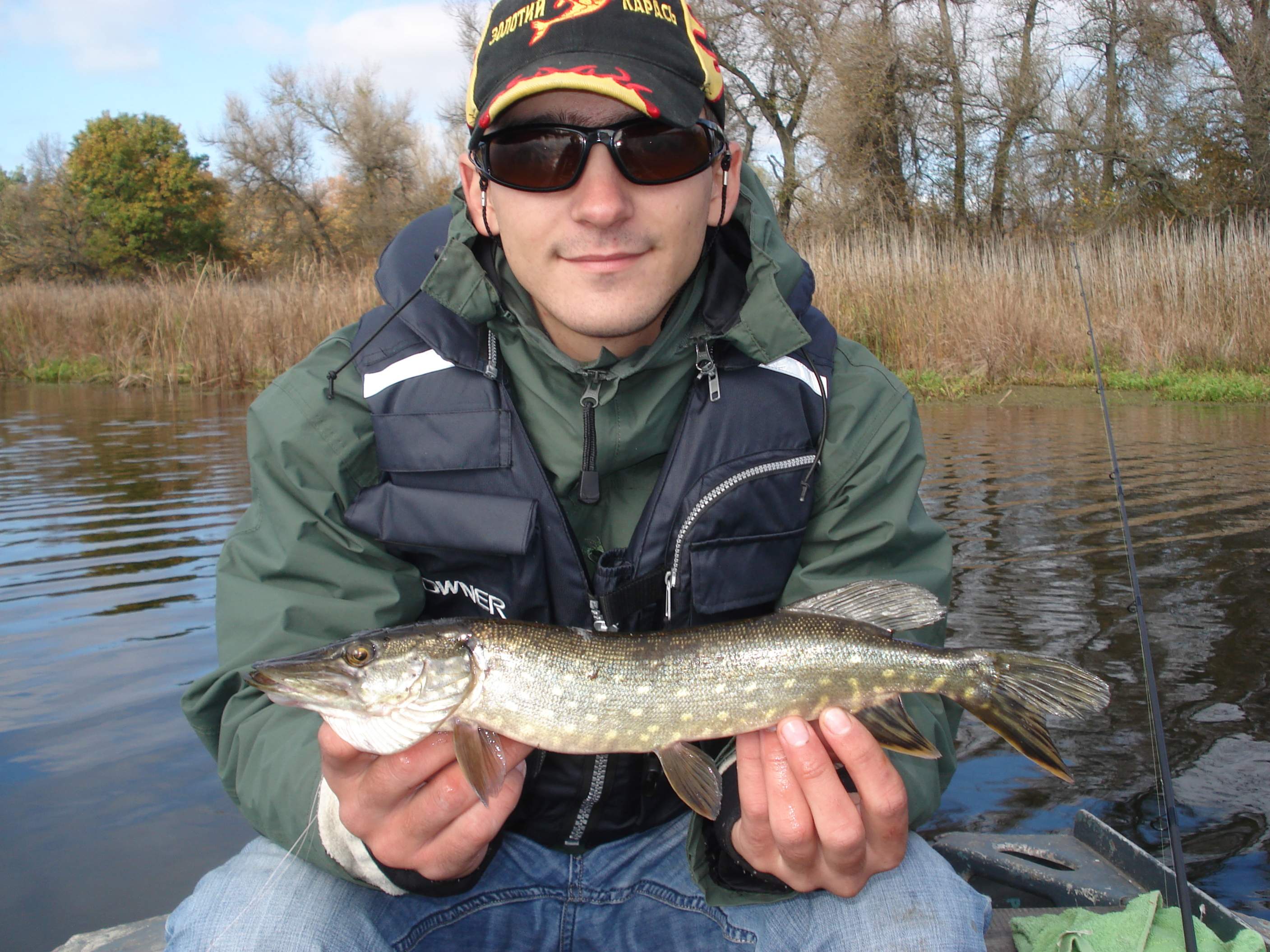 Сегодня 27 10, решил расслабиться и половить щуку с берега. Приехал на остров Зеленый, на болотце, знаю, что там щука есть, правда, самая крупная редко попадается немногим более килограмма. Оказалось воды в этом водоеме очень мало, (еще не зашла с Днепра). Но, раз приехал, нужно ловить. Если долго не расписывать, поймал три шнурка, один грамм 500, остальные совсем маленькие. Был один сход, небольшой щучки и три выхода без удара. Все поймано на маленькую коле балку желтого цвета. Домой рыбы не привез, но удовольствие получил огромное, глубина над травой почти никакая, по этому все происходило у меня на виду. Выход, полевка, или промах, прямо как по телевизору. Плюс к этому прекрасный лес, который перекрашивается практически каждый день в новые цвета, что еще нужно для души. (Перед котом извинился).
