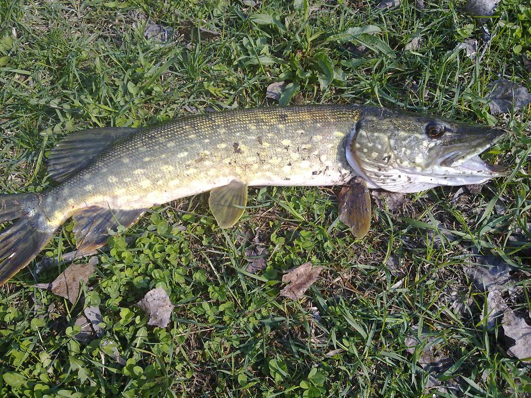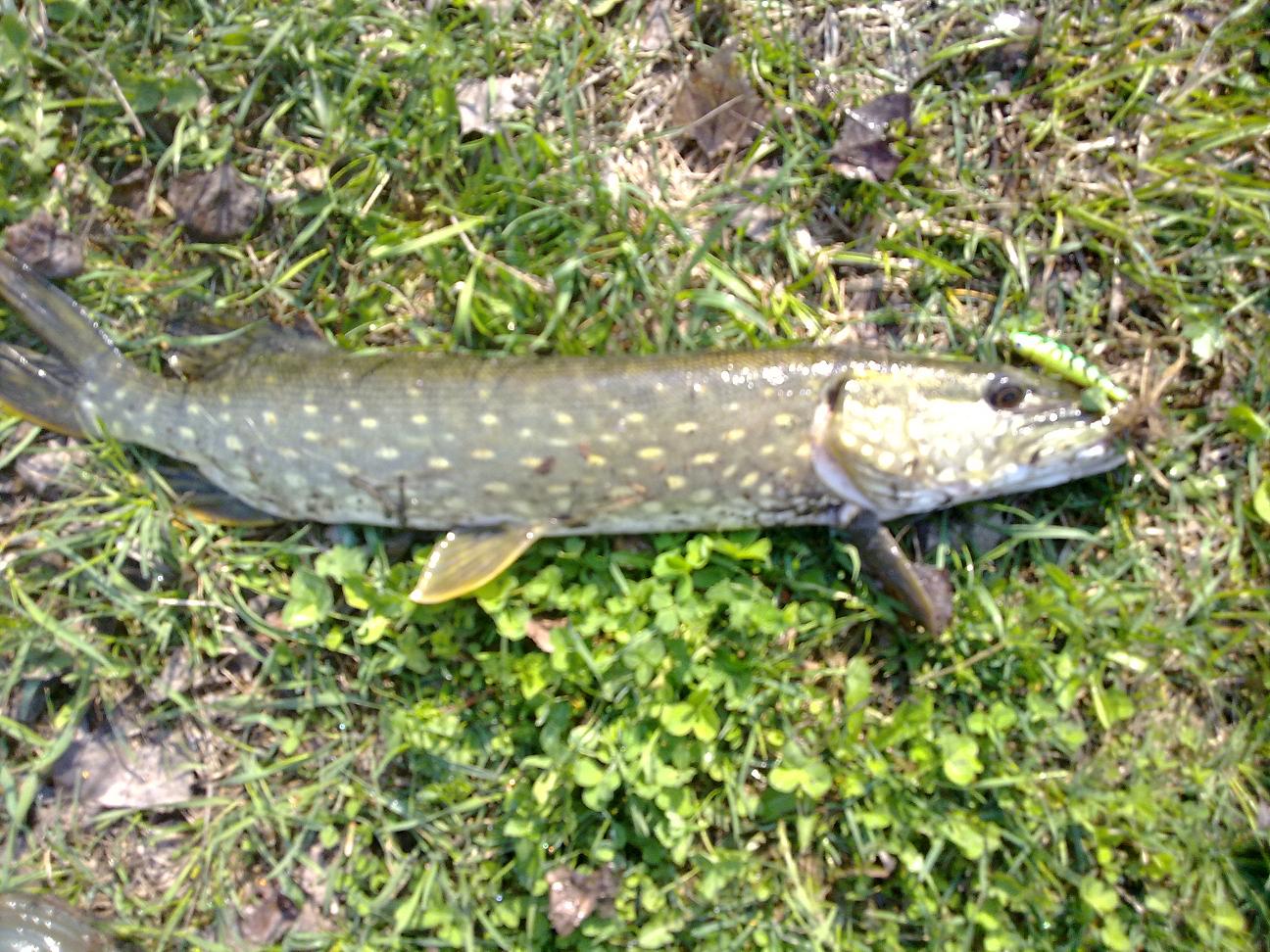 Всем доброго дня! Сегодня утро оказалось свободным и решил рвануть проверить найденные недавно перспективные места и кое-что получилось.Маленькая щучка отозвалась сразу на первой проводке на твич и была отпущена звать родичей постарше.Через часок клюнула родственница (на 1,5 кг) тоже на твич,но пауза сек.5,на уже проверенный воблер салмо стинг. На рыбалочке был с 7.30 до10.30 на дренажном канале на левом берегу под с.Кулеши.