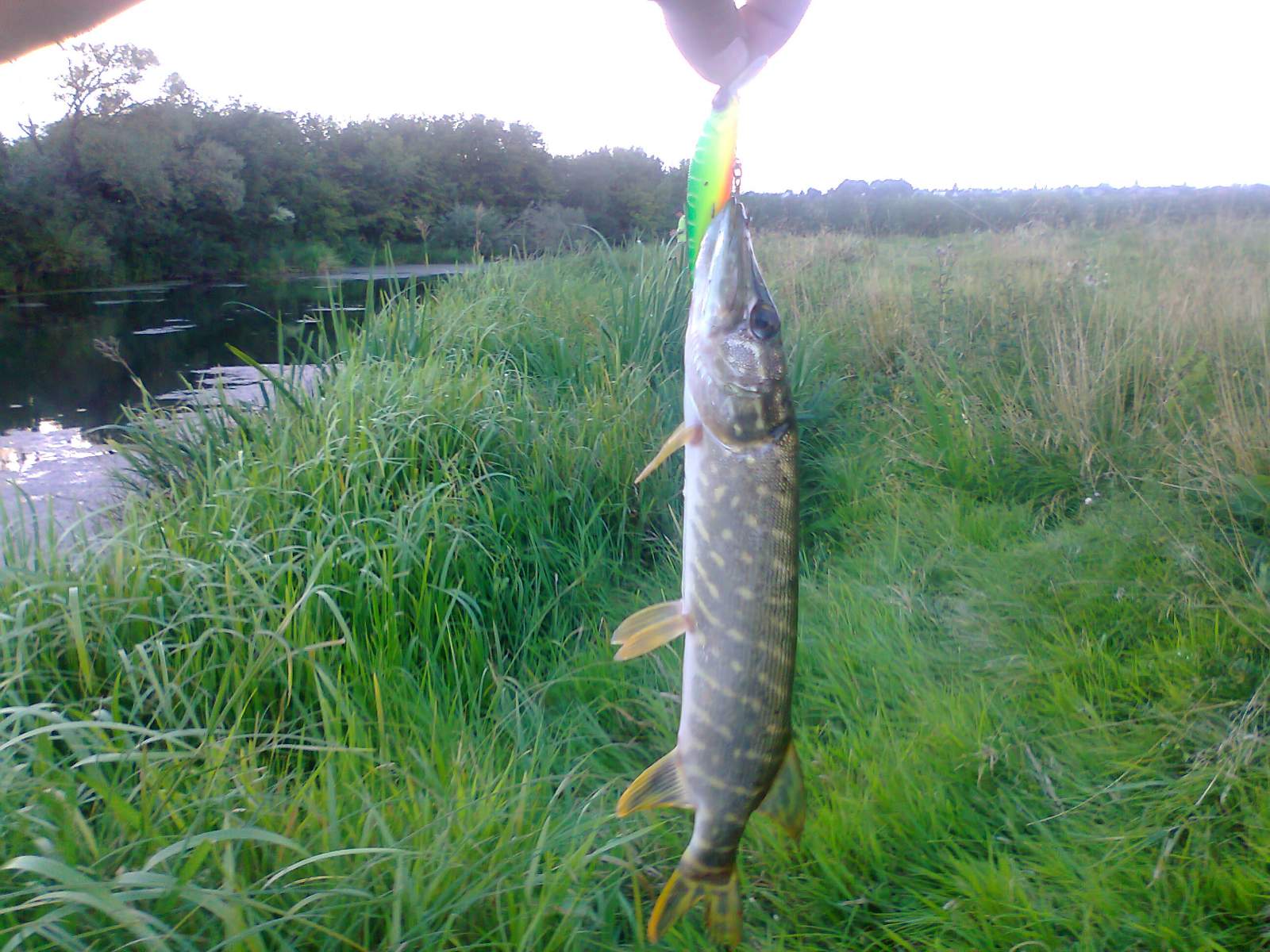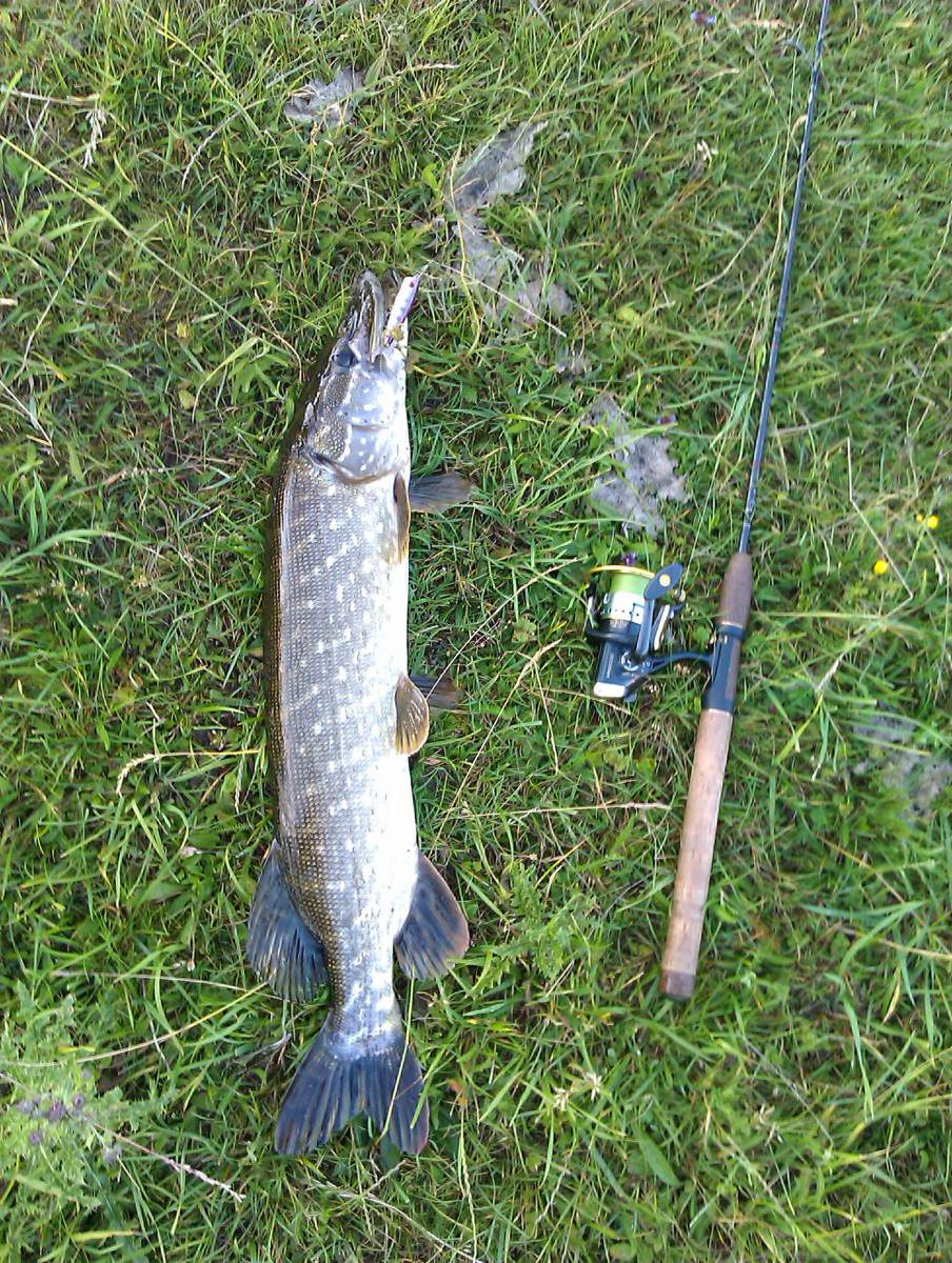 Мої вітаня шановні рибалки . Сьогодні вечерком після роботи вискочили на одну із стариць р.Стир ,майжи вся поверхня вкрита травою , але є вікна в яких можна кидати, отож на "SquadMinow65" від "Jackall" було зловлено двох шнурків, яких відправив покликати маму, мама прийшла в результаті остався без "3D Popper", флюр невитримав. Порибачилиб ще трохи але комарі лютують, так що неможна витримати.
