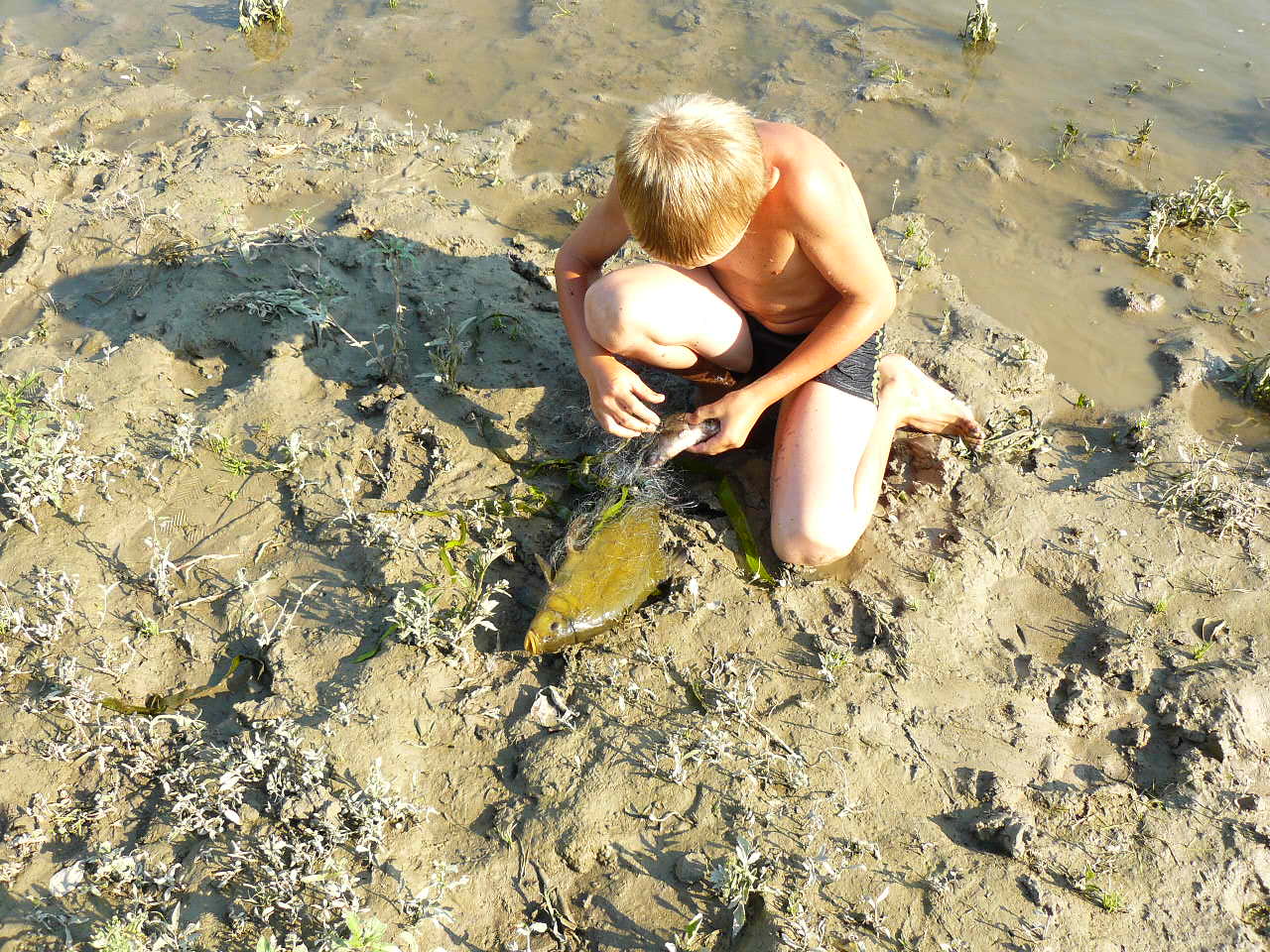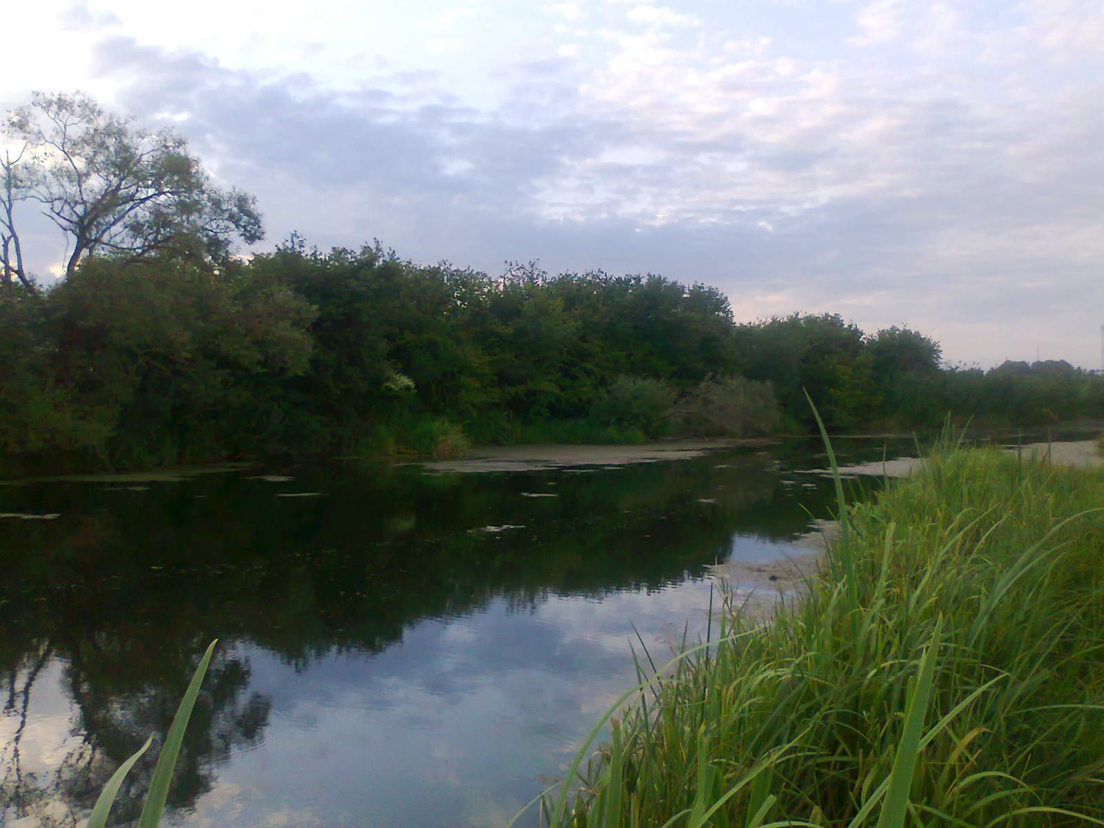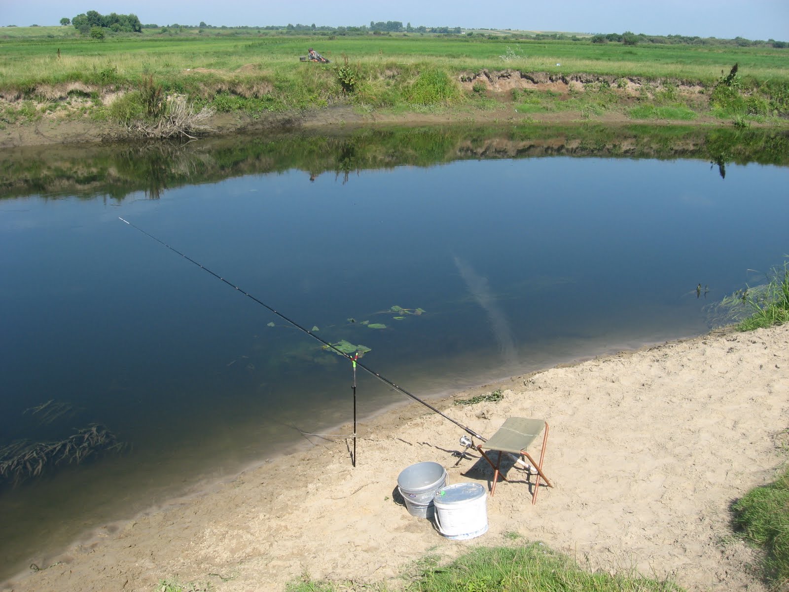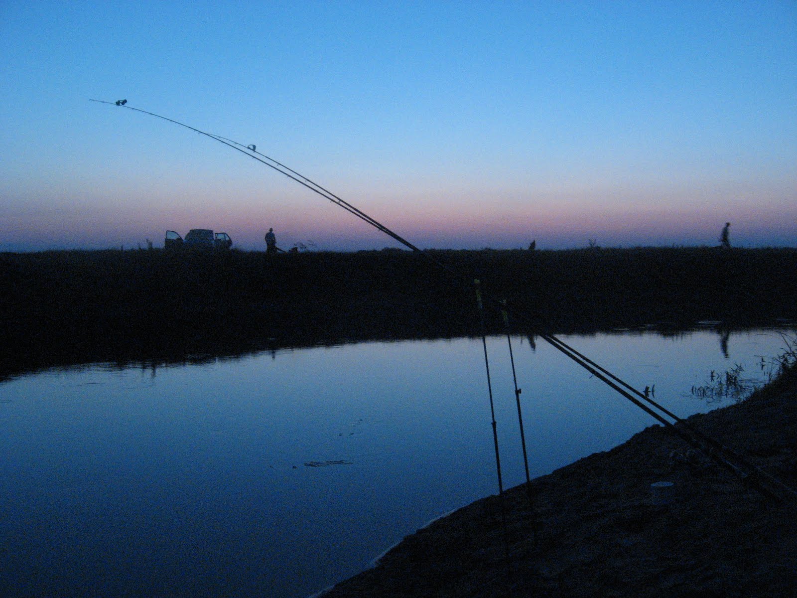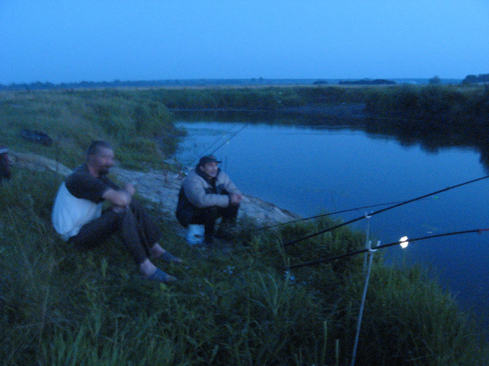 Це виявилось не просто, тому що річка втих місцях має пологі береги повністю заросші якимись кущами, осокою і височенним комишем. Знайшовши більш-менш нормальне місце ми почали ловити. Але кльов був дуже слабеньким. На протилежному березі приїхала машина, і хлопці сказали, що тут пару тижнів назад пройшлись електровудками, після того нічого й не ловиться нормального. Це була остання крапля в нашій чаші терпіння. Малого того, що тут невідомо чи буде клювати сом вночі, так ще й отака халепа. Ми остаточно прийняли рішення повернутись в рідні краї і ловити сомів на ямах.