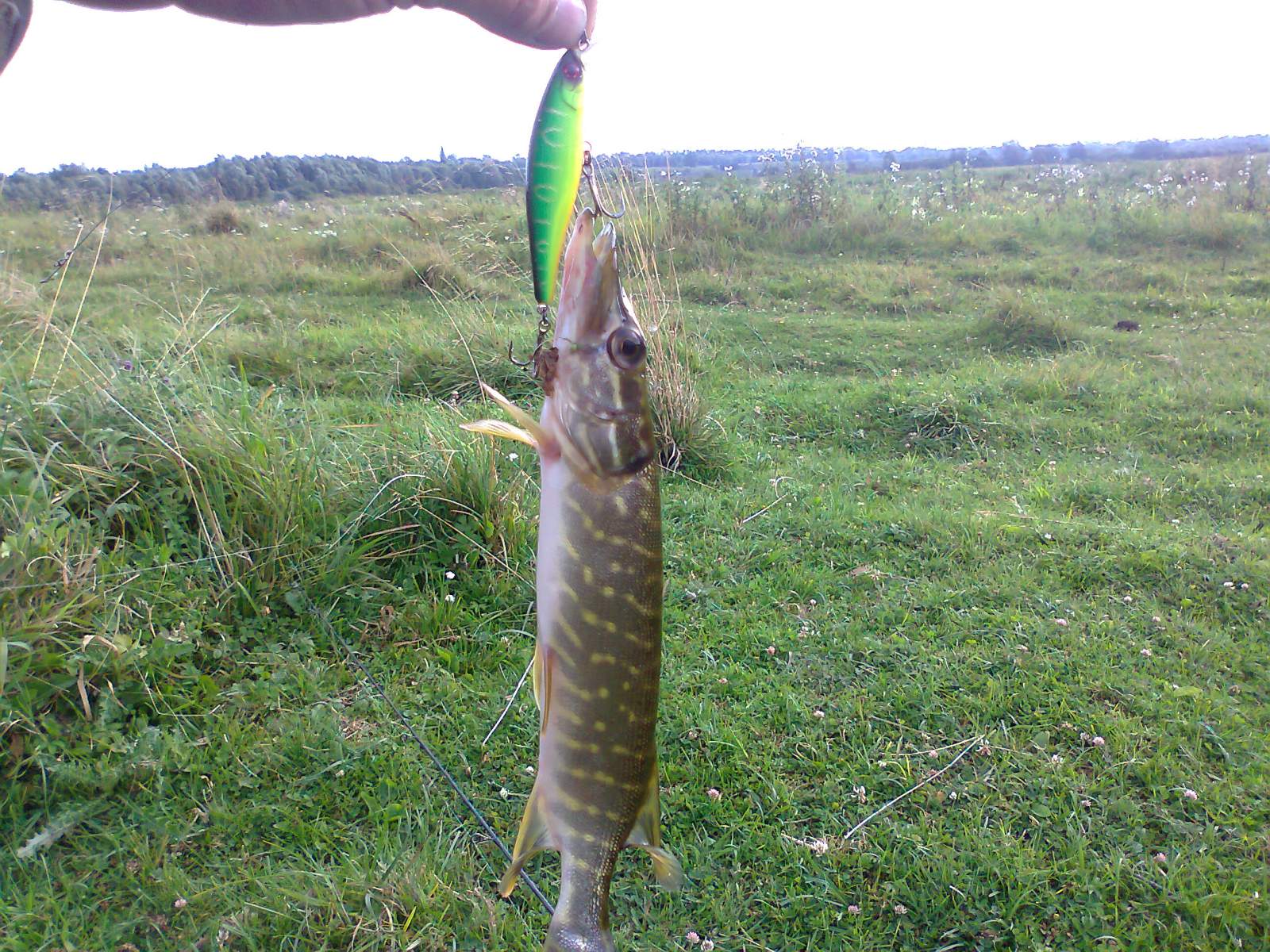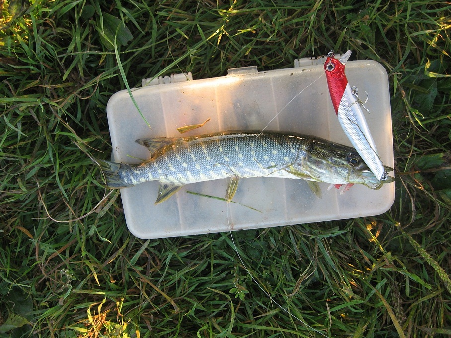 Запізнілий звіт про ранкову вилазку на одну зі стариць. Прибули з друзями на місце о 6 ранку, туман навколо хоч в око стрель, вже за 20 метрів не видно нічого і як виявилось вся сторона де ми ще кілька днів тому вдало (і не дуже) ловили щуку, затягнута ряскою. Прийшлось іти трохи далі. До години сьомої жодних клювань, а вже як сонце трохи почало пригрівати і туман розвіявся, щука почала активізовуватися, було кілька виходів на попери, але активність була не такою як хотілося б нам. Ще за годинку полоскання приманок, з-поміж латаття вдалося таки витягнути залікову щучку.