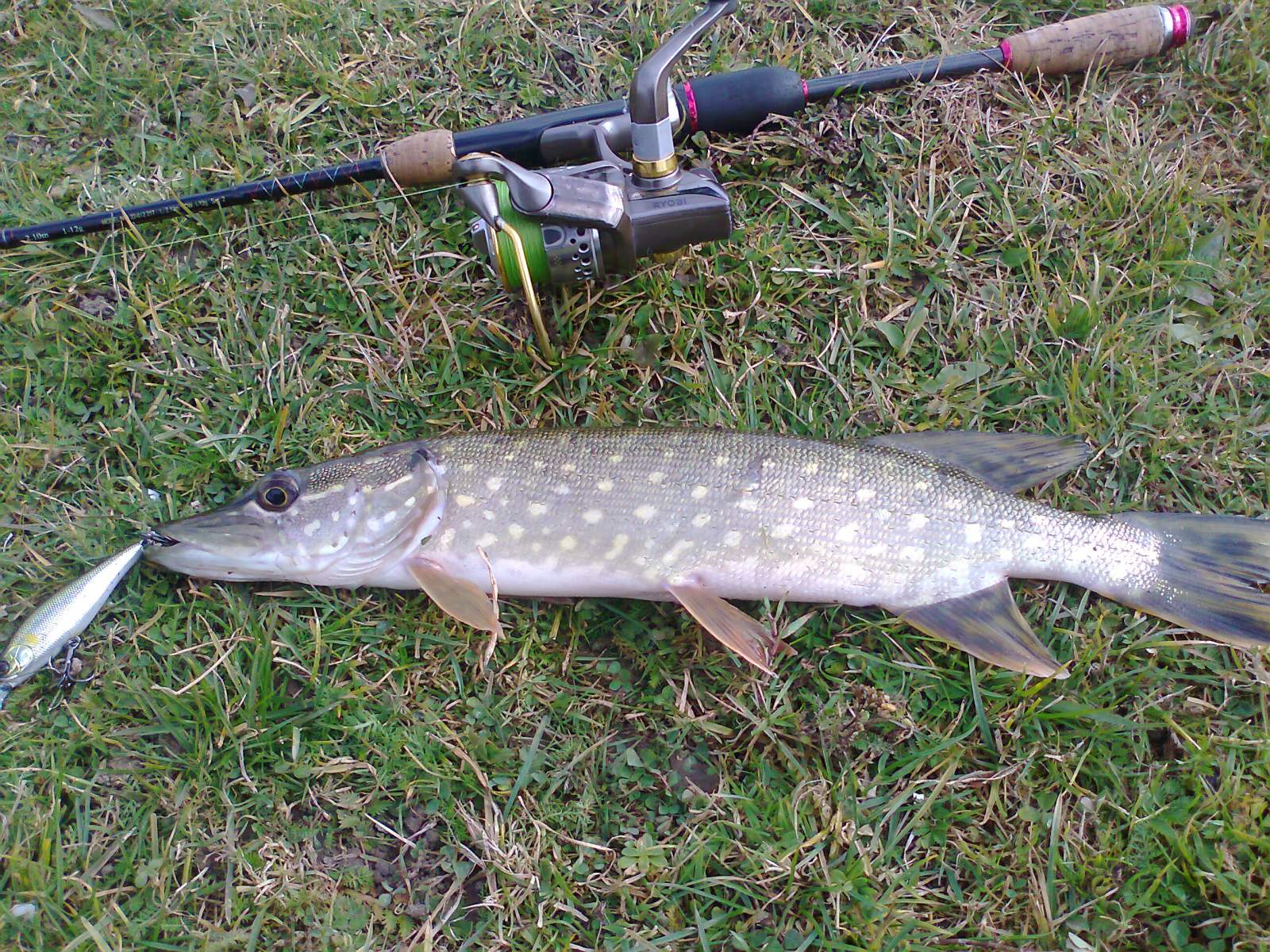 Ловив сьогодні на стариці біля с.Підгайці. Вода дуже прозора. Щука активності не проявляла. Поки не поставив Ескадру від Евергріна і поводок з 0,5 флюра. Закидав в "коридори" між лататтям, воблер проводив повільно, м"яким твічингом, з частими паузами до 5 секунд. Бачив п"ять виходів, щука відвертала в останній момент перед самим воблером. Але дві вдалося вговорити. Черговий вихід на паузі і "шнурок" не відвернув, а схопив Ескадру і потянув в латаття, але "приземлився" на березі. Слідуючу покльвку не бачив, а просто відчув "вис", який "ожив" і потянув воблер в сторону по дузі на метрів десять. Вже не далеко від берега досить непогана щука вийшла на поверхню, потім з останніх сил стягнула з фрикціону пару метрів лєски і все таки здалась.