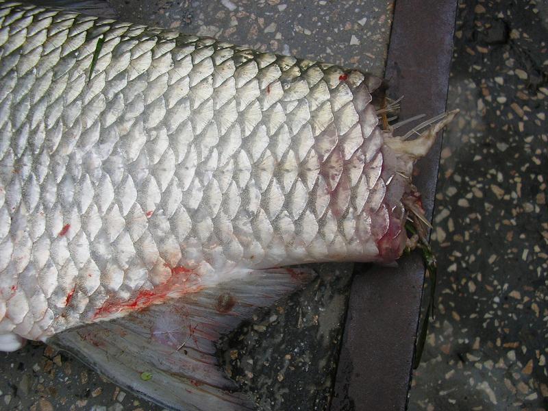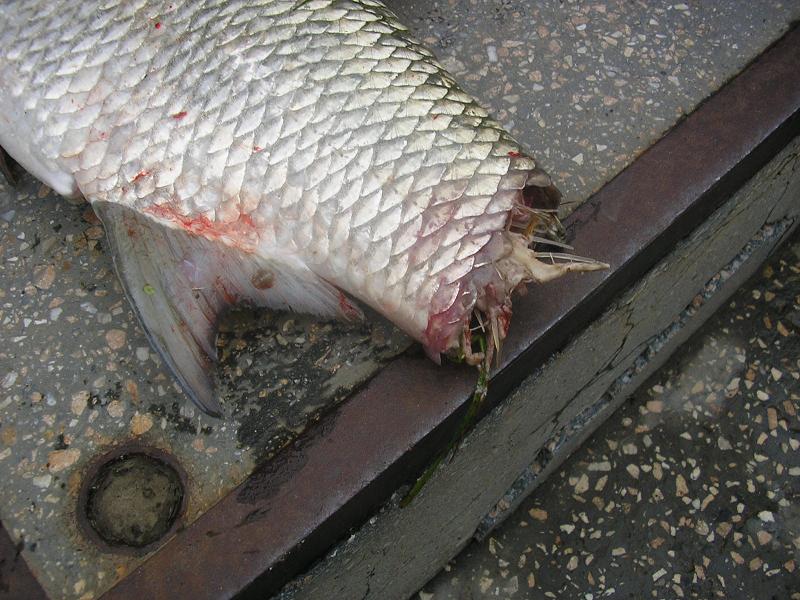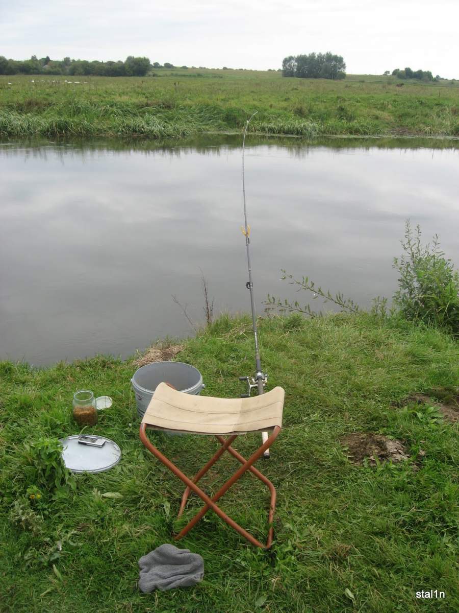 Поряд зі мною ловив вудкою якийсь чоловік з Луцька, на варену пшиницю. Він сказав, що вода в річці у порівнянні з минулим тиженм сильно впала, на минулих вихідних він на цьому ж місці виловив двох кілограмових головнів. А сьогодні дуже все сумно. Він скрутився і забрався геть.