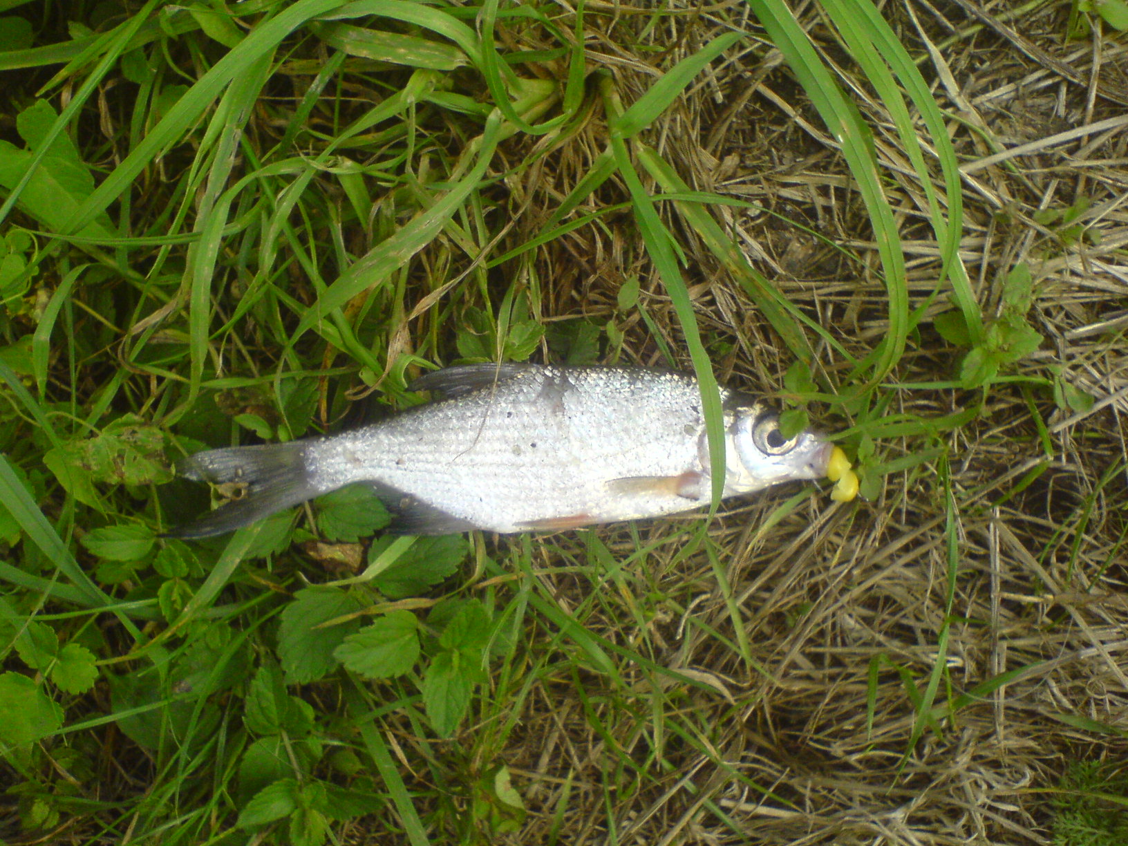 Вирішив половити білу рибу наживка консервована кукурудза, опариш, і морожена вишня для головня, нажаль вишня цього разу непрацювала, на кукурудзу був зловлений невеличкий головань і мала густира, трохи більша густира злакомилася на опариш.