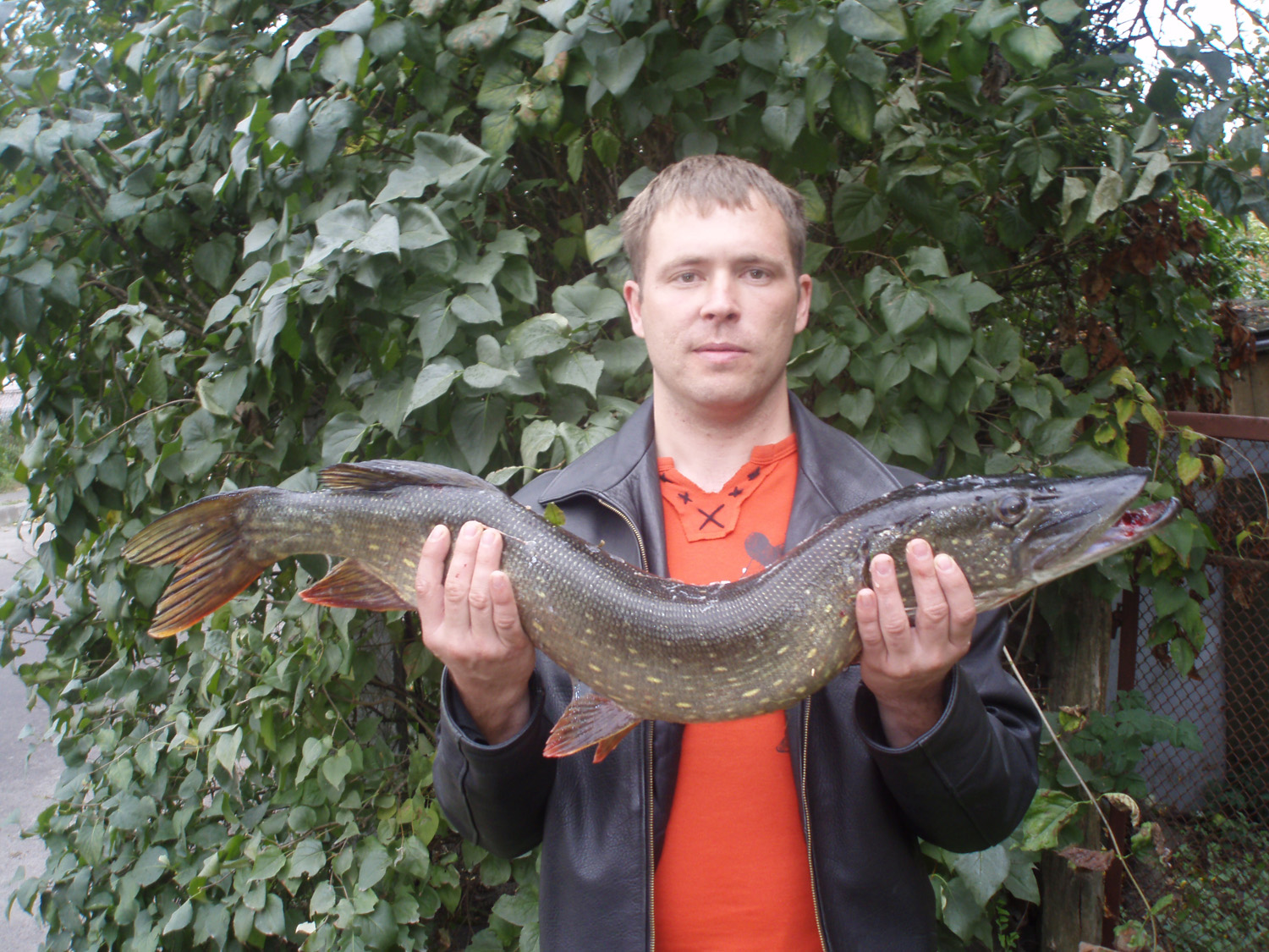 Щука 4кг 300гр, длиной ровно 90см была поймана с берега 13.09.2008 около 13.00 (при среднем ветре и пасмурной погоде) в Ратновском р-не Волынской области (название озера к сожалению не знаю - их там много). Спиннинг WINNER 21110 DIAMOND Ultra Fast Light UFL 270 Spin IM 12S High modulus carbon Length - 2 Om C.W. 5-20g. Катушка "Ryobi Excia MX300". Плетёный шнур "Stren Super Braid" 0,14мм. Приманка - колебалка копия Mepps Syclop,жёлтого цвета. (в пасти у трофея не она - а оригинал приобретённый позже) . Желаю всем такой же, ато и поболее ! :142::predator: