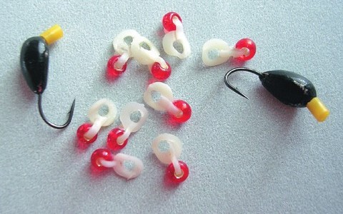 Оптимальным будет такое соотношение веса бисера к сопротивлению крыла, чтобы даже при малейшем движении кивка серьга заводилась с пол-оборота. Теоретически не представляю, как это вычислить, пока получается только опытным путем. Устанавливаем одно звено на крючок, берем пальцами мормышку, даже неподвижная рука все равно передает микроколебания, и звено серьги при этом должно дрожать.
