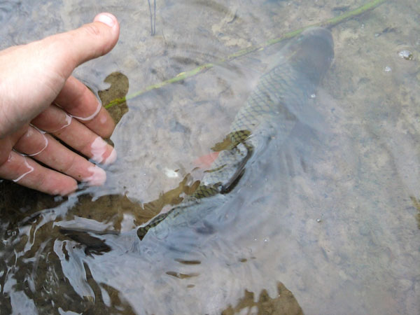 Был на реке Псёл в районе КРЗ (сахарный завод, "тепляк"). Начал с места слива тёплой воды (лет 20-ть назад сливали, а после я там ине был...). На 5-ой проводке (Salmo Slider) у самого берега вышла щука на вид ~1,5 кг, в 10 см. от приманки, увидев меня (ИМХО) резко развернулась (зрелищный прыжок с фонтаном брызг) и ушла... Курил минут 10-ть, тряслись руки...:) Увиденное придало азарта... Топтался на этом месте минут 30-ть, менял приманки... не уговорил. :(