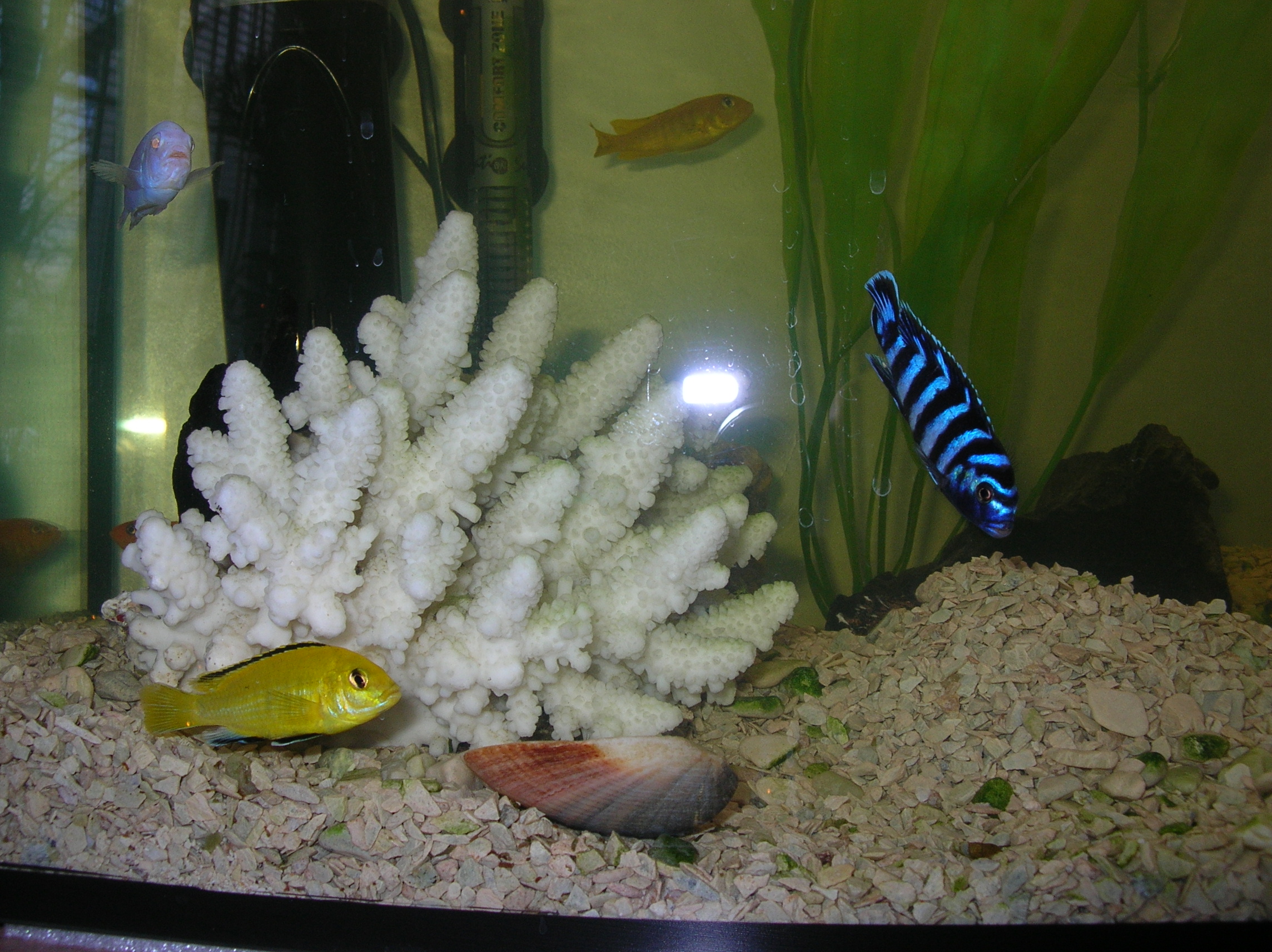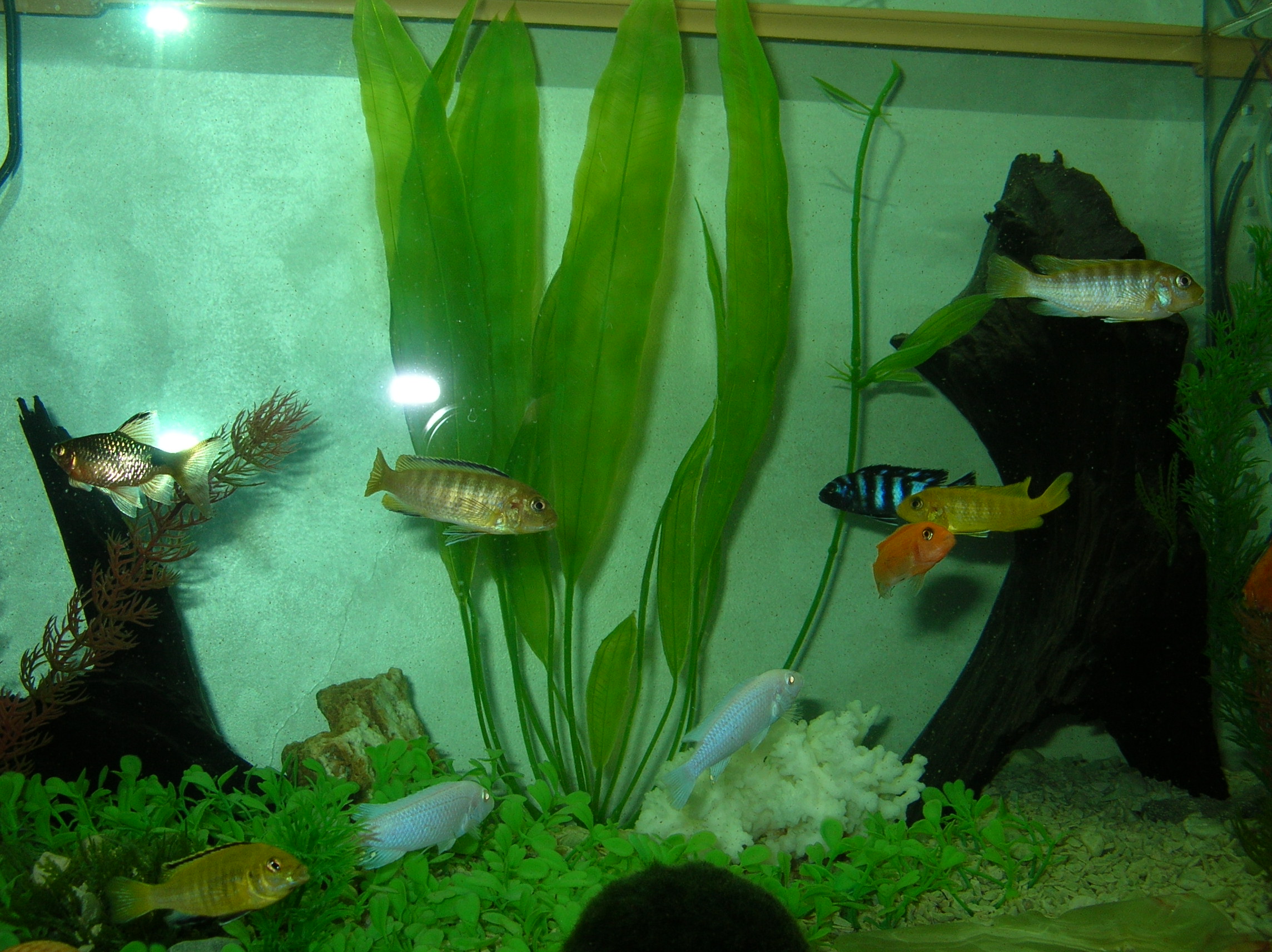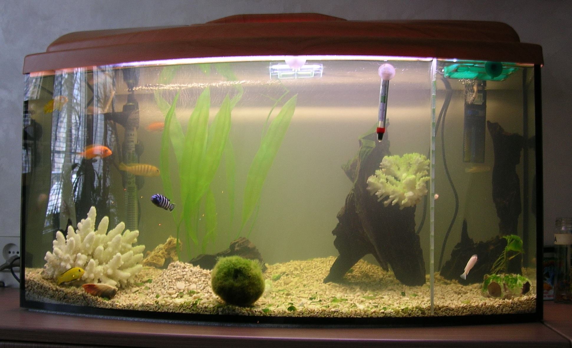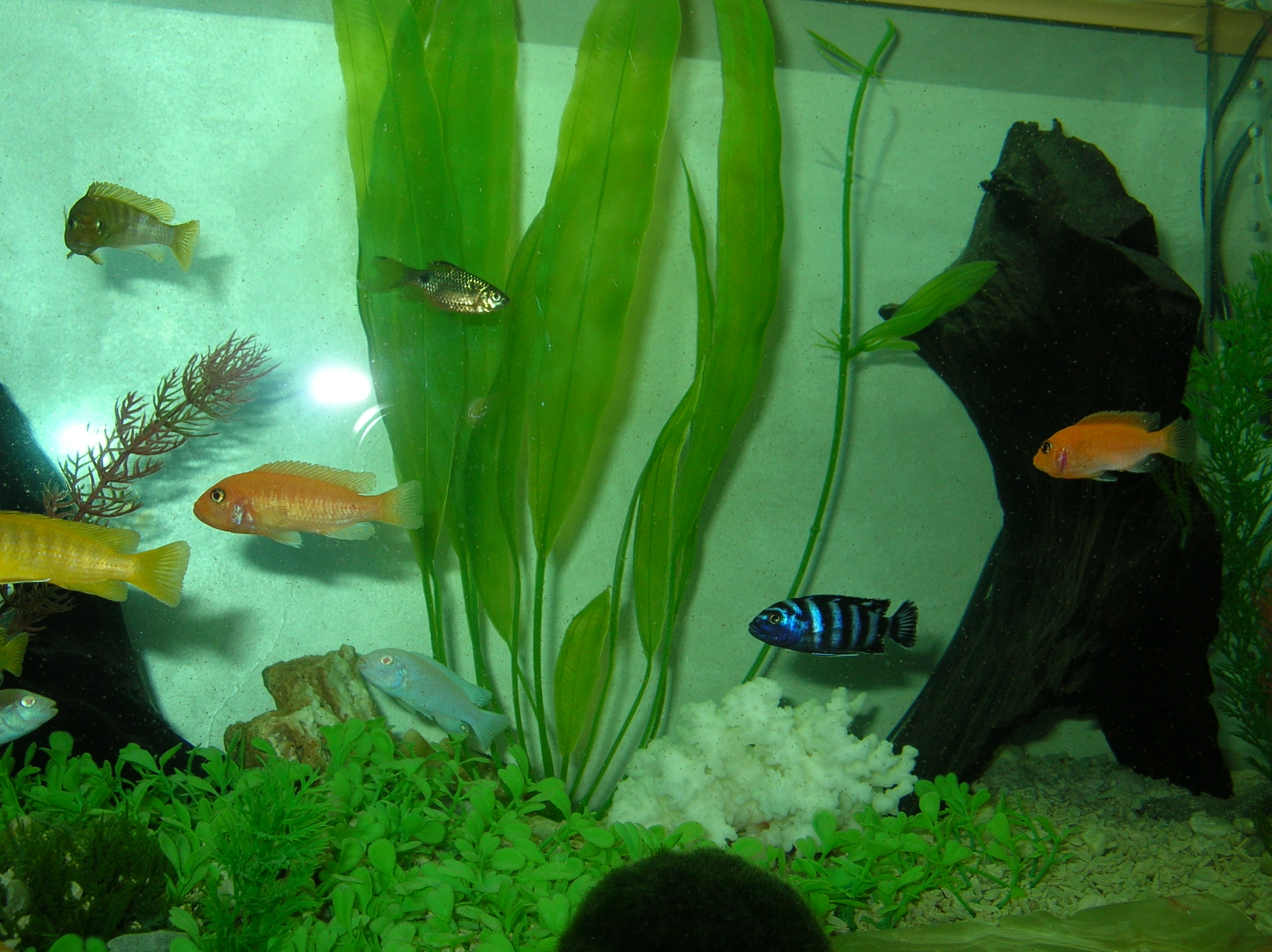 Вот мой водоем 120л. Рыбы- только цихлиды.
