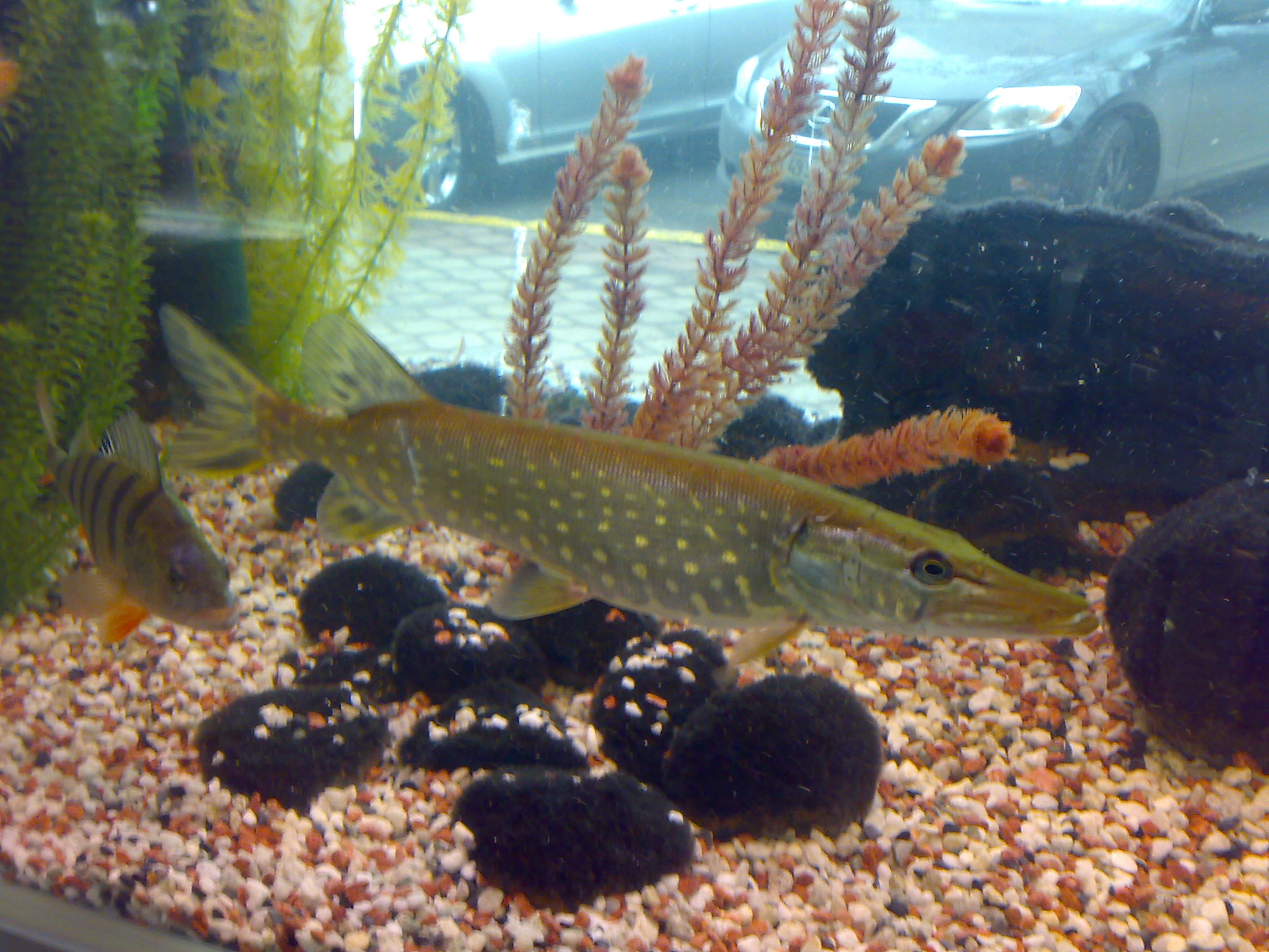 ракурс окуня как-то вышел не правильный ....окунек чуть меньше половины щуки. продавцы на щуке воблеры проверяют (перед этим снимают тройники)