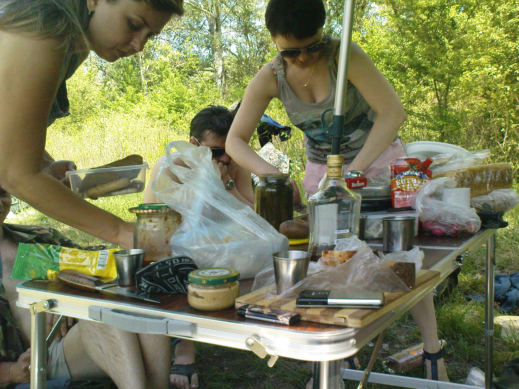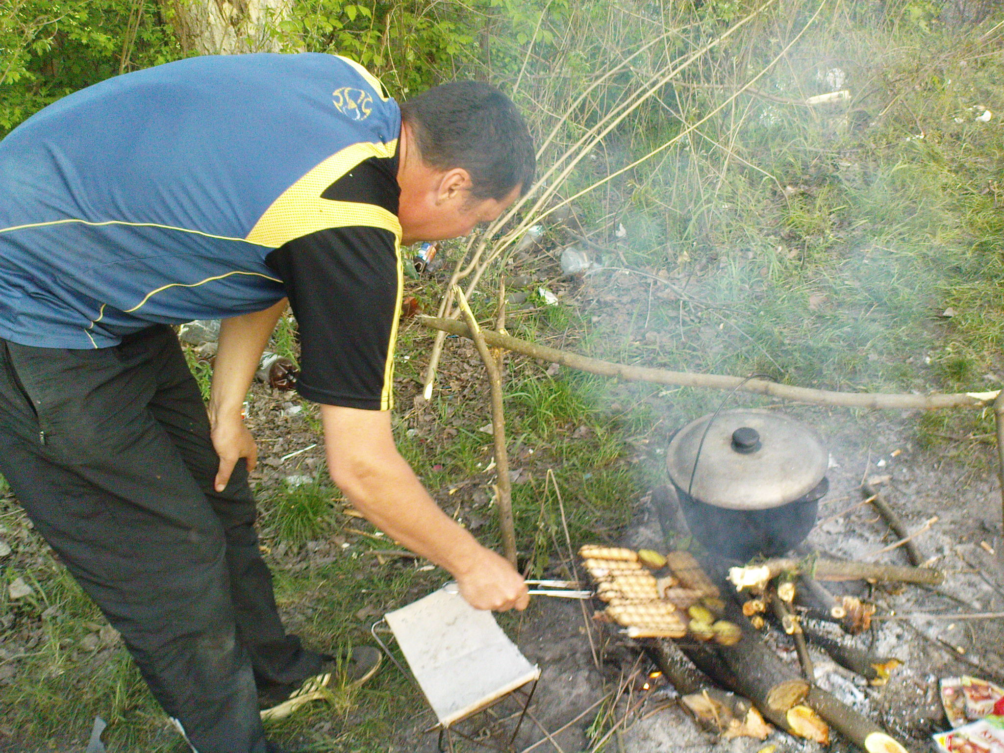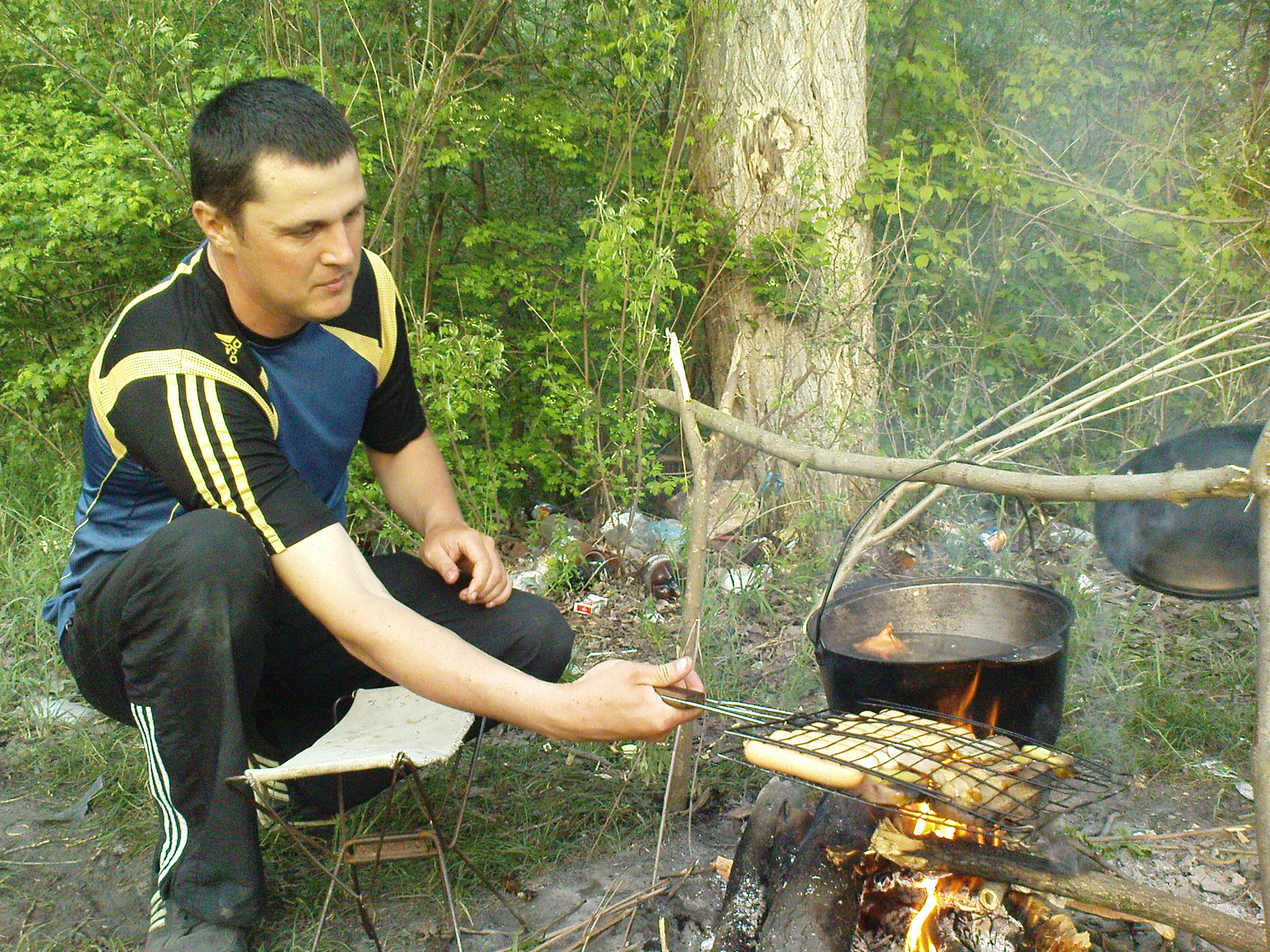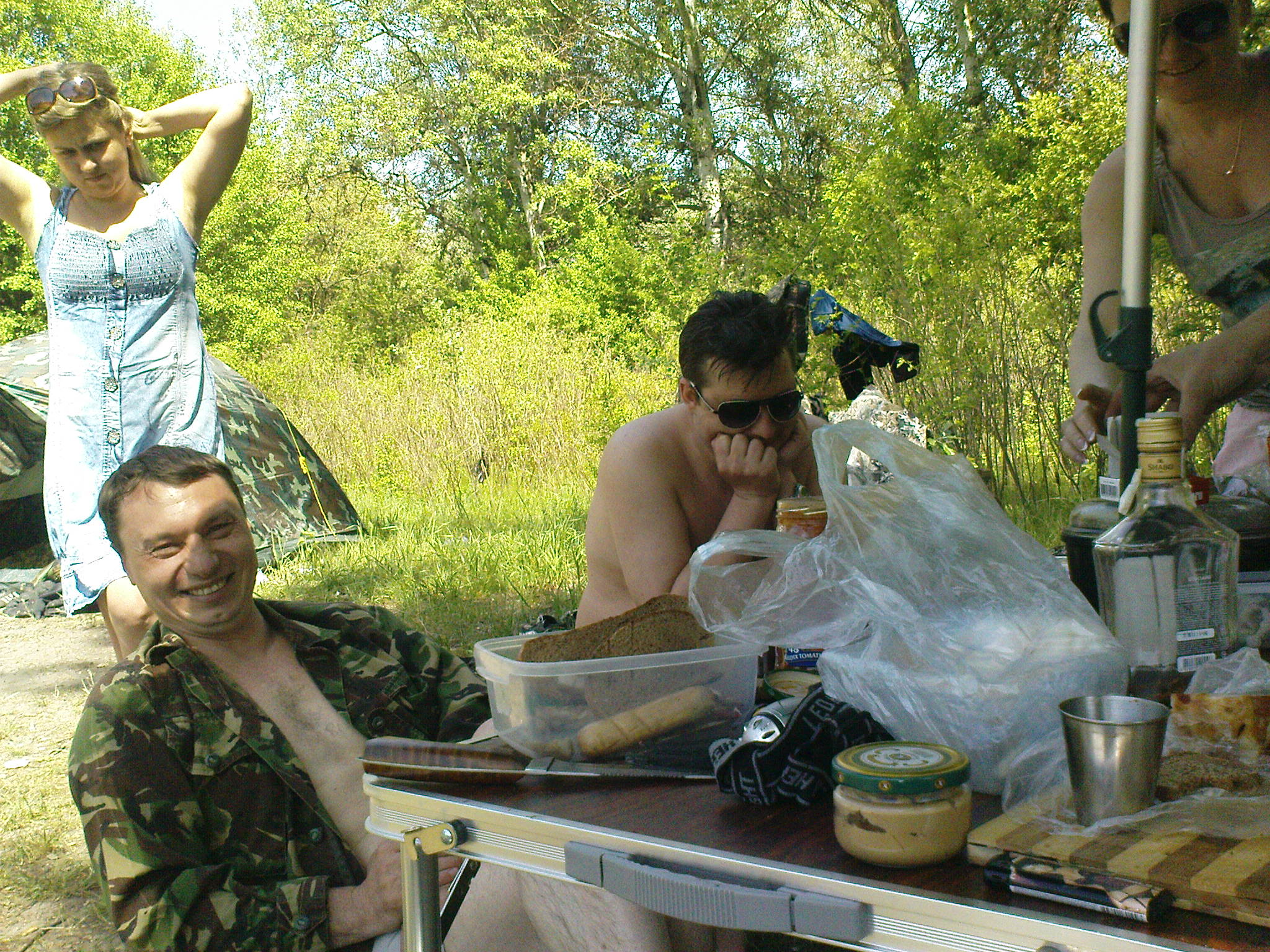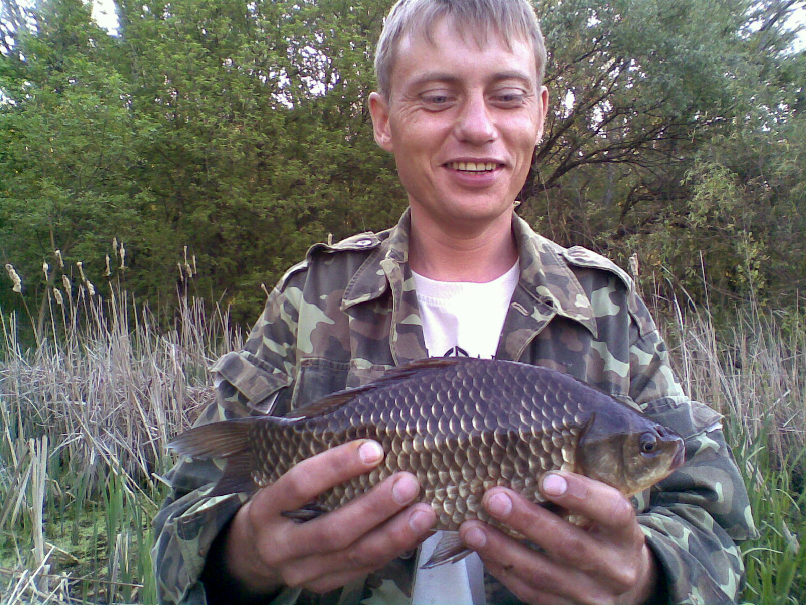 Пять выходных! Т.к. домашние дела ни кто не отменял, то первые три выходных занимался по хозяйству, хотя и вырвался на псел на пару часиков на разведку. Карась начал отзываться. И вот на 1 мая выезжаем с Женей (Моторатором) и Саней (Трианоном) в Щербаки за жд мост. Приехали еще засветло, обновили Сашин столик – классная вэщ-щ-щ! Как начало светать стали настраивать снасти. В месте лова Псел широченький, поэтому беру не пикер, а свой любимый фидерок микадо УВ, в длине 3,60 и тест120 грамм. Промеряю дно, уклон идет под наш берег, Посредине нахожу нервность, глубина около 3 м. Кормлю запаренной макухой + ФД карп микс, наживка опарыш, красный червь. Первым отличился Женя и вот у него уже в садке красуется карась грамм 400. Потом поклевка у меня и также карась появляется в моем активе. Третьим отличился Саша, у него ловились в основном трофее под кило. Поклевки хоть и не частые, караси очень красивые, так же в прилове попадалась густера, плотва и краснопер. К вечеру подтягивается Юра Гаврила и Олег Коротя. И тут у меня случается поклевка с провисанием шнура. Не может быть!!! Да, это он… ЛЯЩЩЩ!!!!!. Лещик затянул на 1040 грамм. Вечером была уха и задушевные разговоры. Ночью ставил снасть на сома с поплавком, но сом не отозвался.