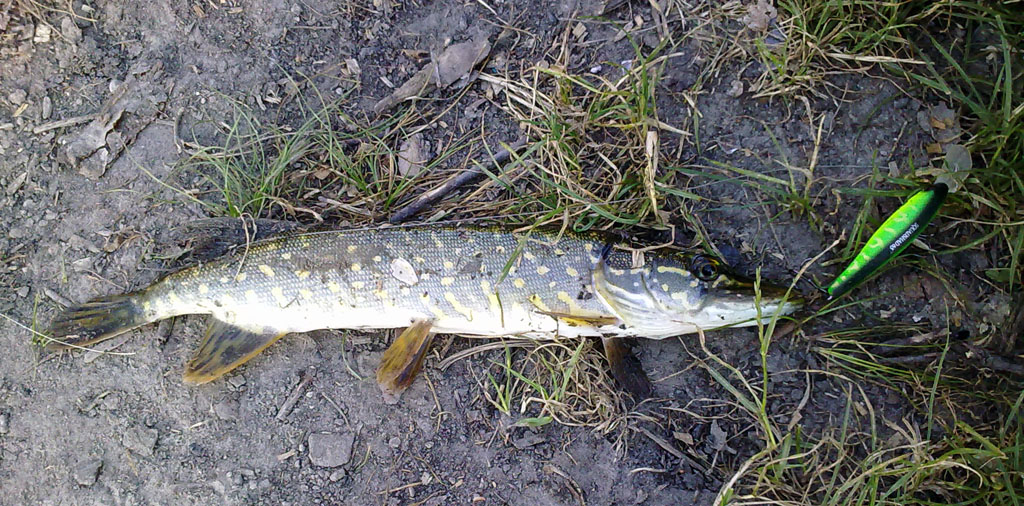 Всем доброго времени суток!!!Сегодня с семъей выехал в район ж\д моста...,супруга загорала, ну а я решил порыбачить...Не был в этих местах ровно три года...Тролинговал..., работал в бросок на перекатах...В итоге,- на дорожку одна небольшая щучка, как всегда на мою знаменитую ДТшку, 5-ти метрового заглубления! И все...!!!ни одного тычка больше!!!