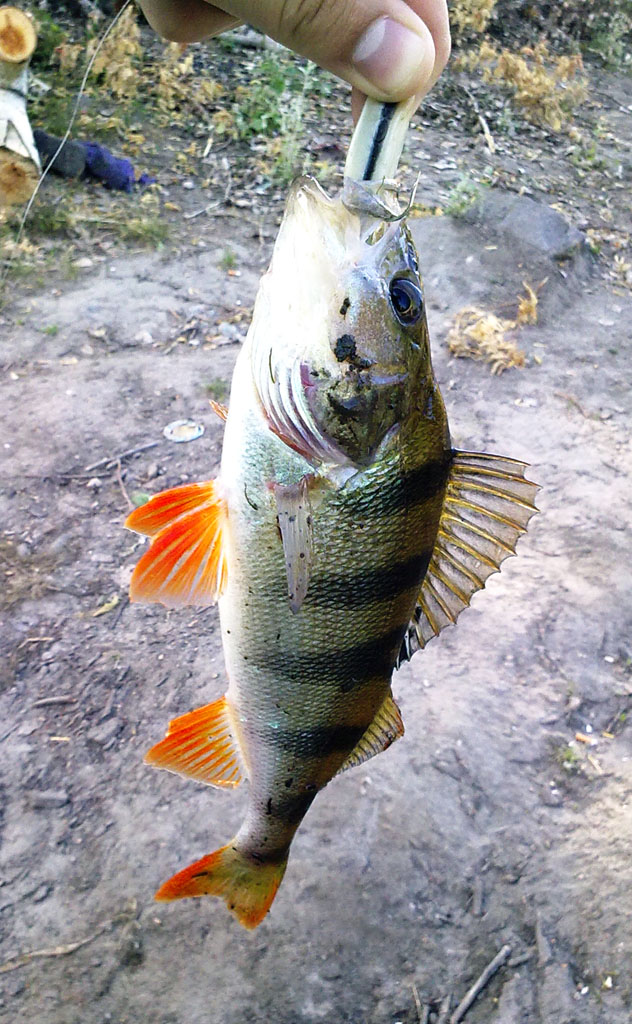 30.06.2012 Щербаки, комсомольская сторона. Возле разрушенного моста 2 щупака: один поменьше на Йо-Зури Хардкор до 1м., второй поболее на Джакал Сквадшед, но оба не зачет - в воду. Перешел к ж/д мосту, в заводе - два окуня, стал за ж/д мост и кидал вдоль быка еще трех добыл.