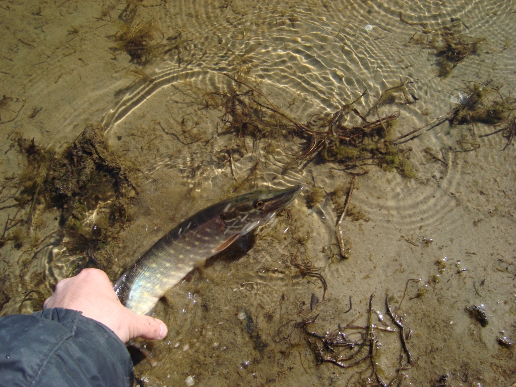 С утра пробовал ловить на отводной , на всякую съедобку - тишина. Ни смена приманки, ни разнообразные виды проводки не принесли хотя бы тычка. Ближе к обеду решил попробовать половить воблером. Единственный воблер который можно было бросать этим удилищем оказался ю-зурик л-минноу 44. Прополоскал его во всех перспективных местах, но рультат также нулевой, видимо щука наелась утром, а другой рыбы там не было, или же она была не активна.