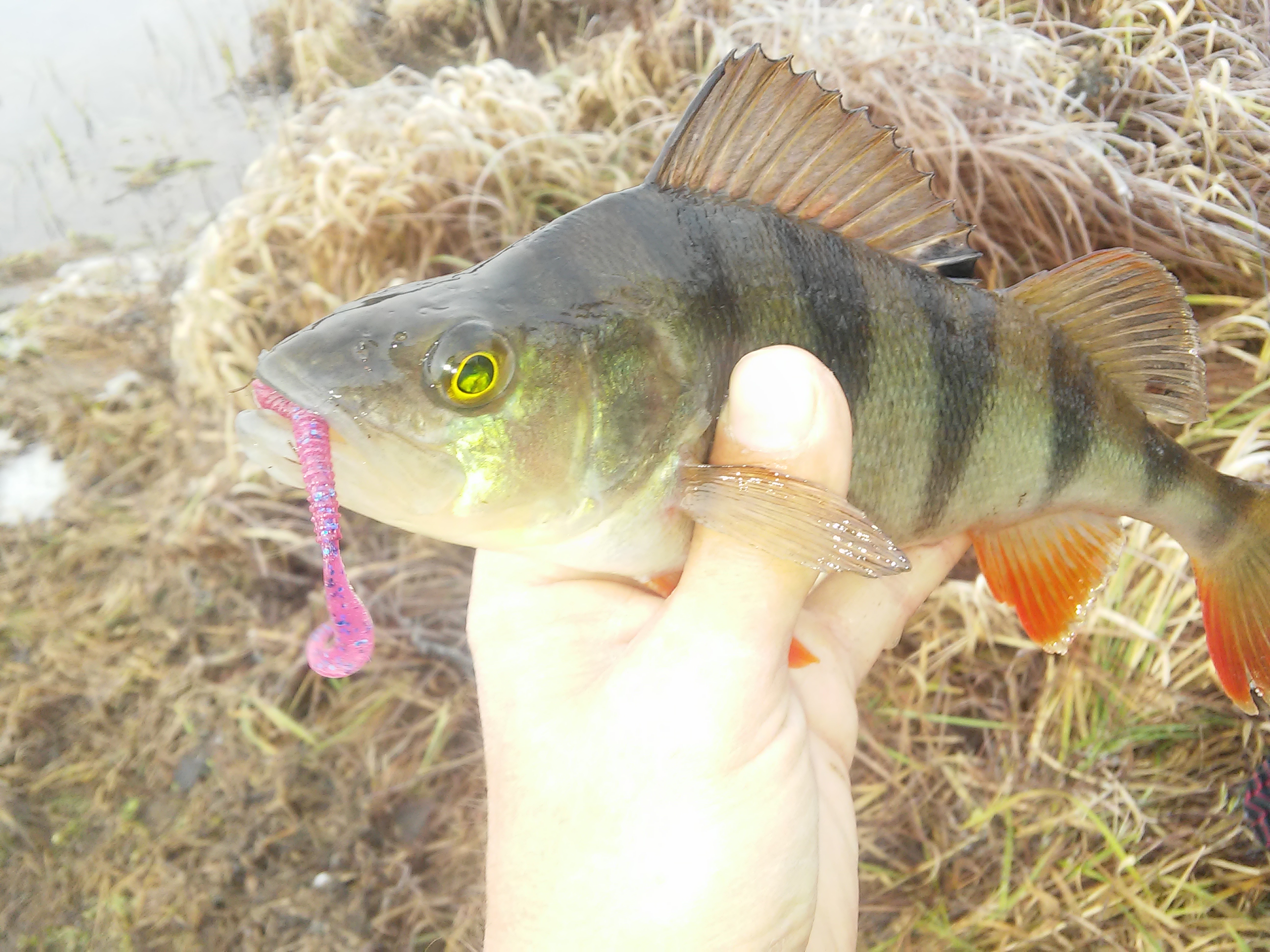 Сегодня с утра терзали смутные сомнения,ехать или не ехать!Температура плюсовая,но обещали ветер,все таки ЕХАТЬ победило.Так как по погоде в ближайшее время одни минуса,может уже скоро выйдем на лед,ну а пока спининг до упора, пока будет жидкая вода.Приехал на рыбное место не рано,около 8-ми,хотя нужно было по раньше,хороший клев был до 10-30.Сегодня поклевки были дерзкие,типа отдай спин,окунь более-менее жирный,но оно и понятно,у каждого второго вместе с моей приманкой торчала тюлька,окунь интенсивно кормился.Работали все мои приманки и все расцветки,разловил новую приманку НАНОМИНОВ,на нее клевали более жирные окуня и очень агрессивно.После пару выловленных окуней,постоянно менял приманки и расцветки,все работало!Лучше наверное работали прозрачные приманки с разноцветными блестками,а может просто я в них больше упирался,в принципе все приманки отработали на отлично!Еще одна отличная рыбалка в этом году состоялась.
